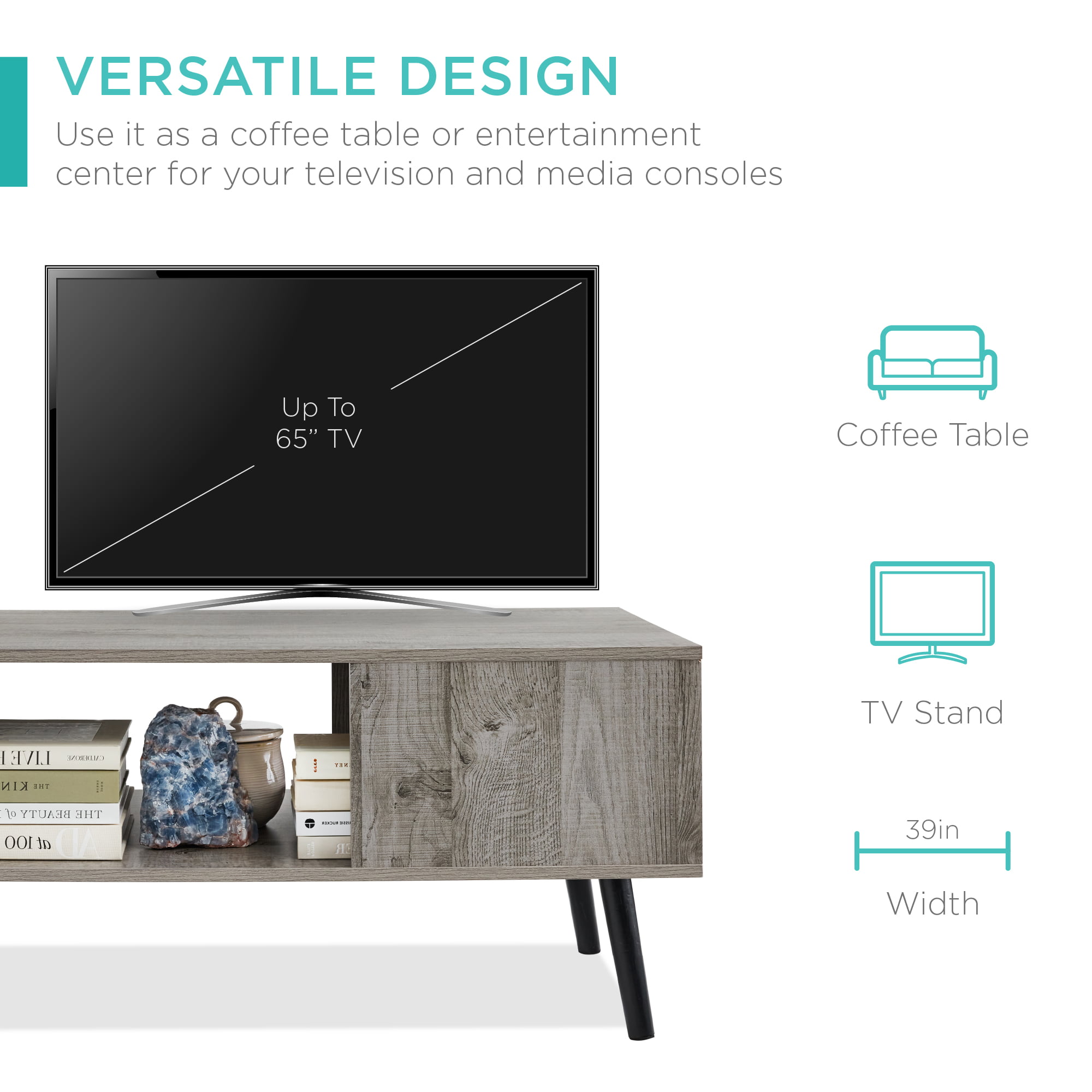 Best Choice Products Wooden Mid-Century Modern Retro Coffee Table. Indoor Furniture w/ Open Storage Shelf. Brown