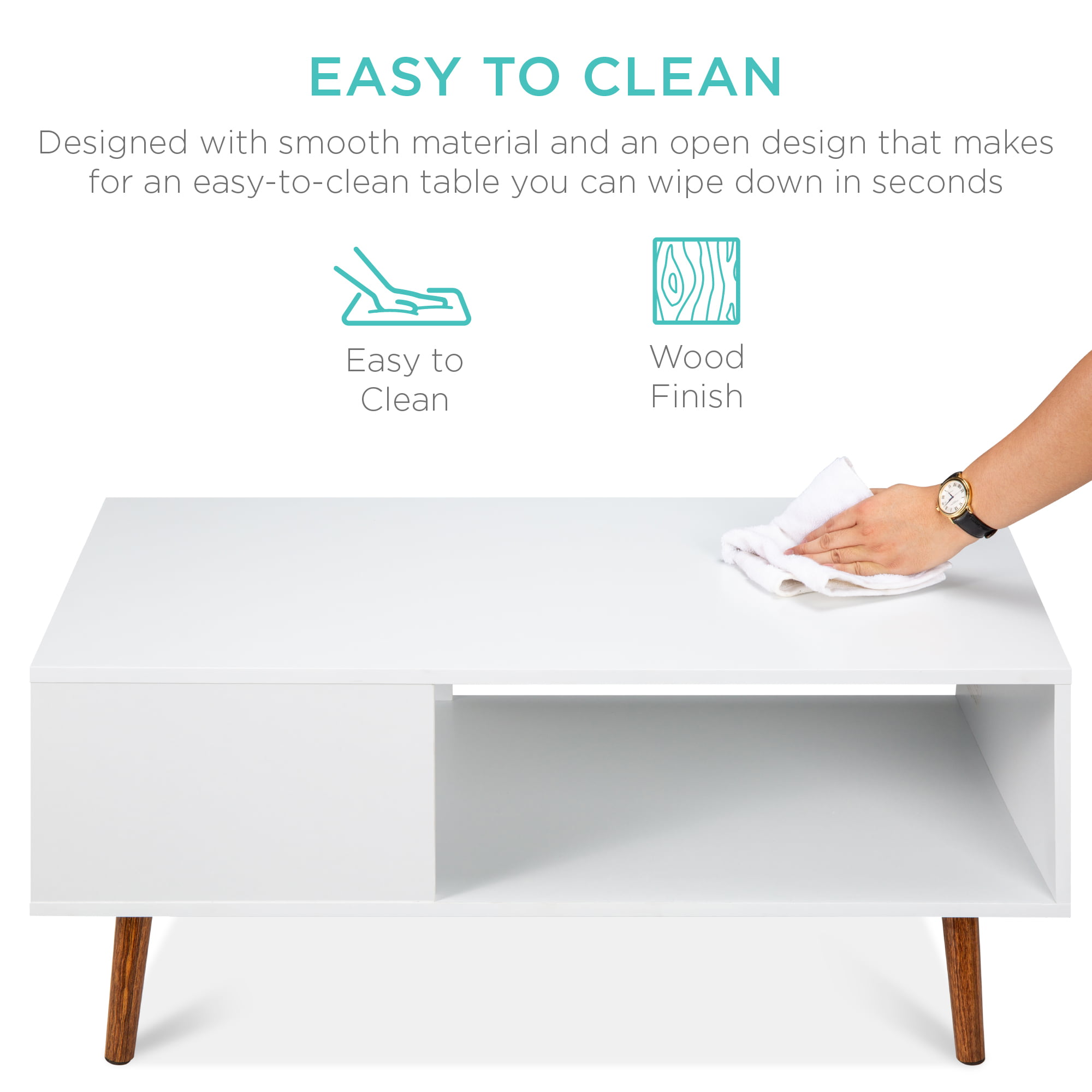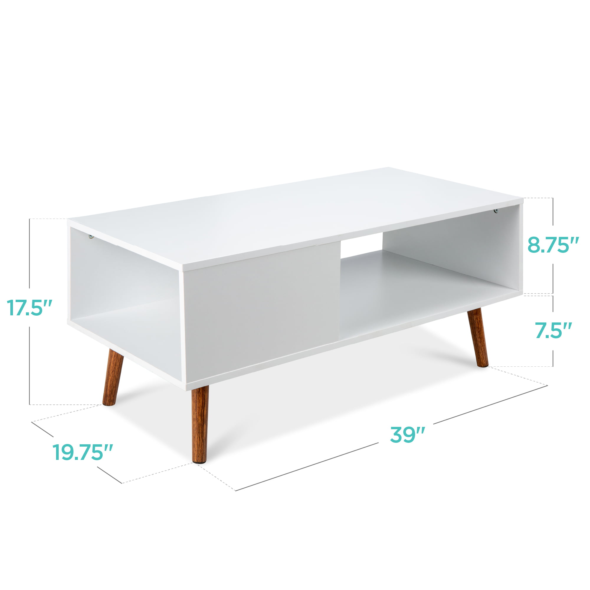 Best Choice Products Wooden Mid-Century Modern Coffee Accent Table Furniture w/ Open Storage Shelf - White/Brown