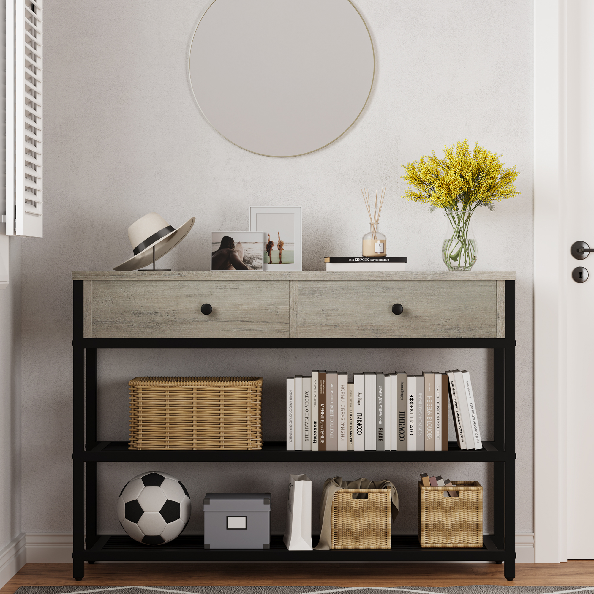 Hellone Console Table with Drawers. Industrial Sofa Table Entryway Table Narrow Long with Storage Shelves for Entryway. Front Hall. Hallway. Sofa. Couch. Living Room. Kitchen
