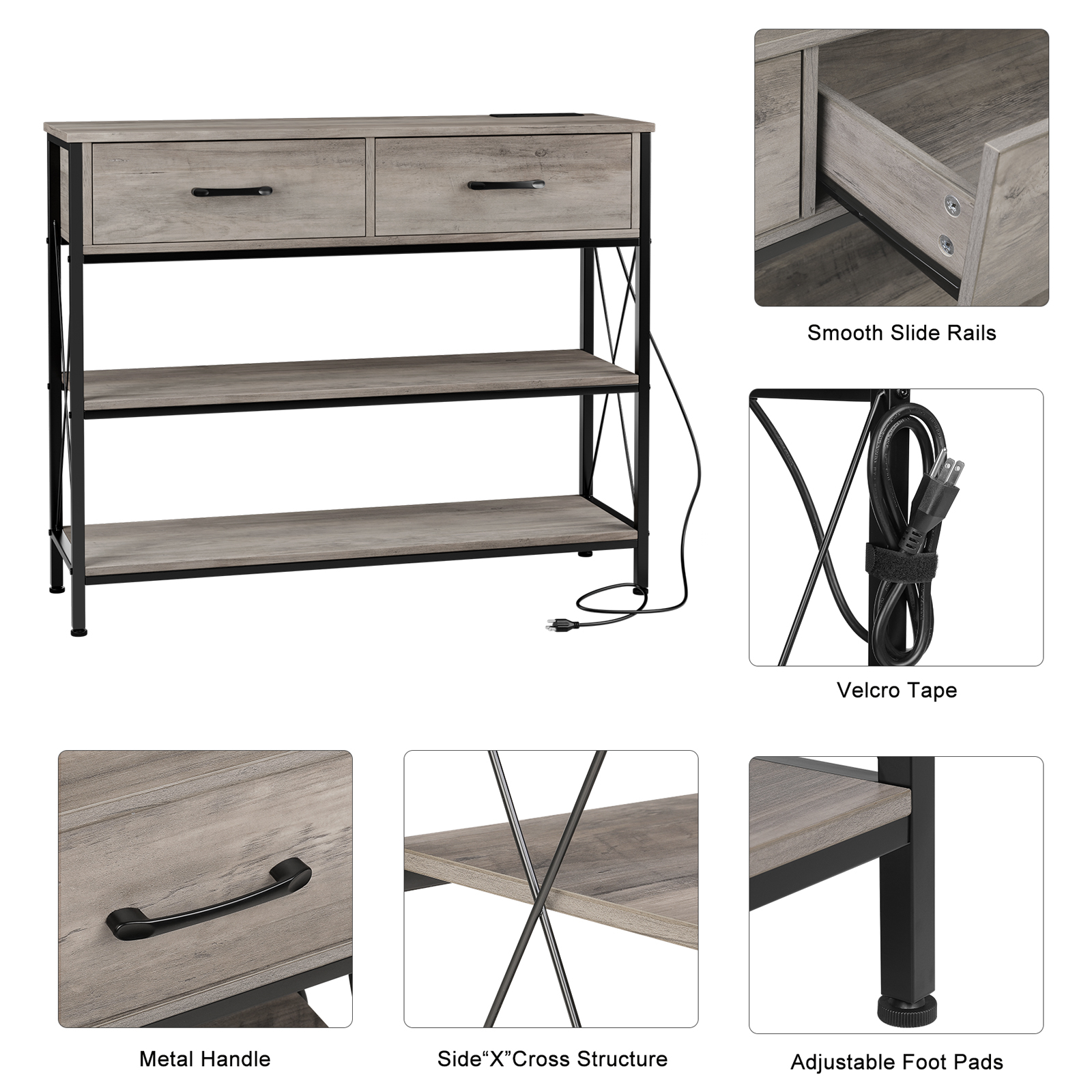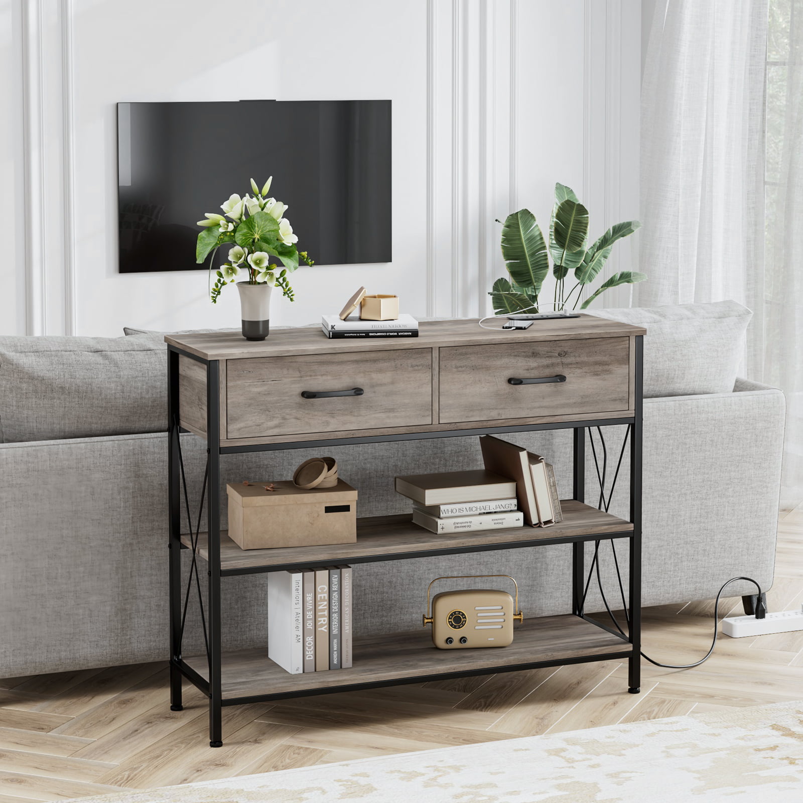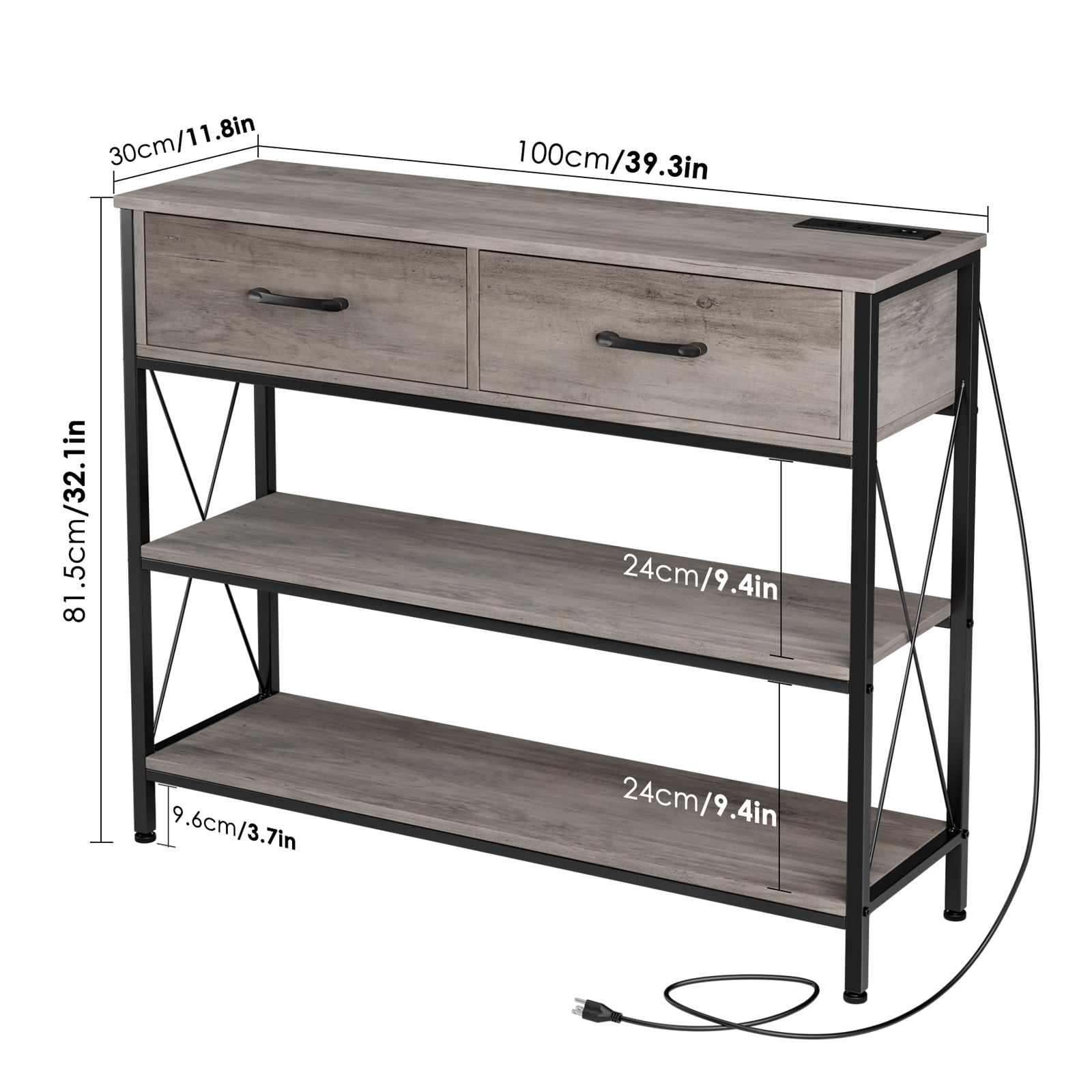 Homfa Console Table. 3 Tier Entryway Table with Drawer. Gray
