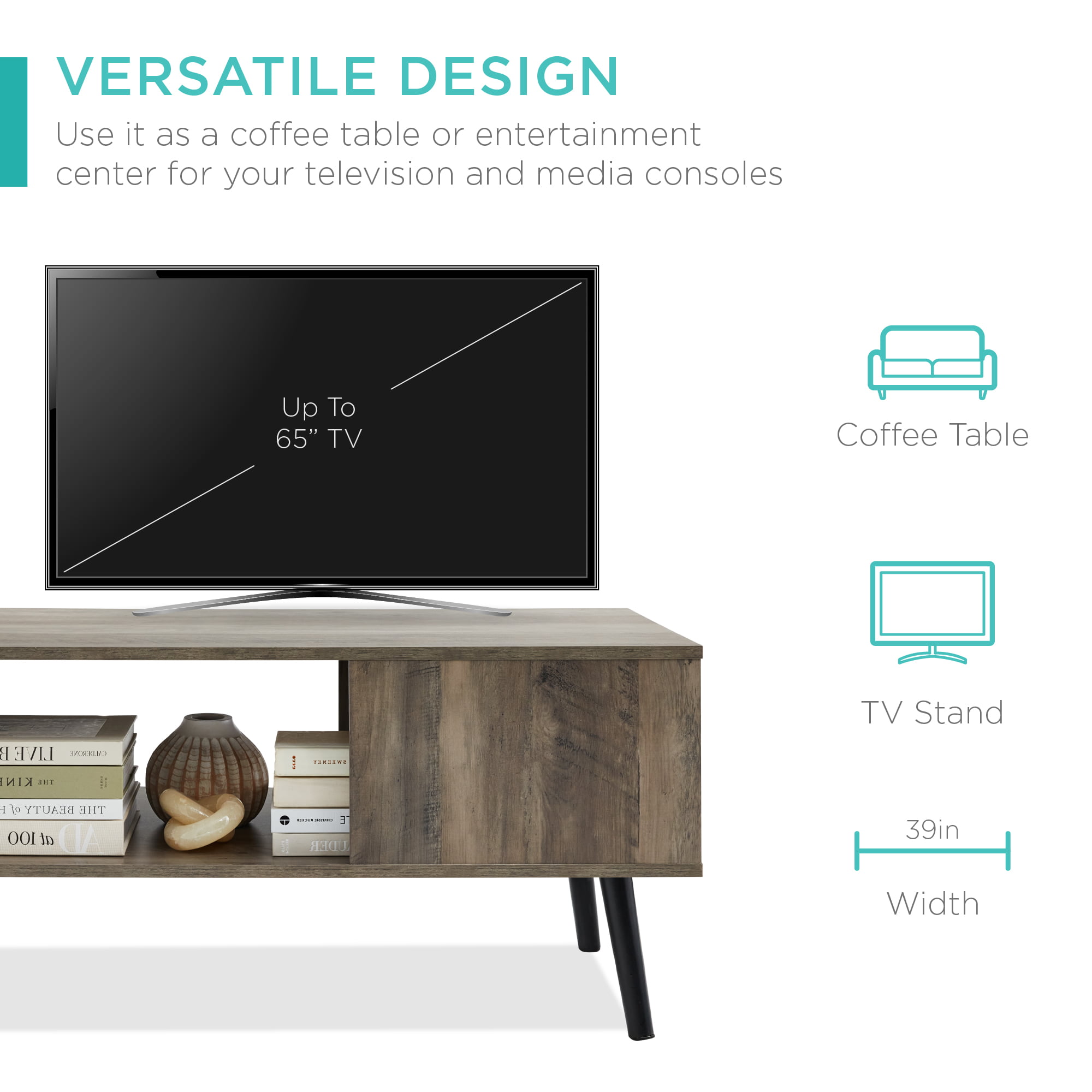 Best Choice Products Wooden Mid-Century Modern Coffee Accent Table Furniture w/ Open Storage Shelf - Gray Oak