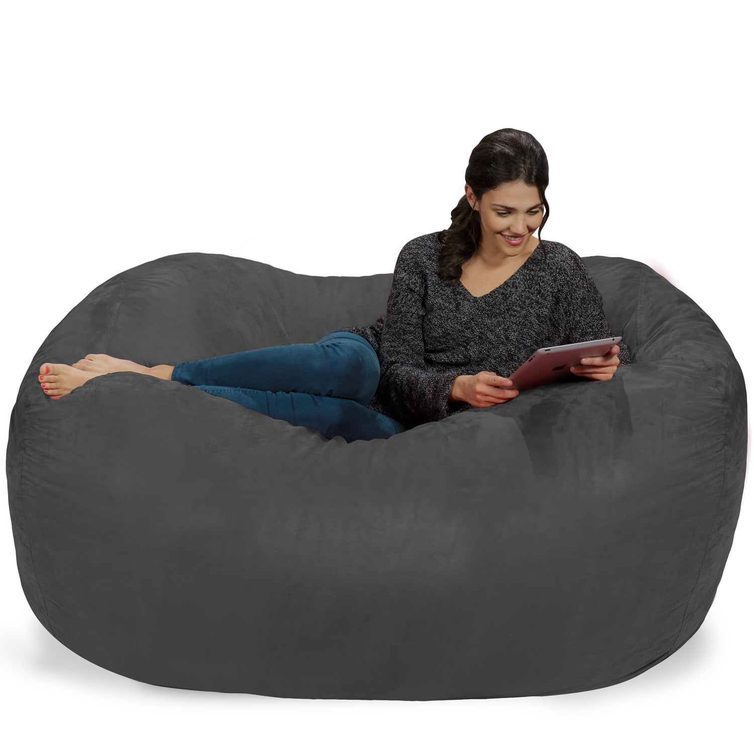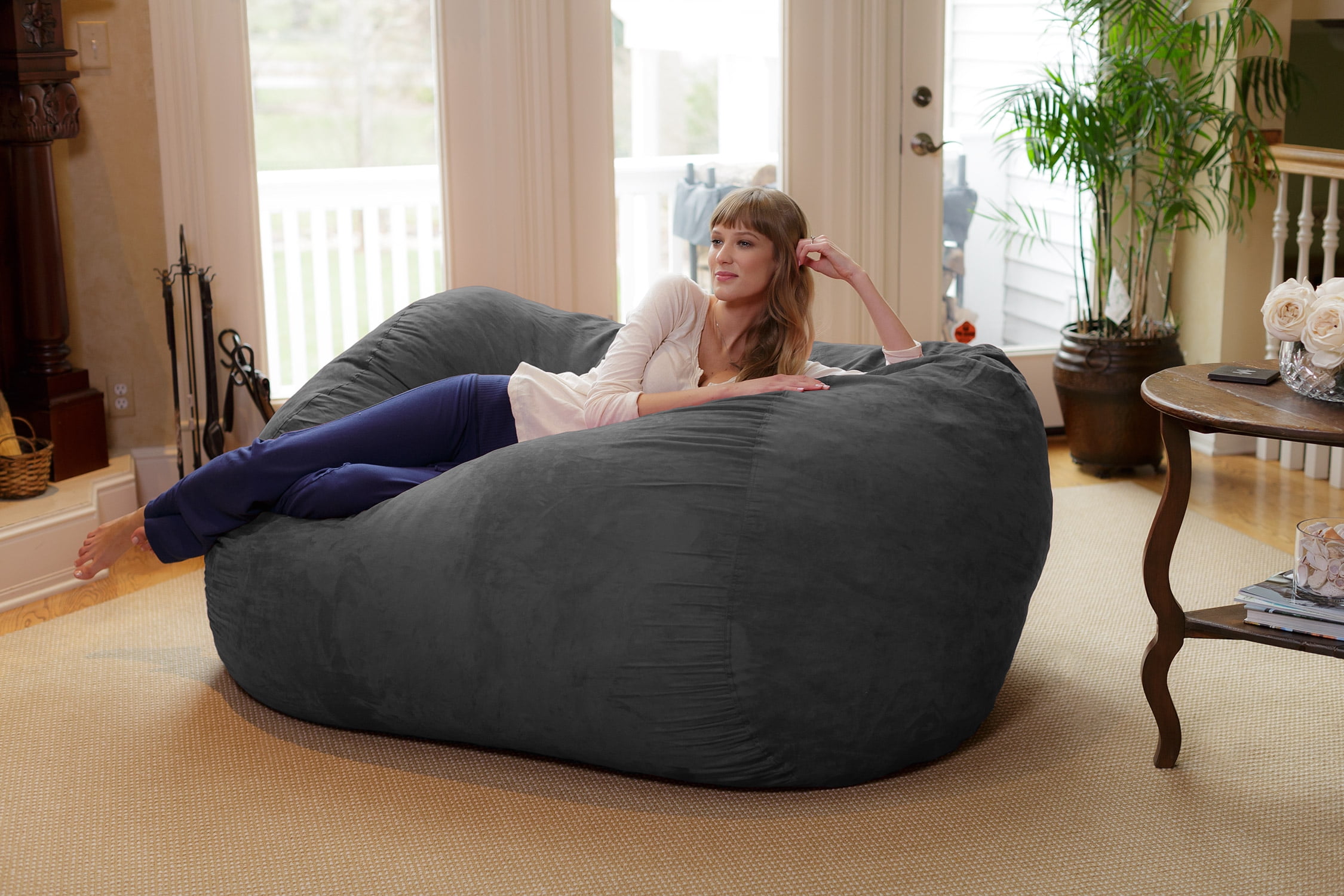 Chill Sack Bean Bag Chair. Memory Foam Lounger with Microsuede Cover. Kids. Adults. 6 ft. Charcoal