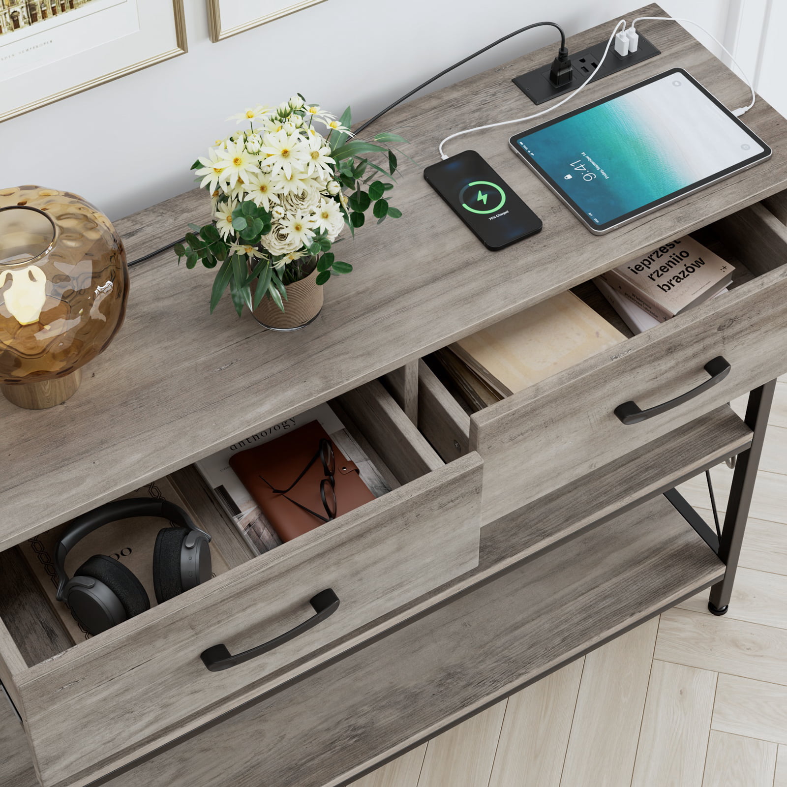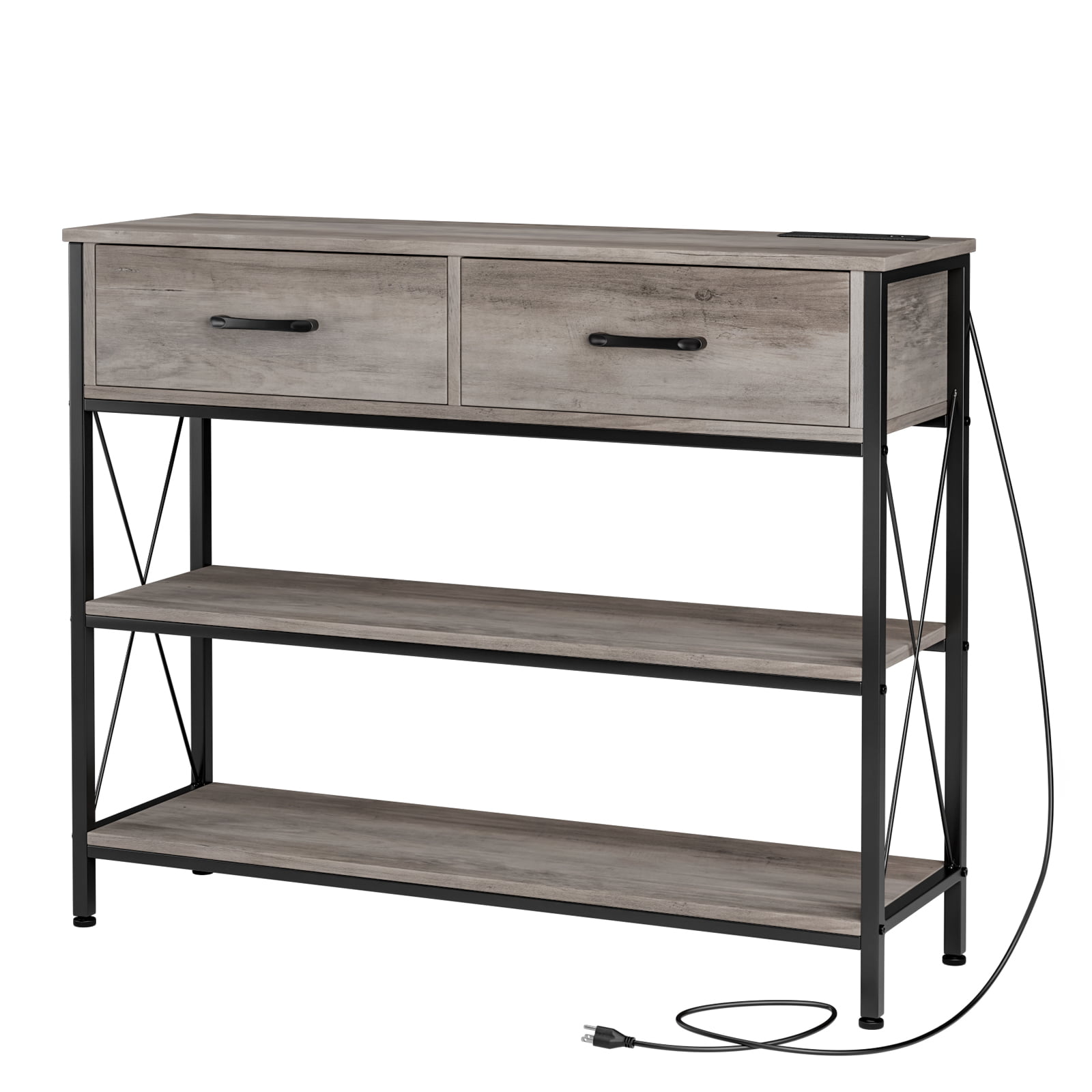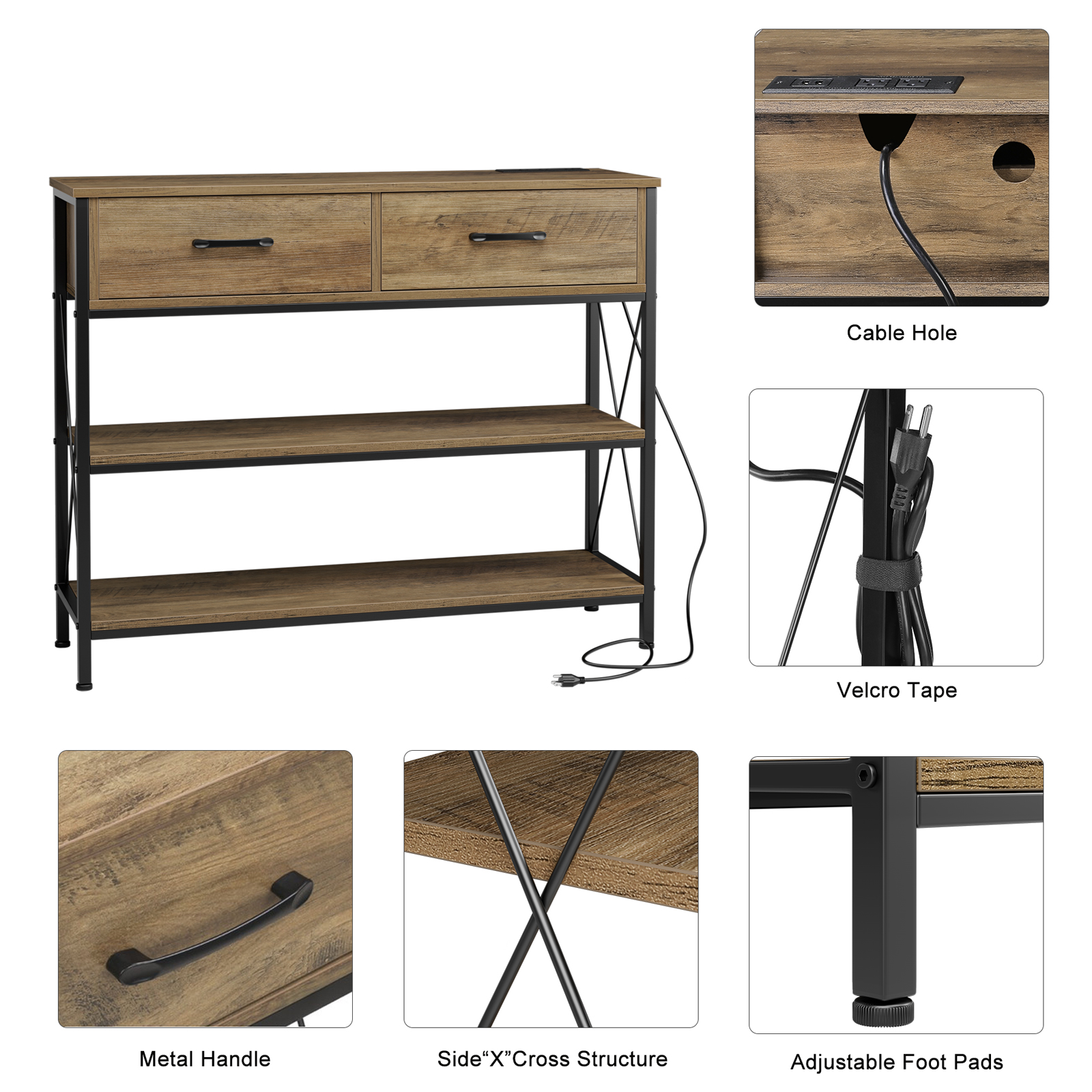 Homfa Console Table with Charging Station. 3 Tier Entryway Table with Drawer. Rustic Brown