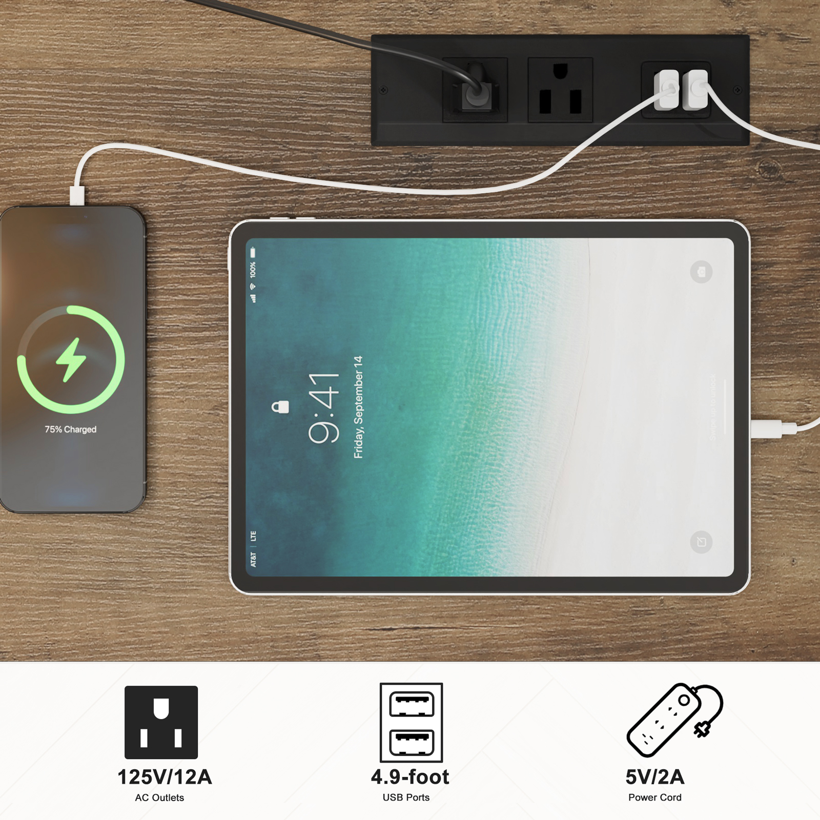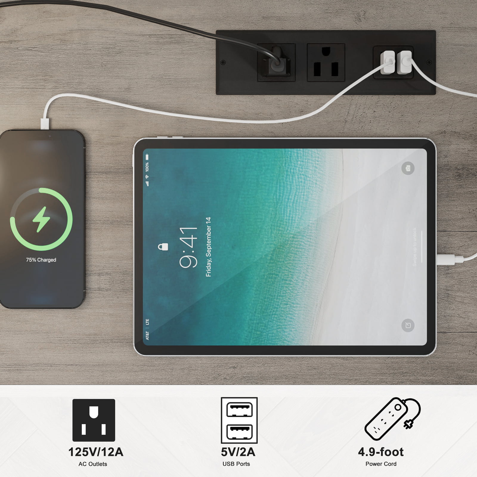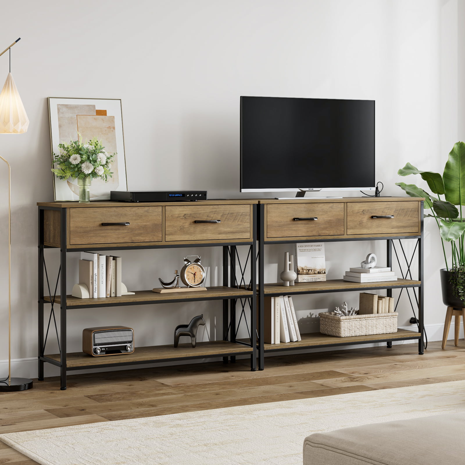 Homfa Console Table with Charging Station. 3 Tier Entryway Table with Drawer. Rustic Brown