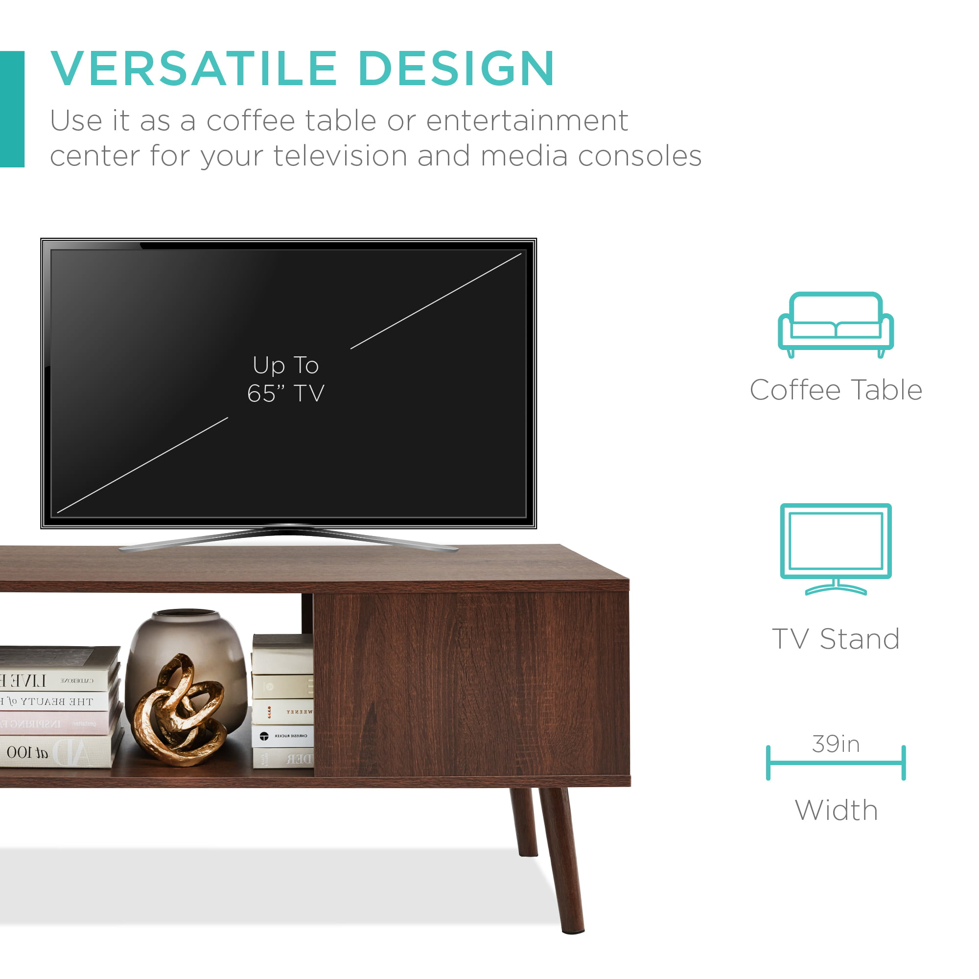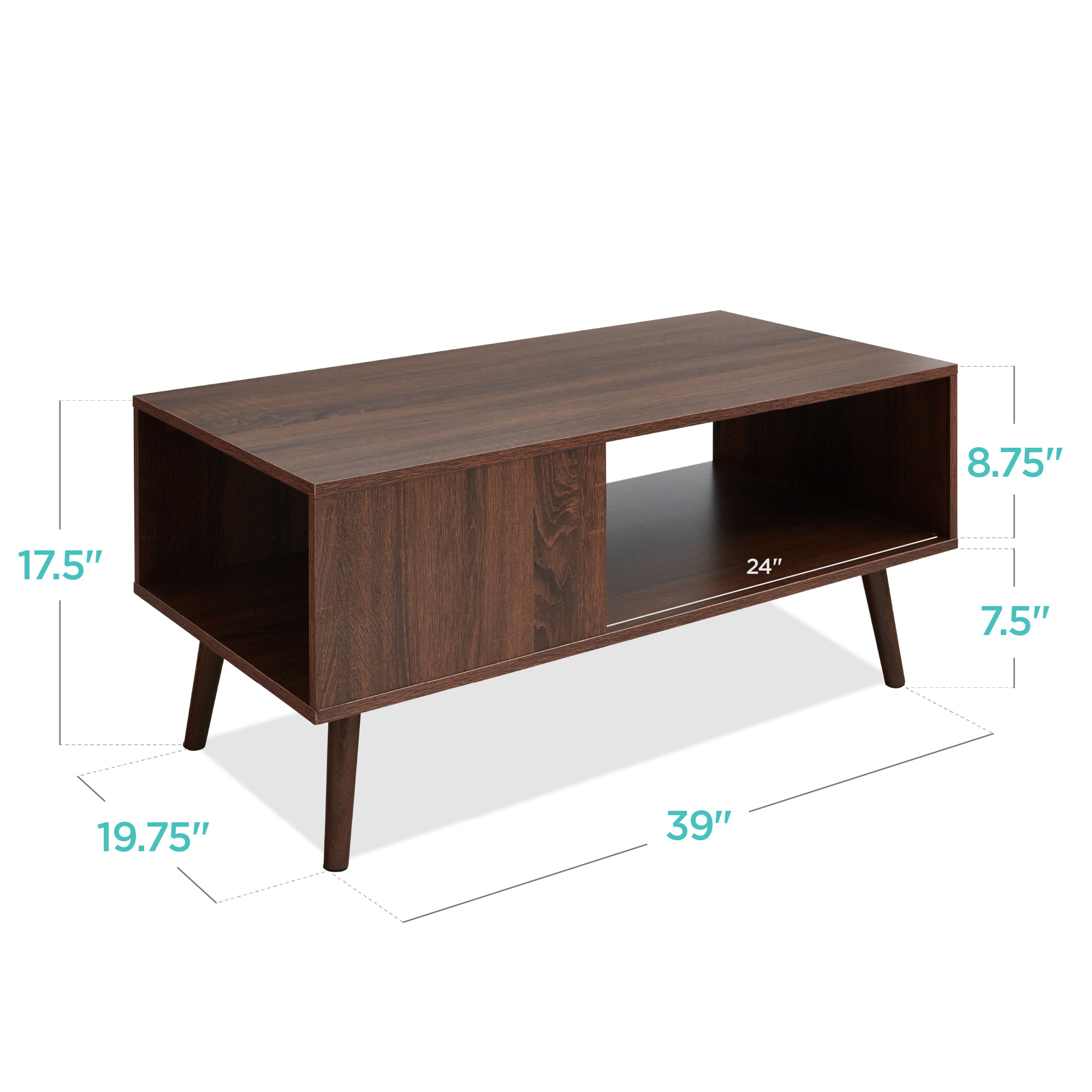 Best Choice Products Wooden Mid-Century Modern Coffee Accent Table Furniture w/ Open Storage Shelf - Walnut