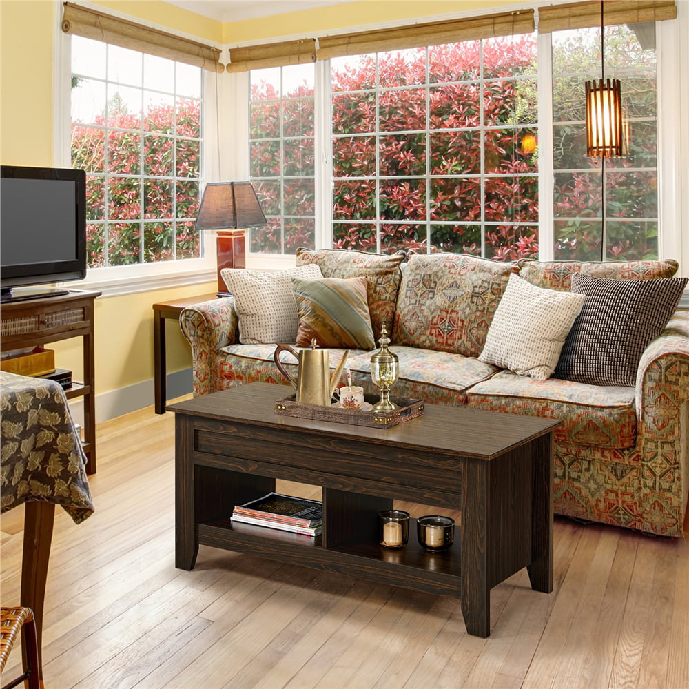 Yaheetech Lift Top Coffee Table w/Hidden Storage Compartment Open Shelf for Living Room.Espresso