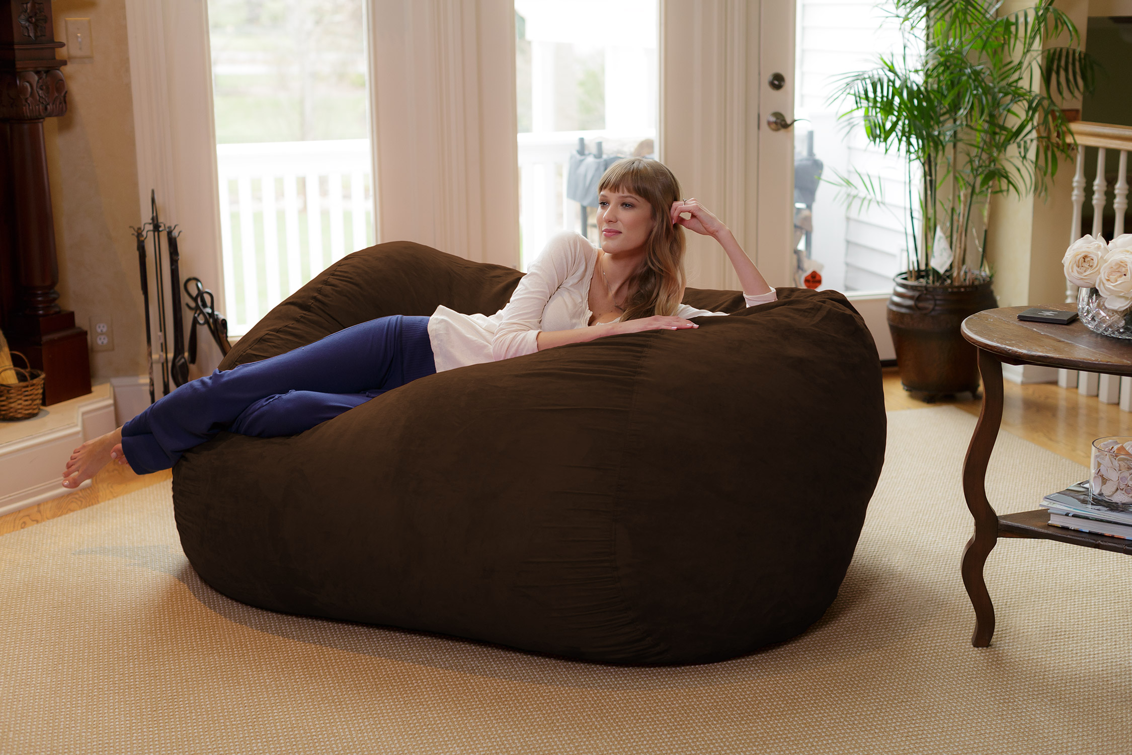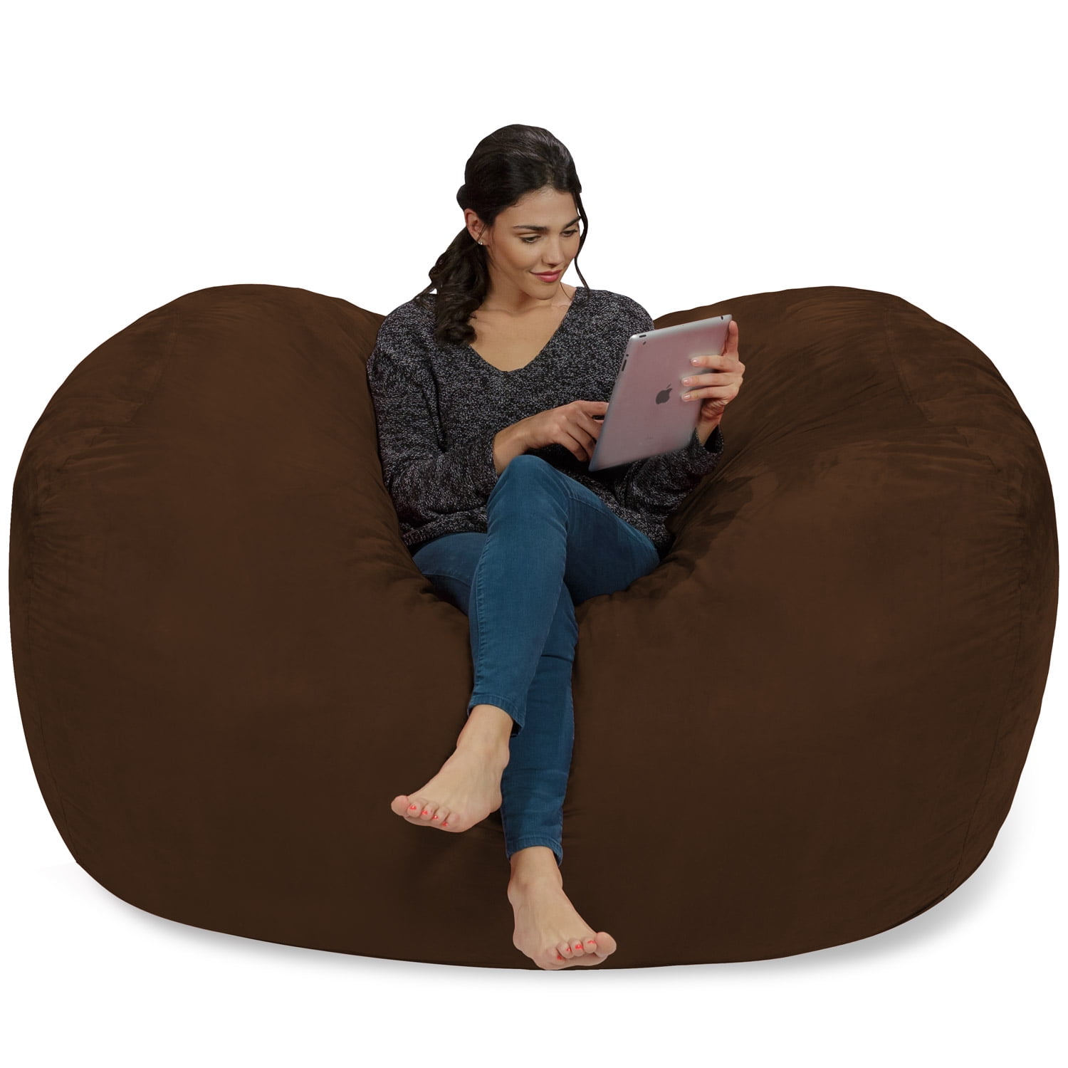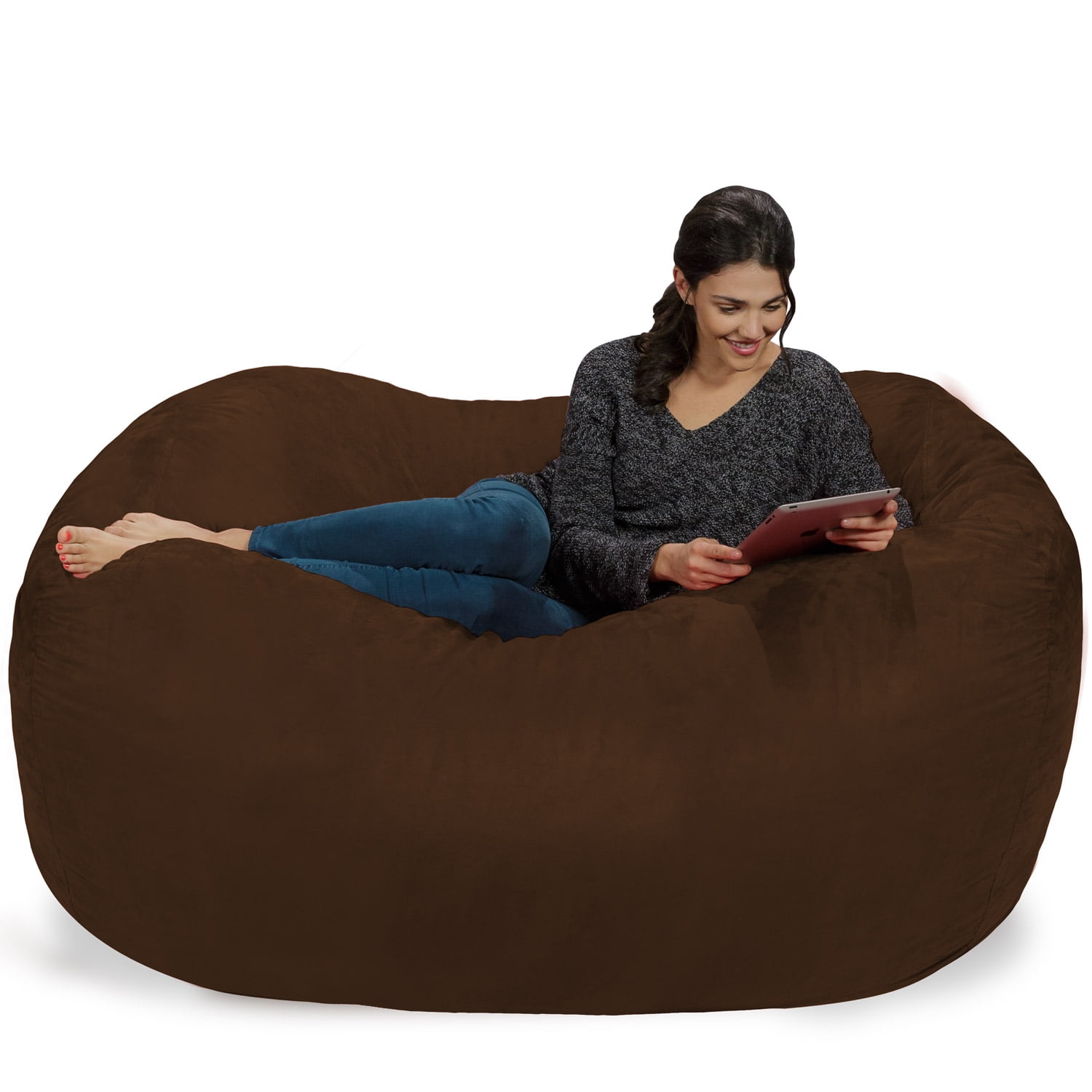 Chill Sack Bean Bag Chair. Memory Foam Lounger with Microsuede Cover. Kids. Adults. 6 ft. Chocolate