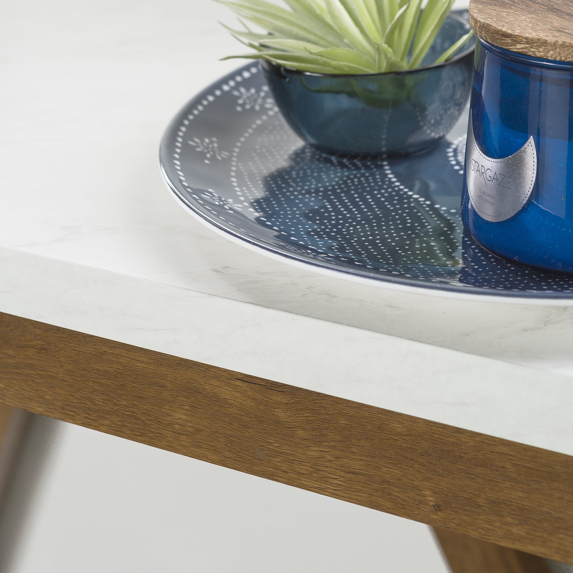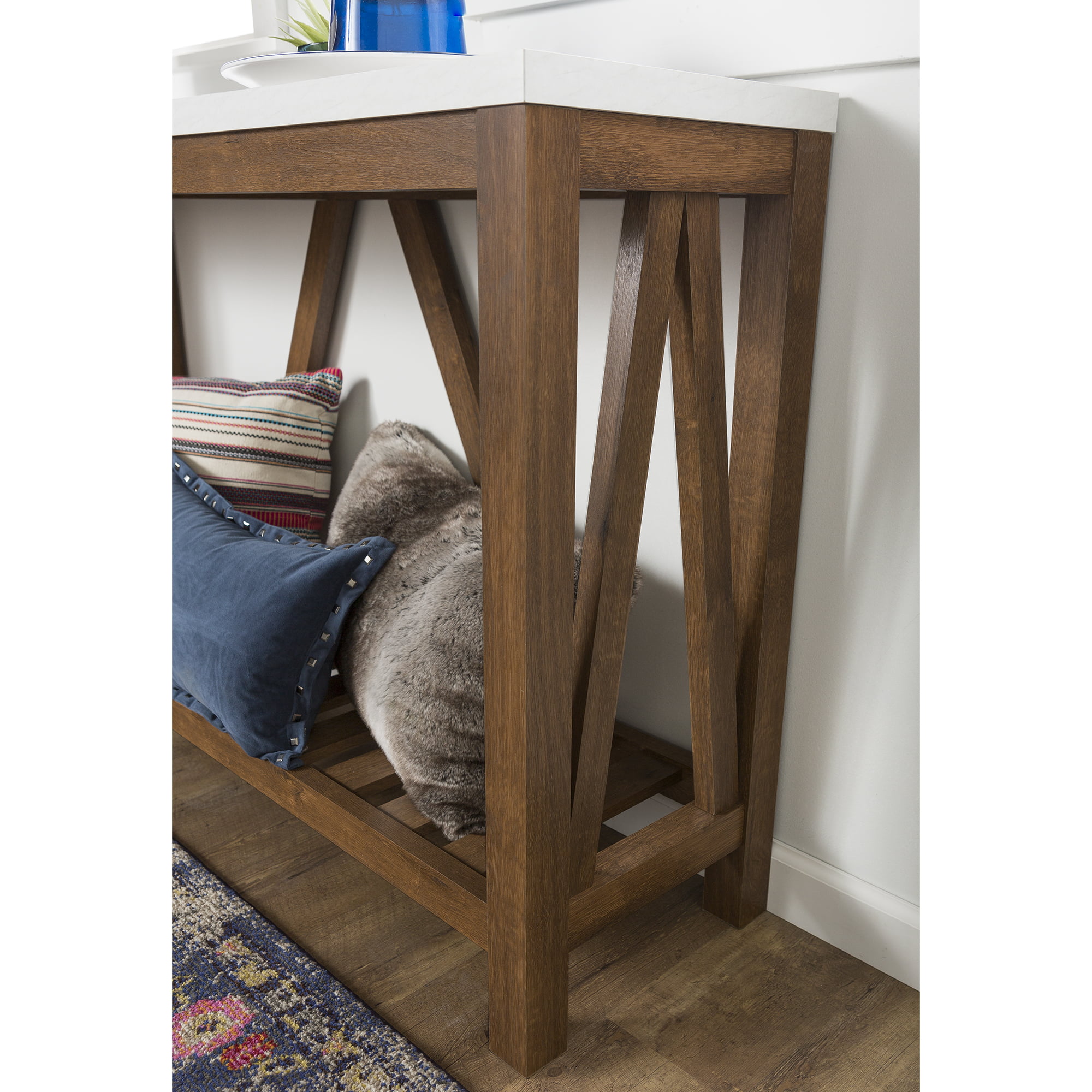 Manor Park Modern Farmhouse Faux Marble and Walnut Entryway Table. Faux White Marble/Walnut