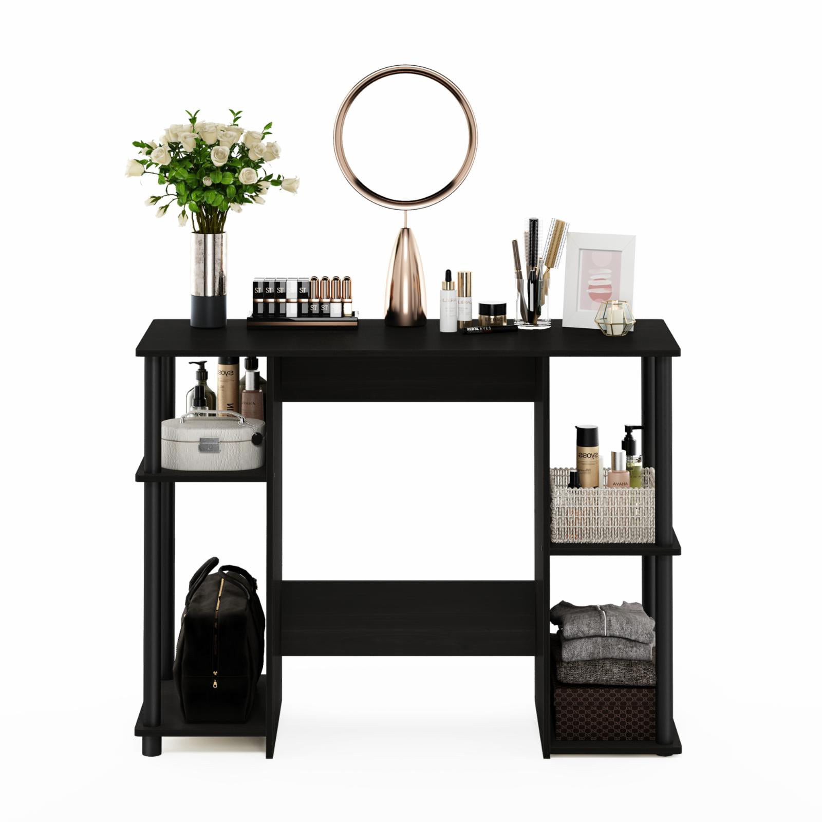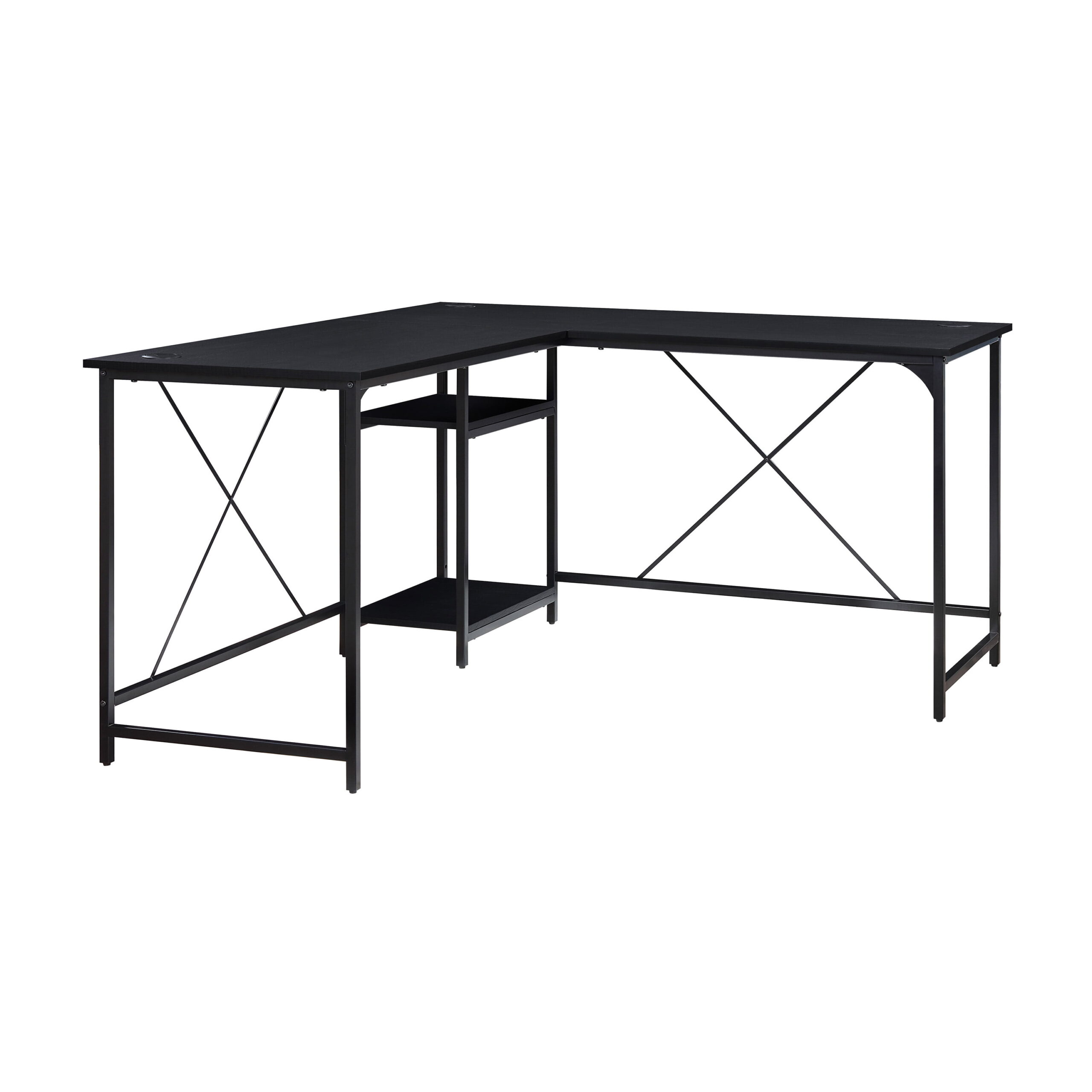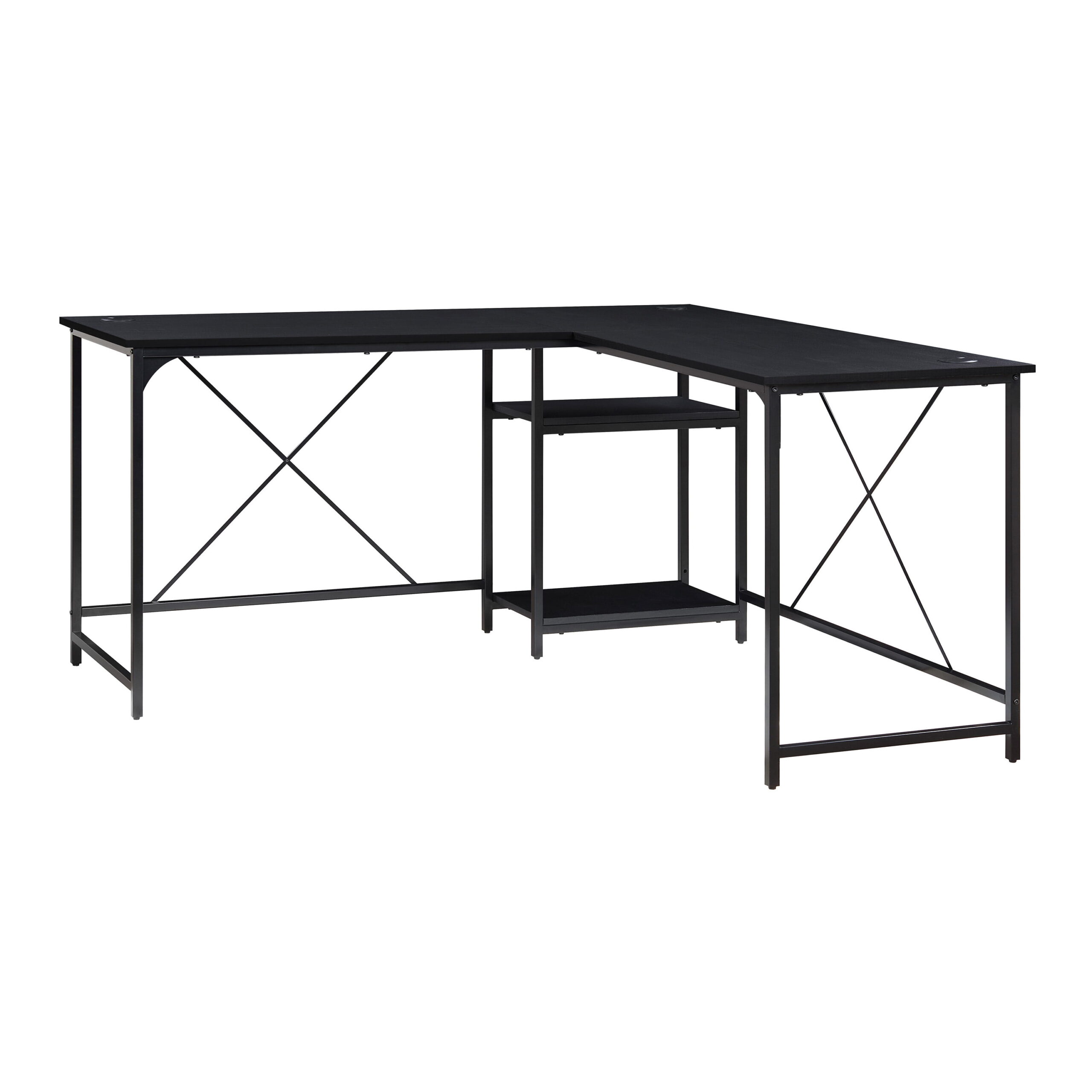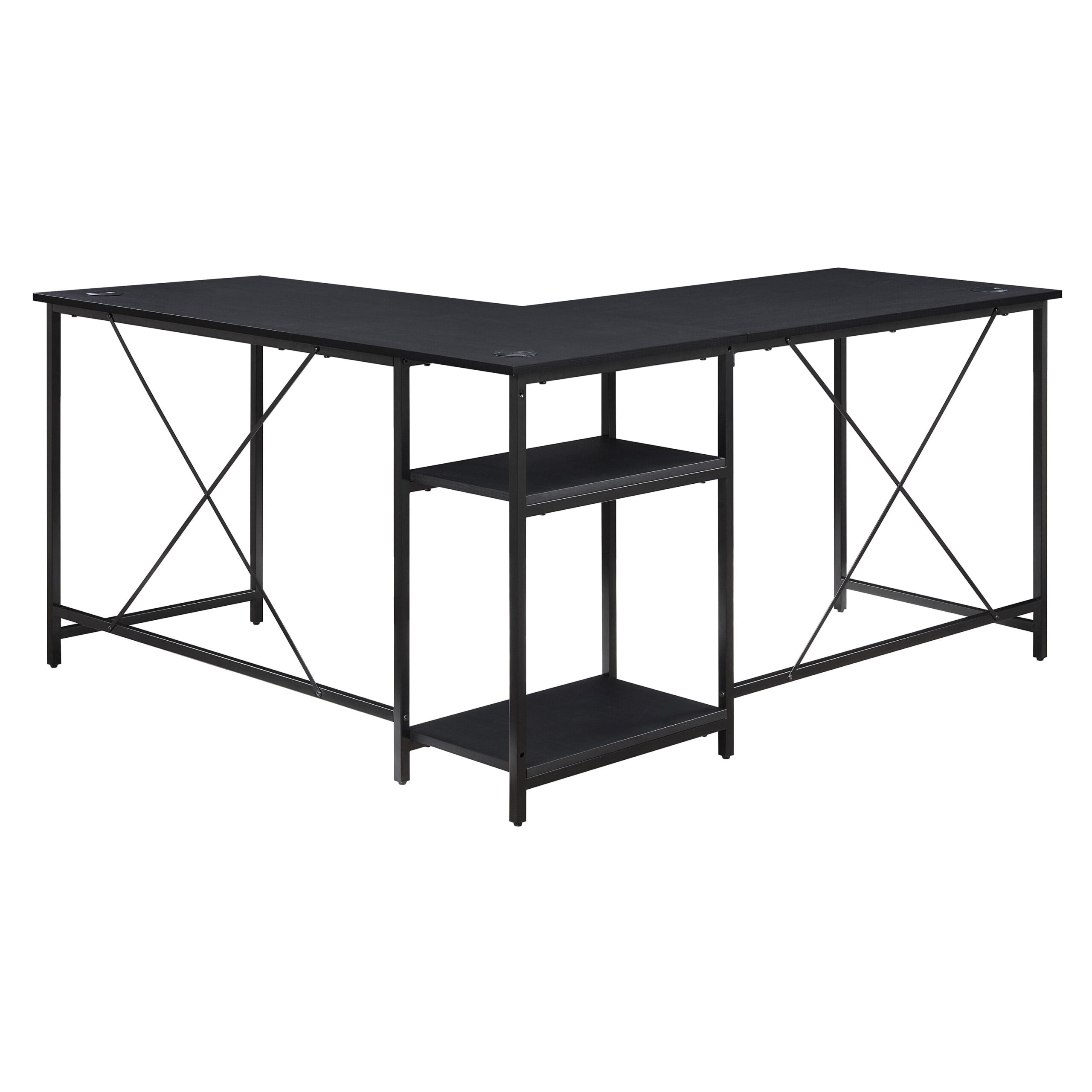 Mainstays Two-Way Convertible Desk with Lower Storage Shelf. Charcoal Finish and Black Metal Frame