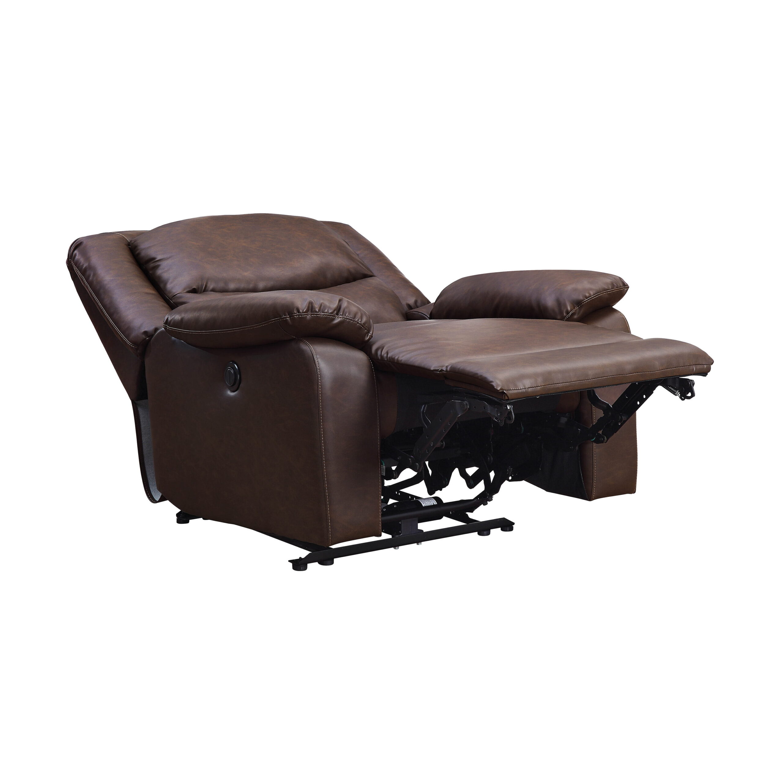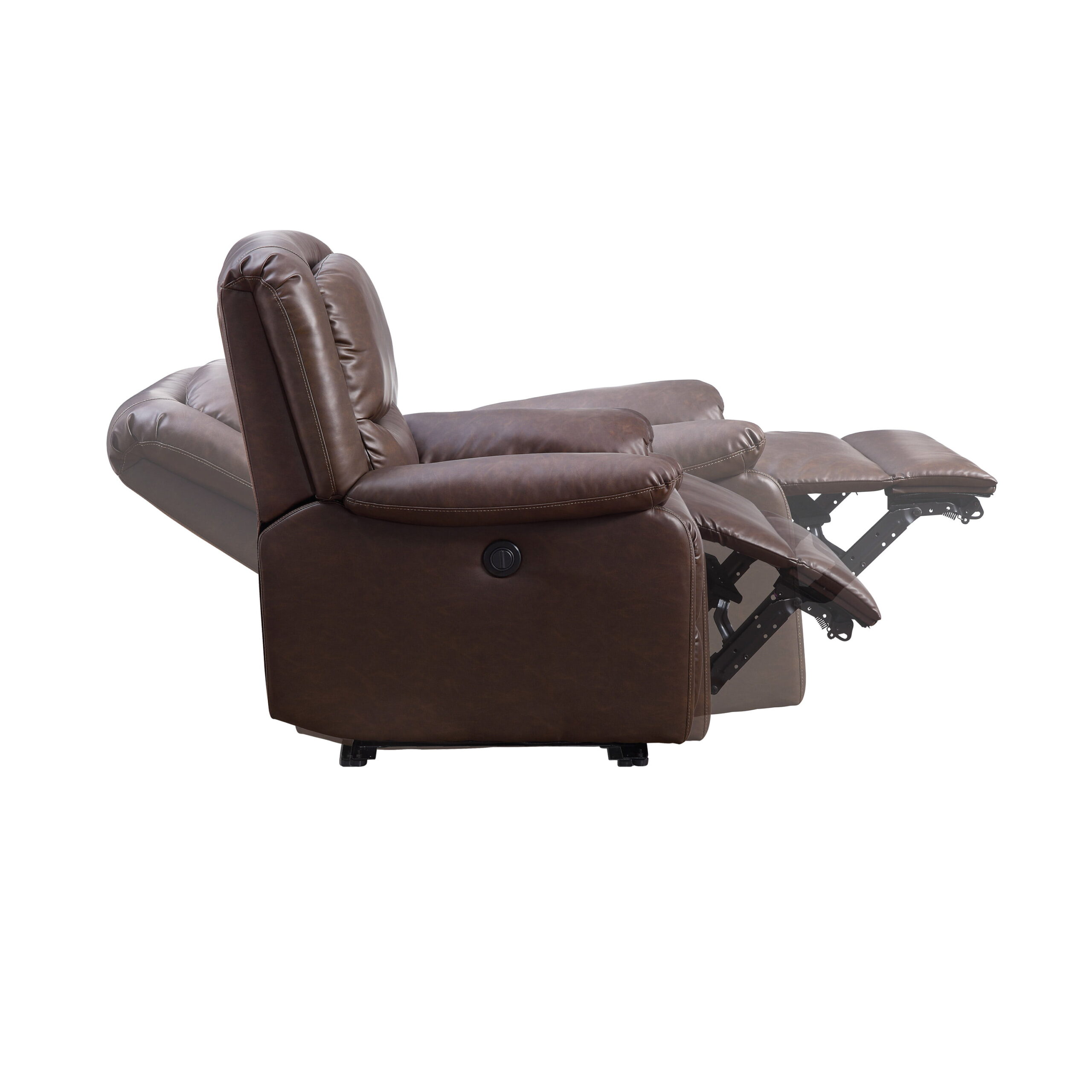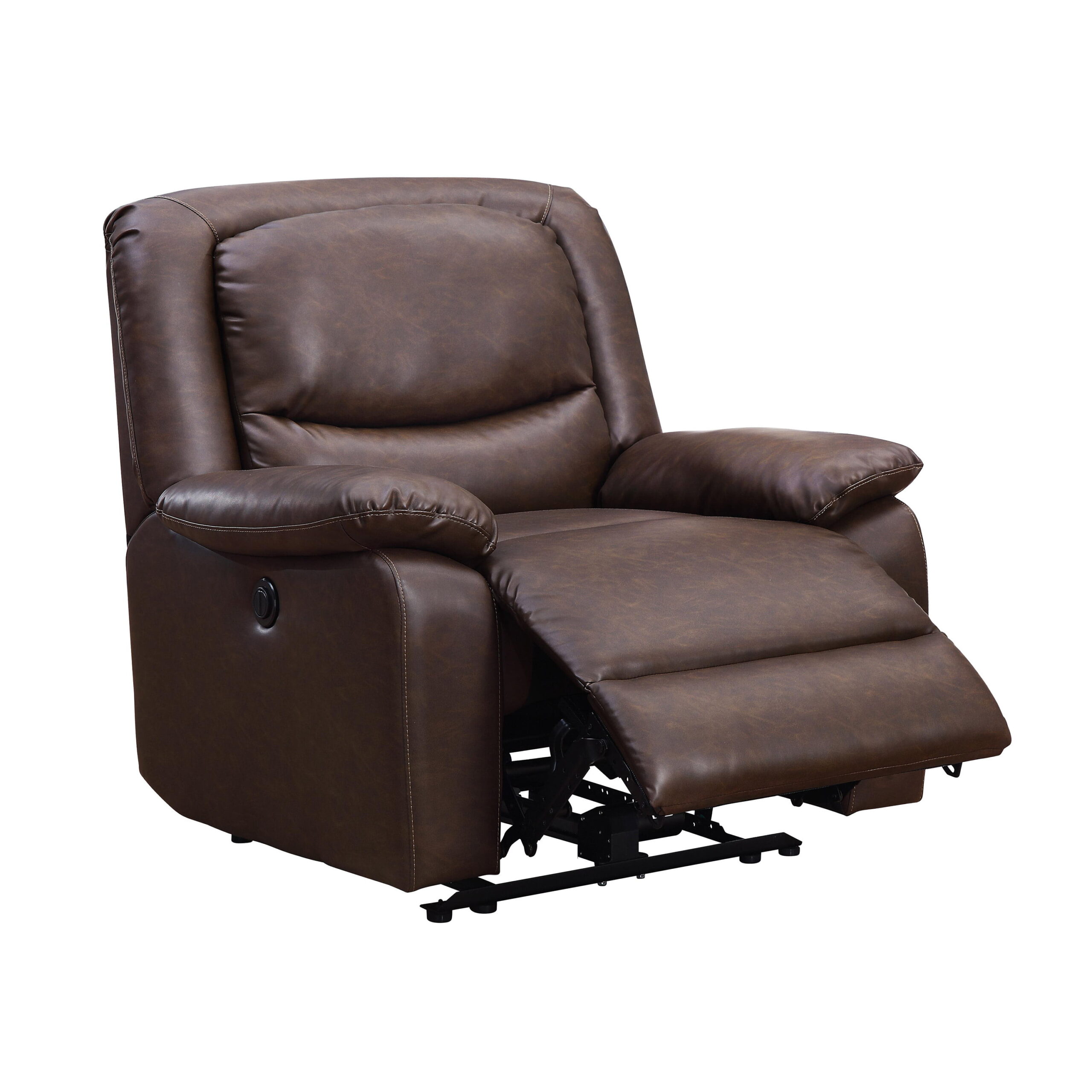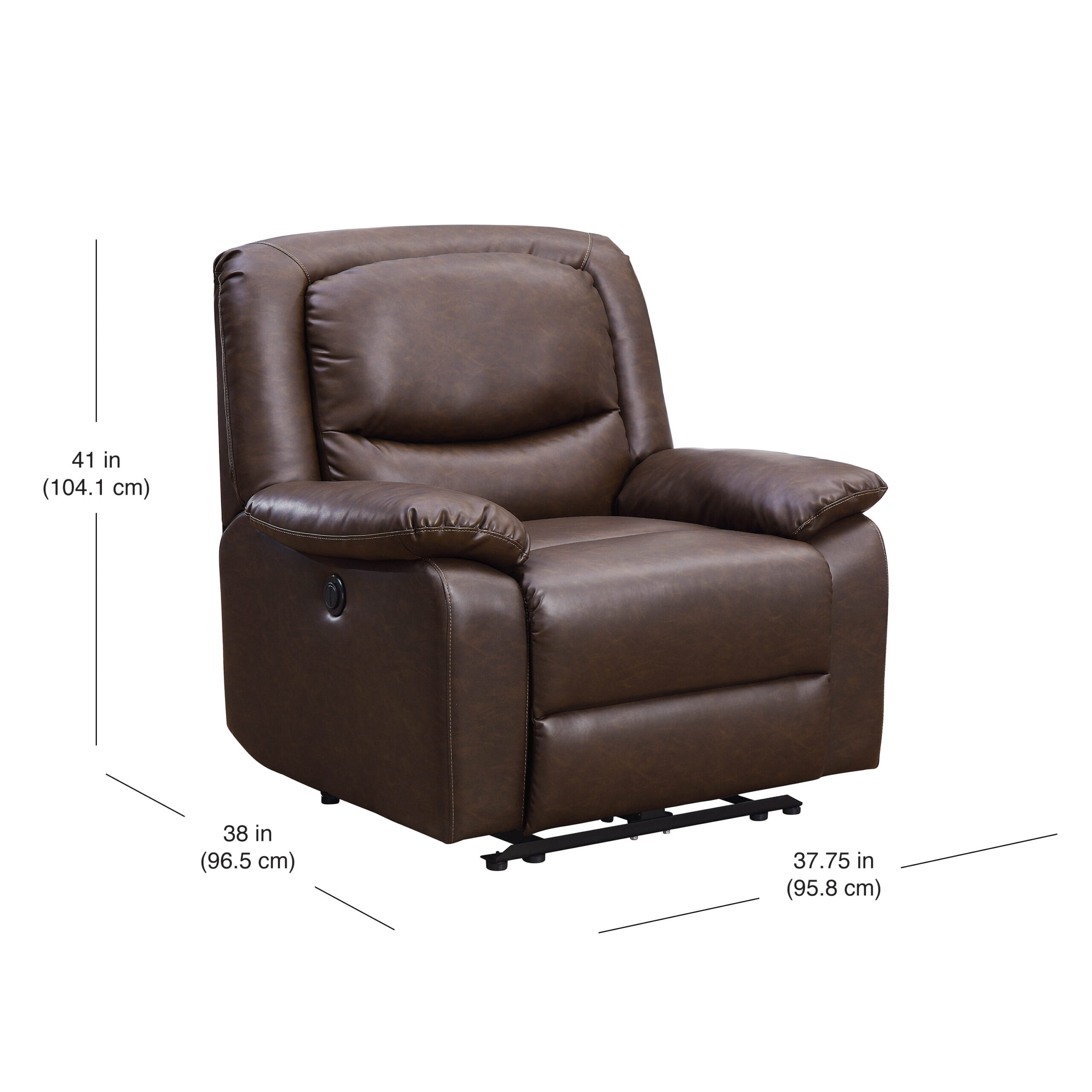 Serta Push-Button Power Recliner with Deep Body Cushions. Brown Faux Leather Upholstery