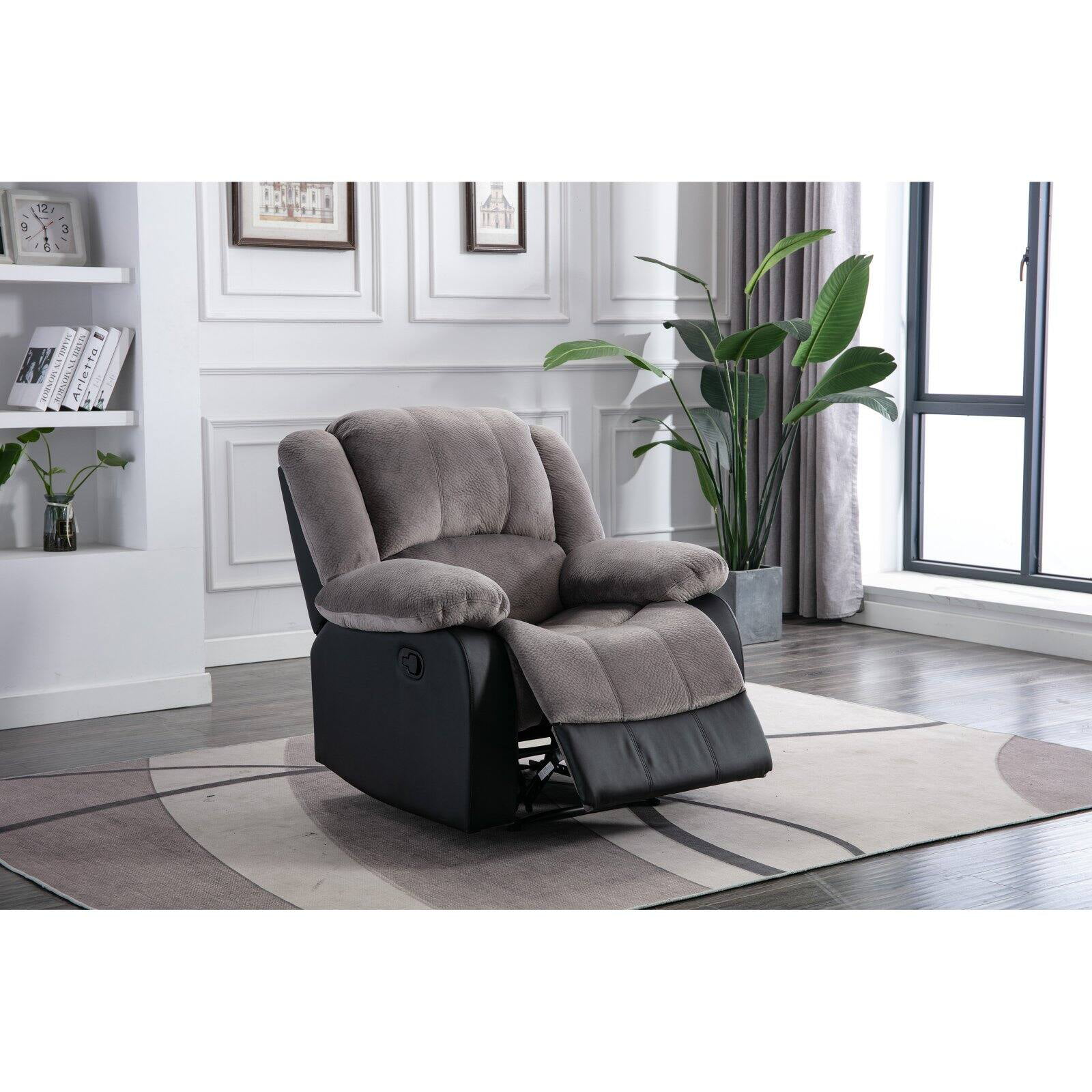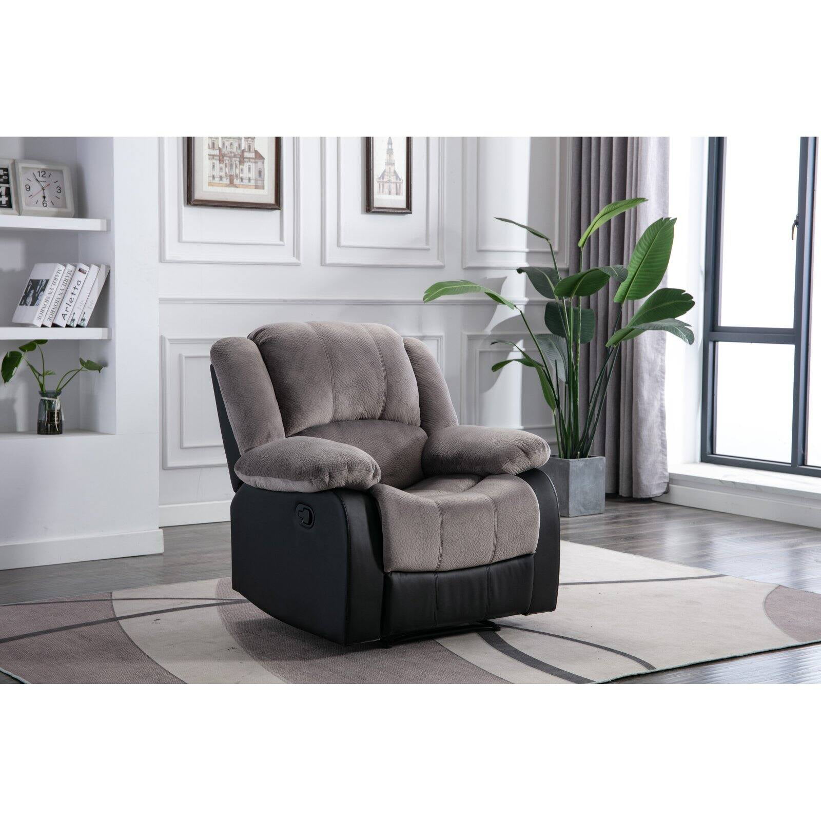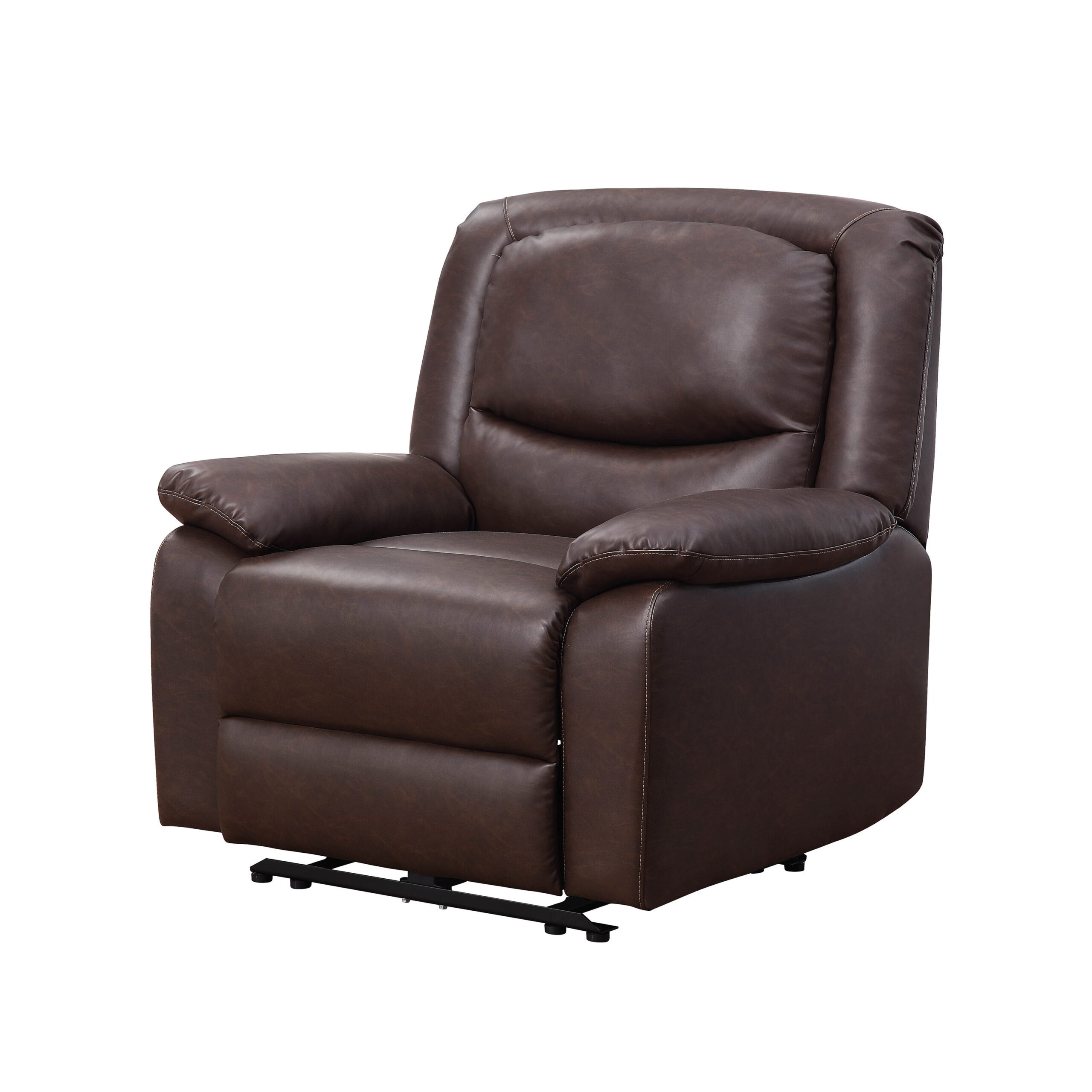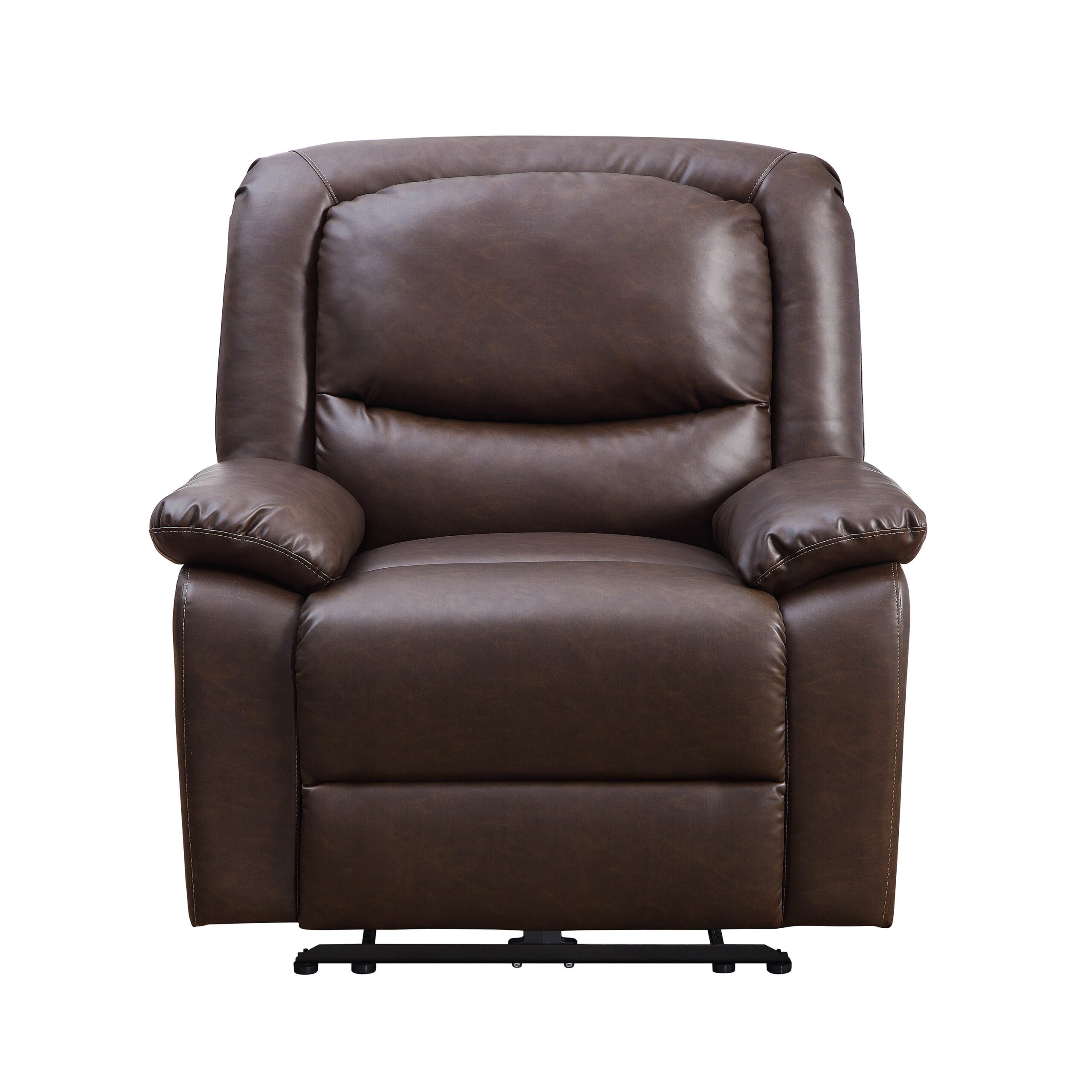 Serta Push-Button Power Recliner with Deep Body Cushions. Brown Faux Leather Upholstery