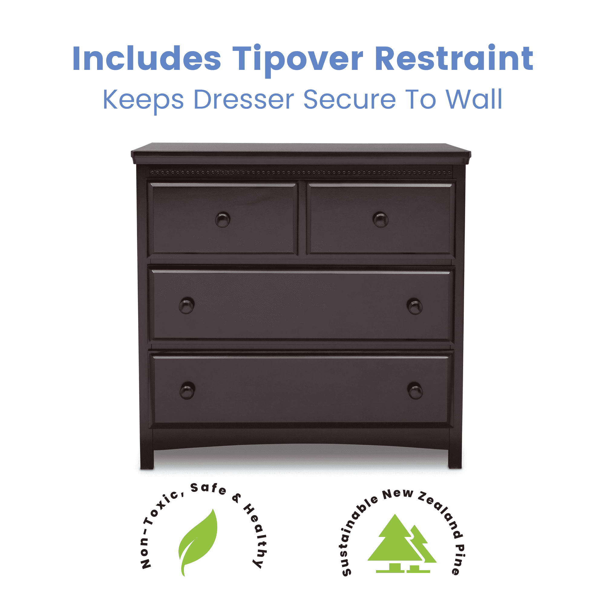Delta Children Waverly 3 Drawer Dresser with Changing Top. Dark Chocolate