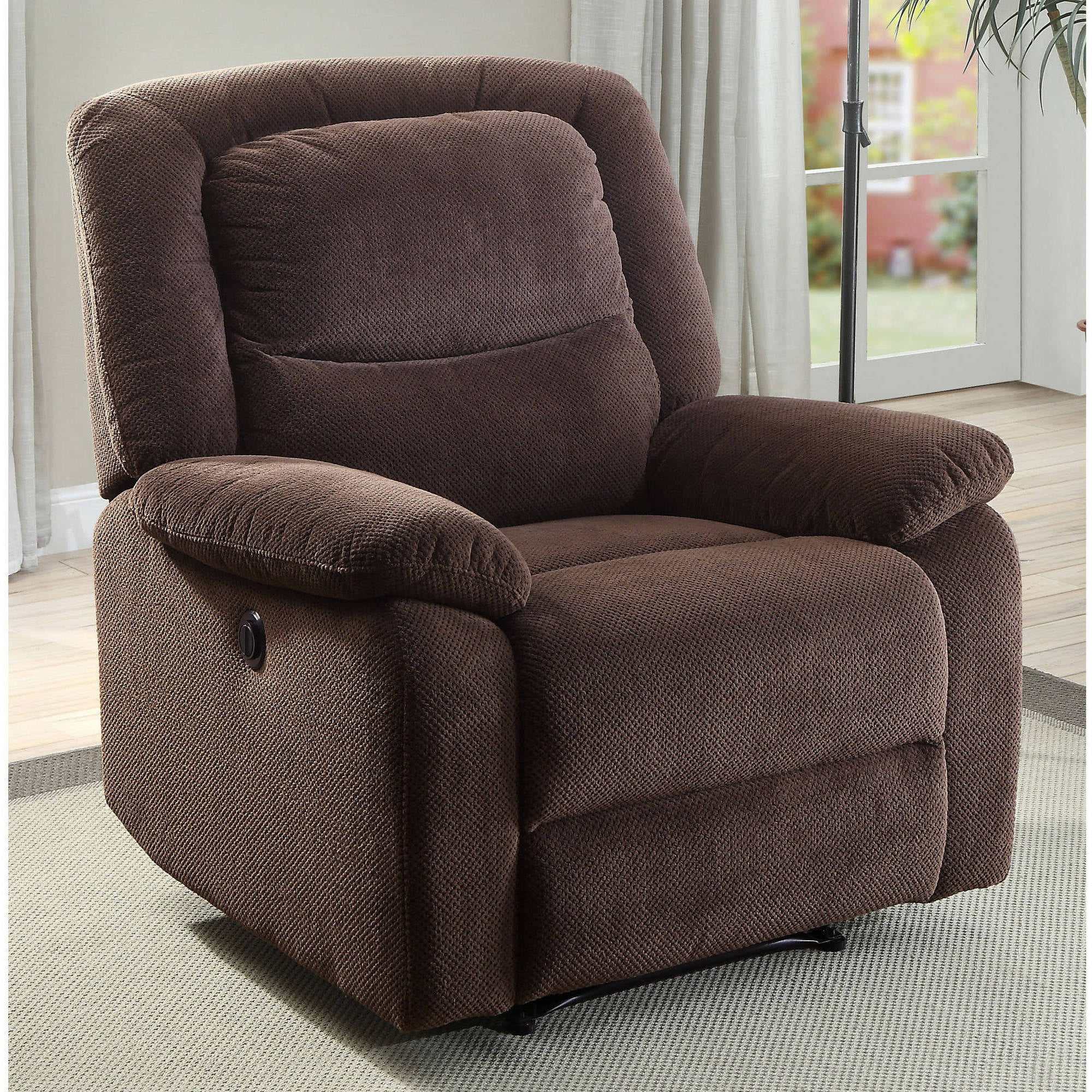 Serta Push-Button Power Recliner with Deep Body Cushions. Brown Fabric