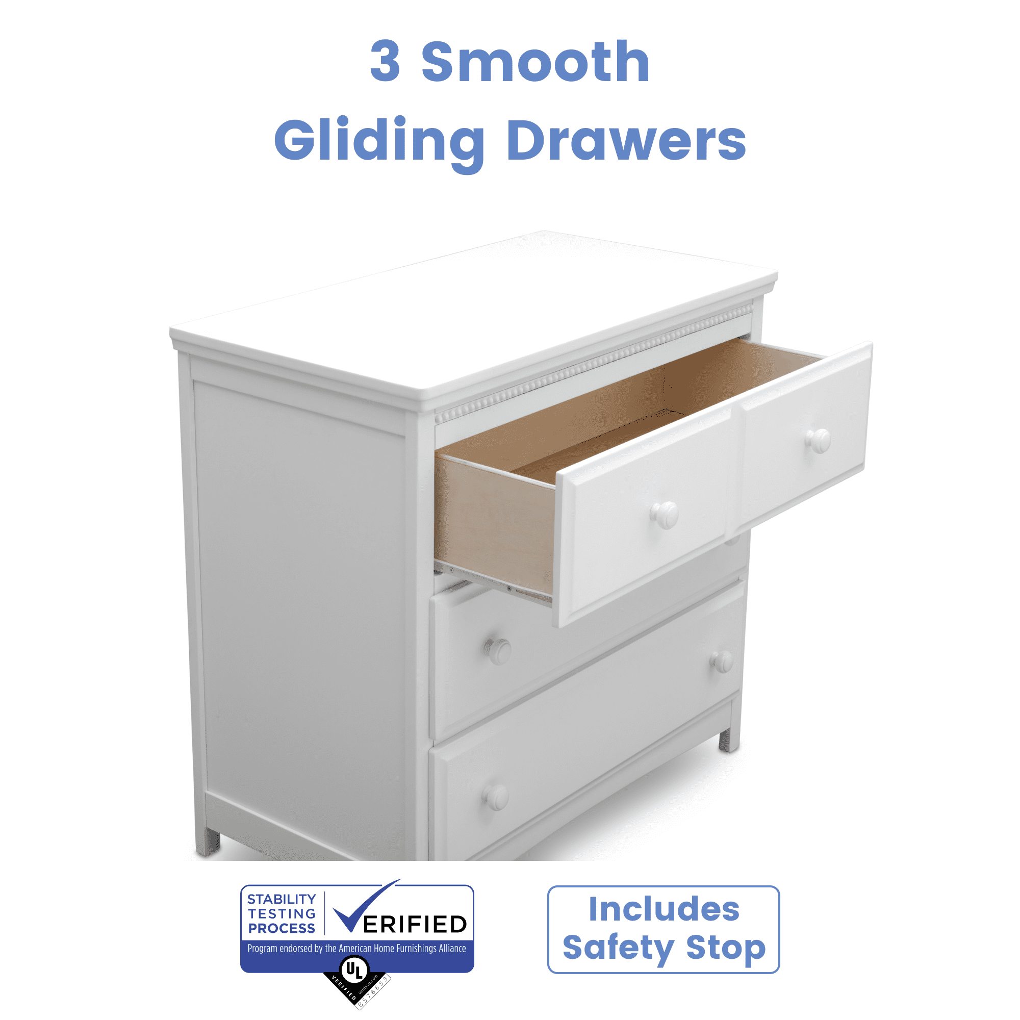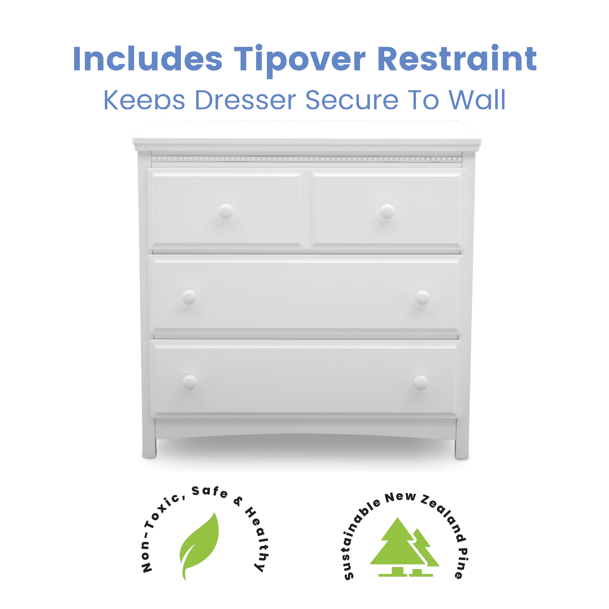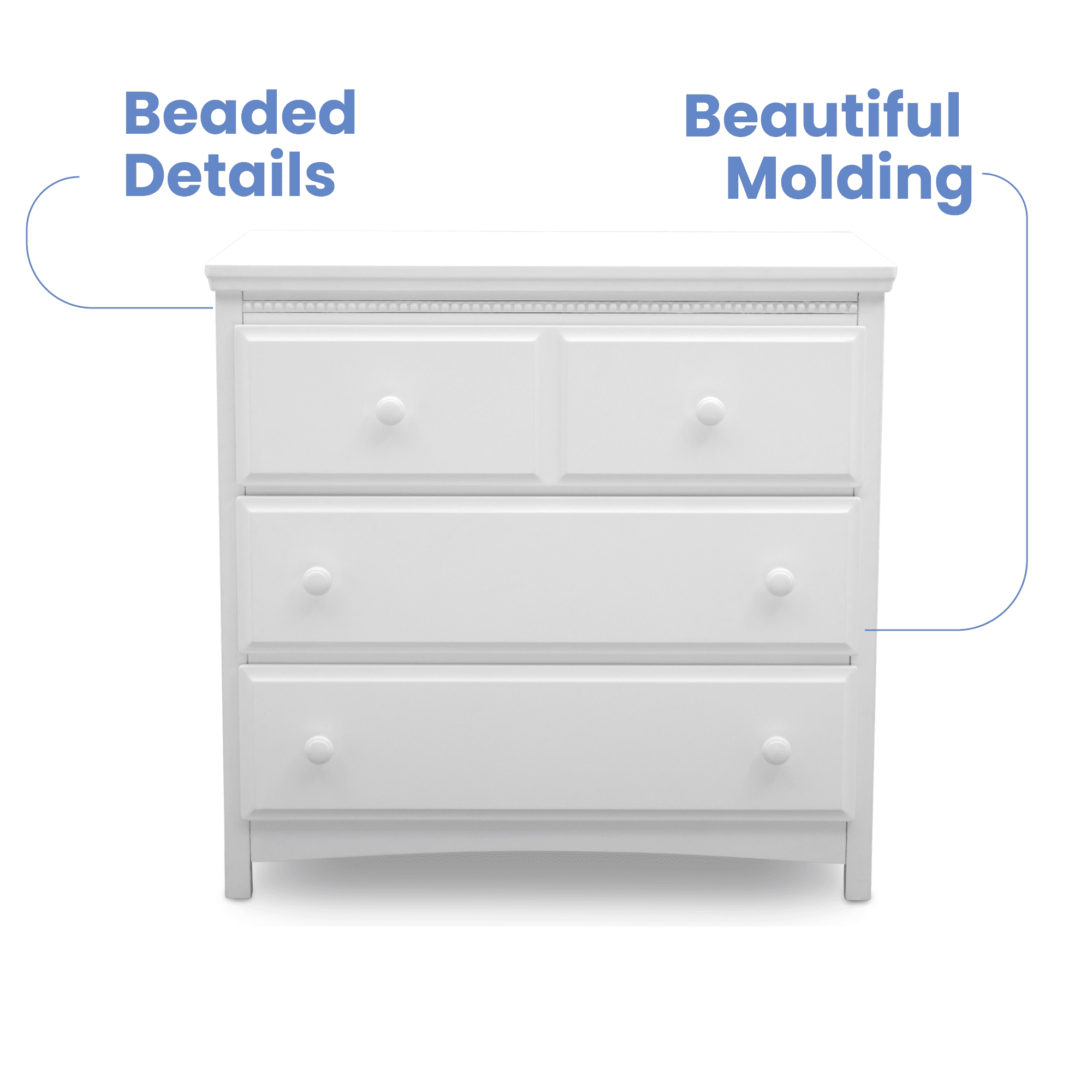 Delta Children Waverly 3 Drawer Dresser with Changing Top. Bianca White