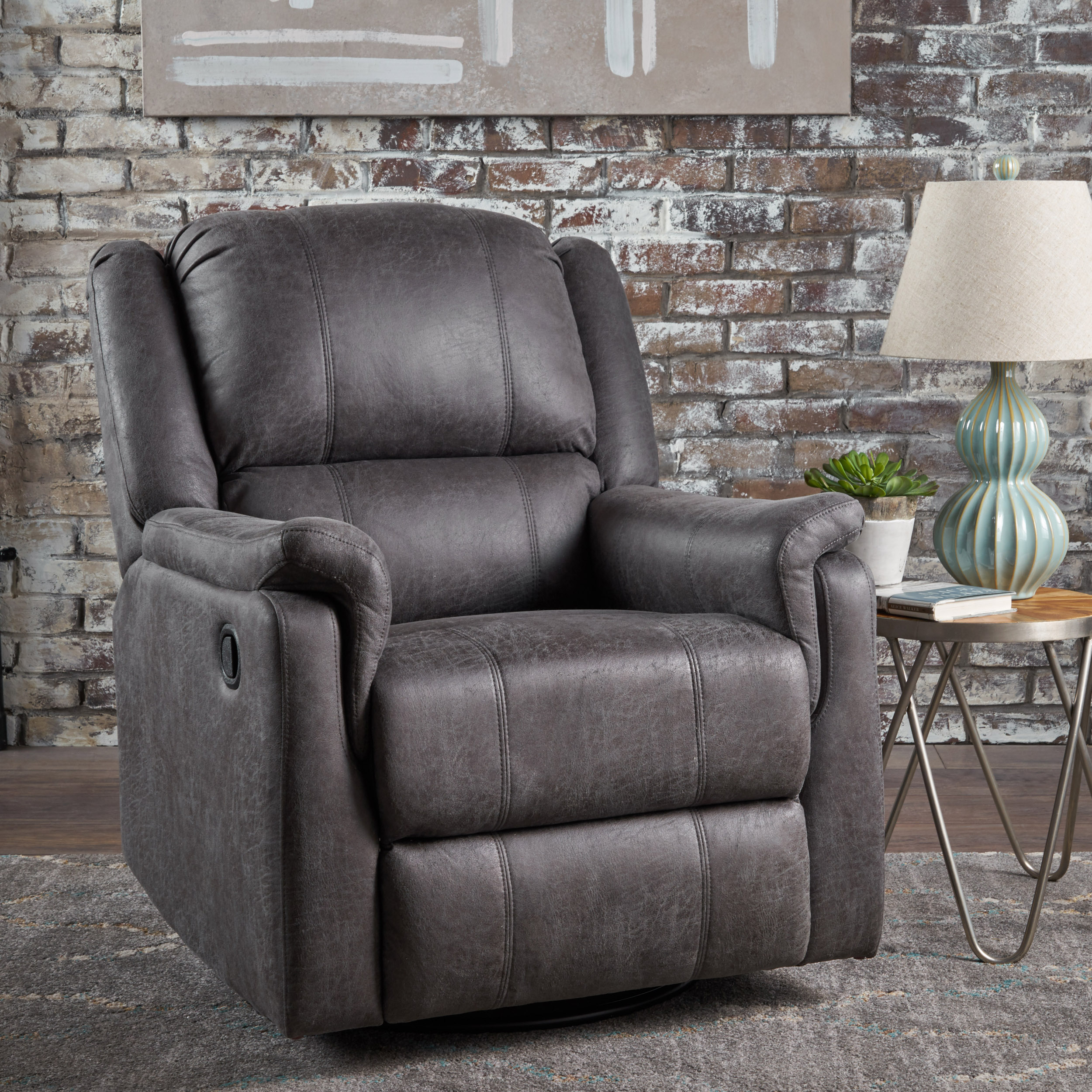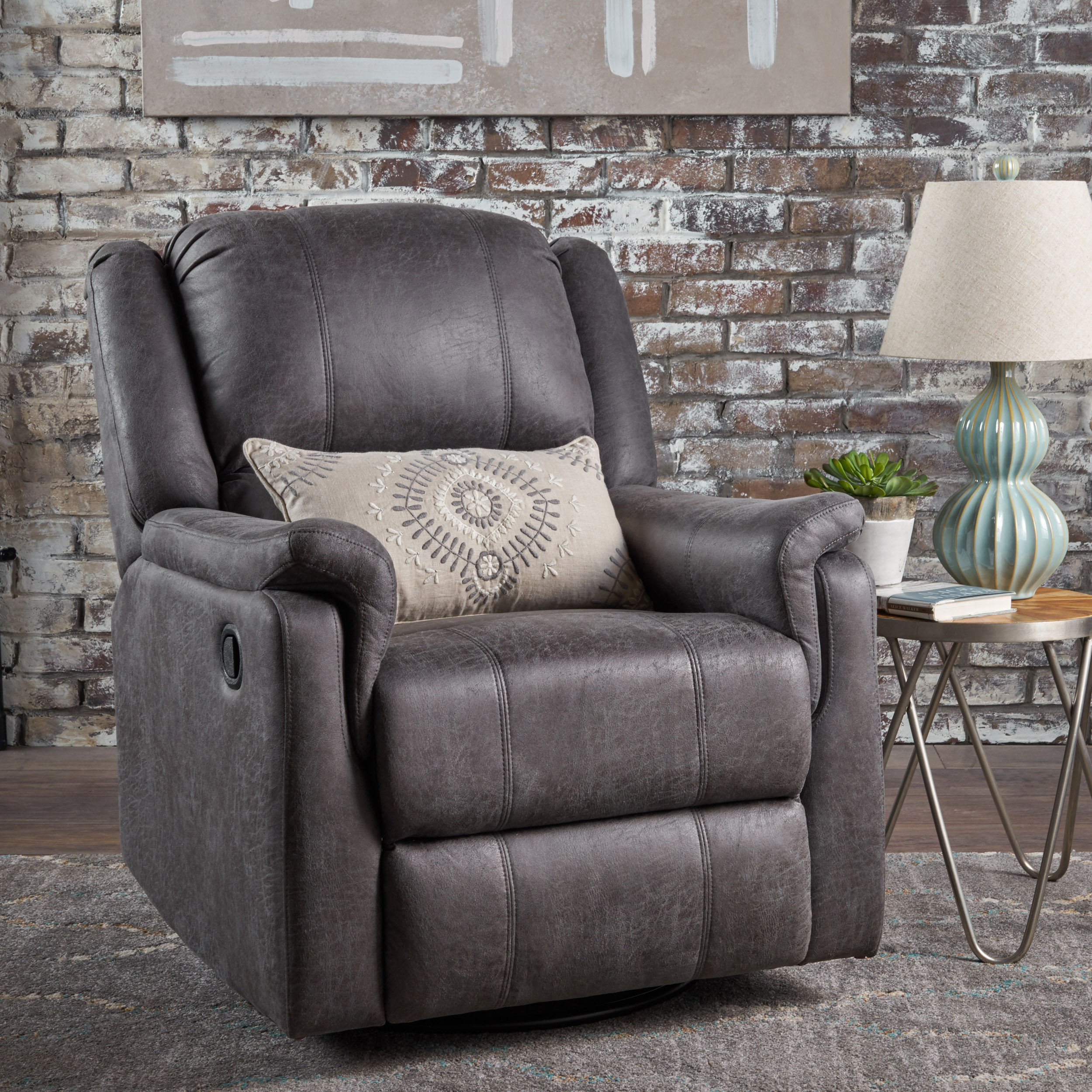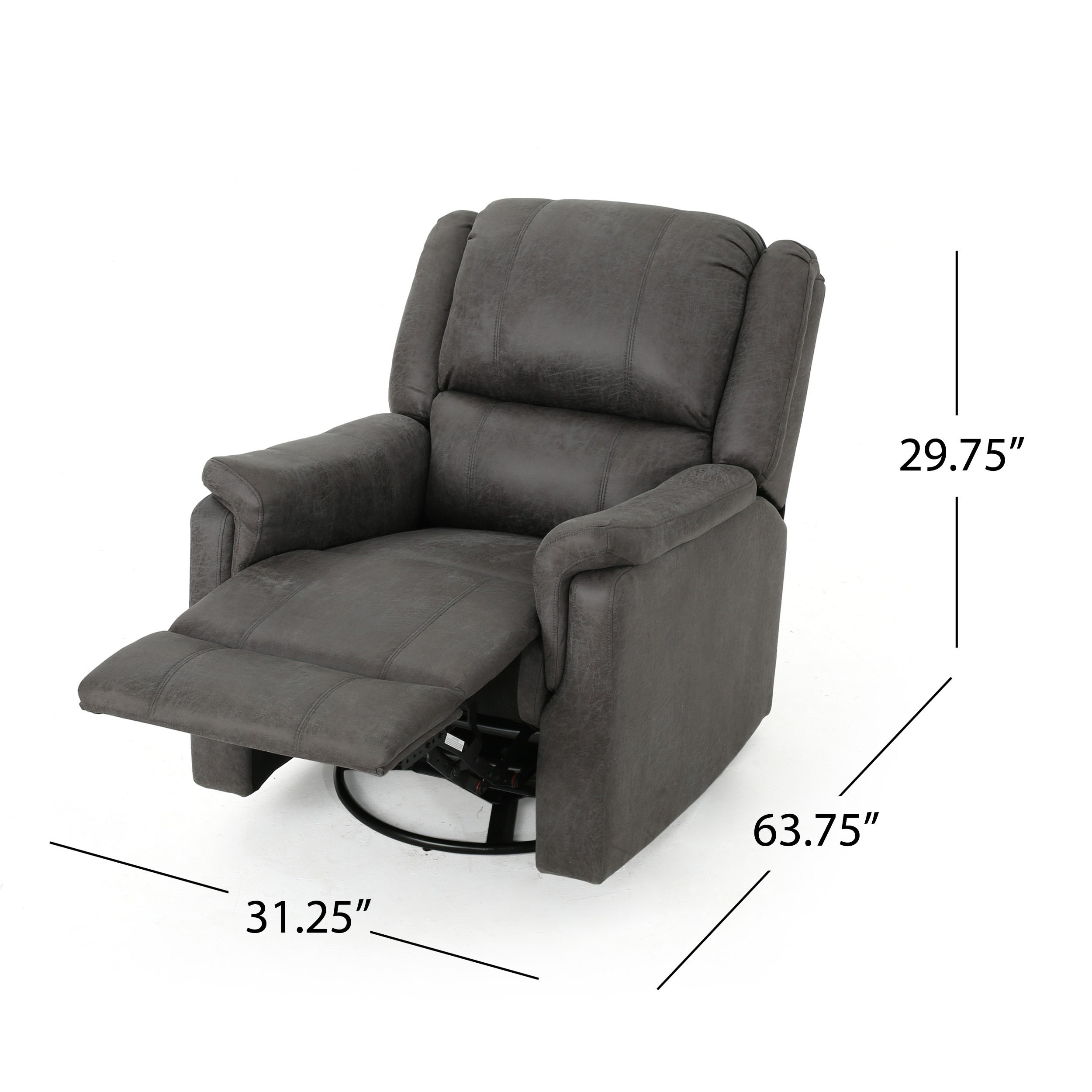 GDF Studio Pismo Contemporary Upholstered Swivel Gliding Recliner. Slate Microfiber and Black