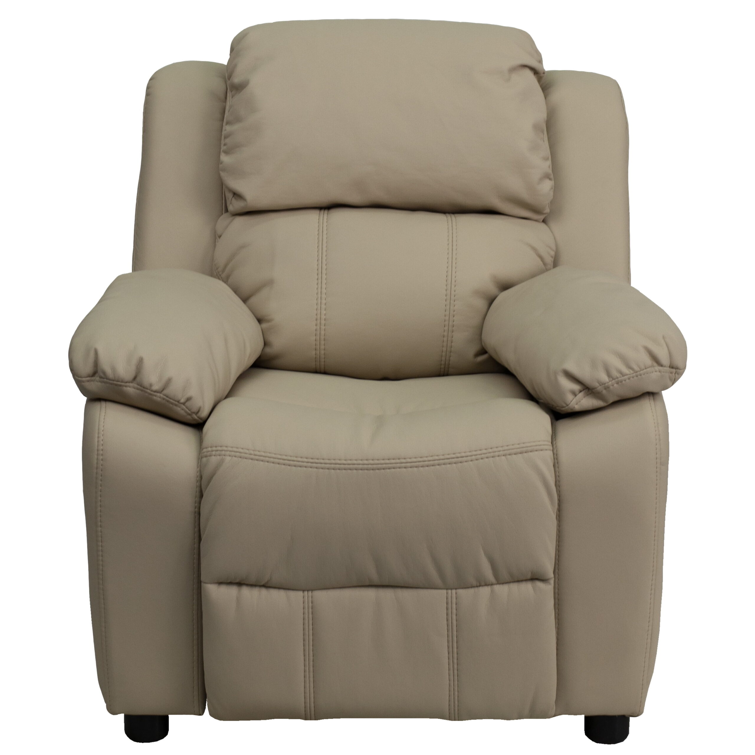 Flash Furniture Deluxe Padded Contemporary Beige Vinyl Kids Recliner with Storage Arms