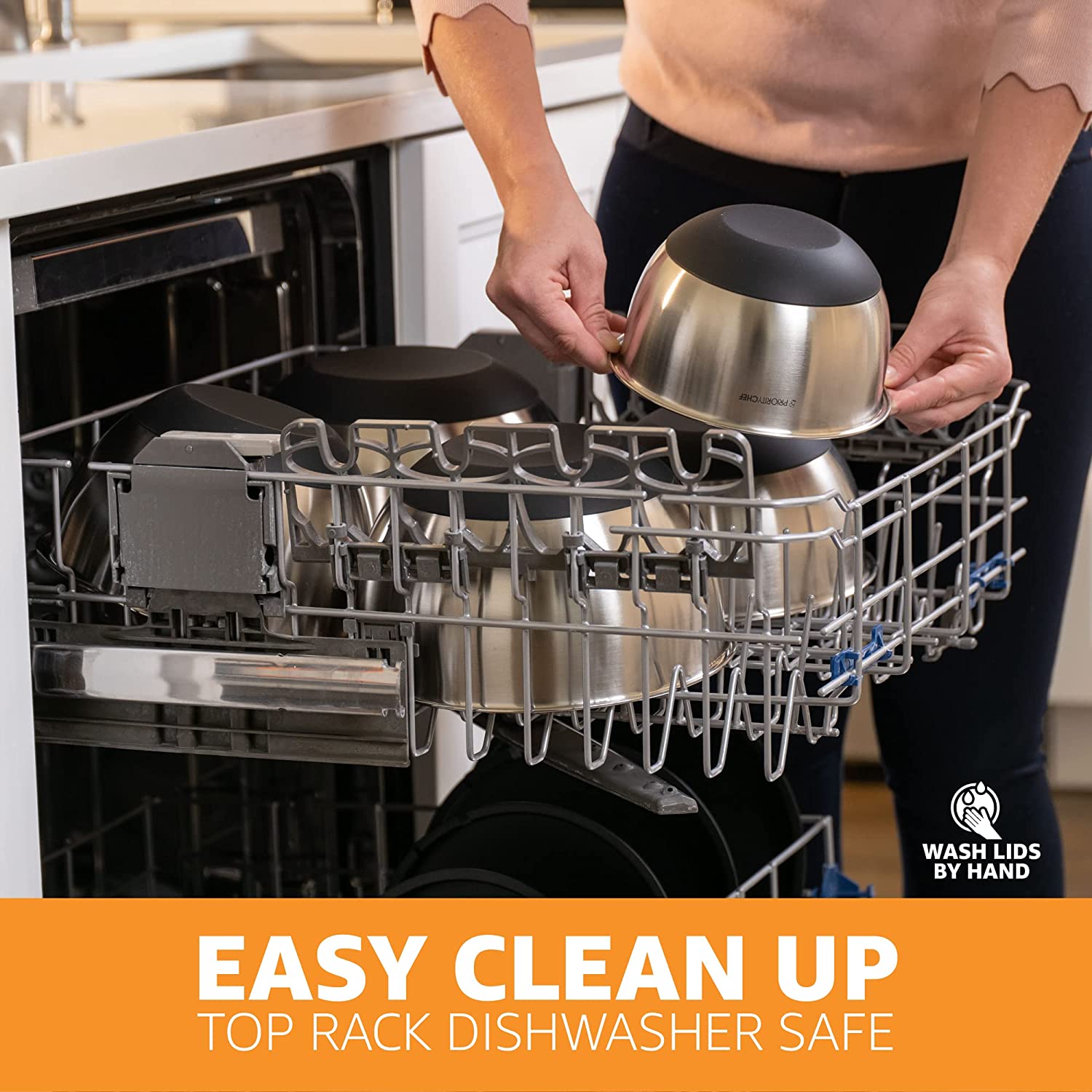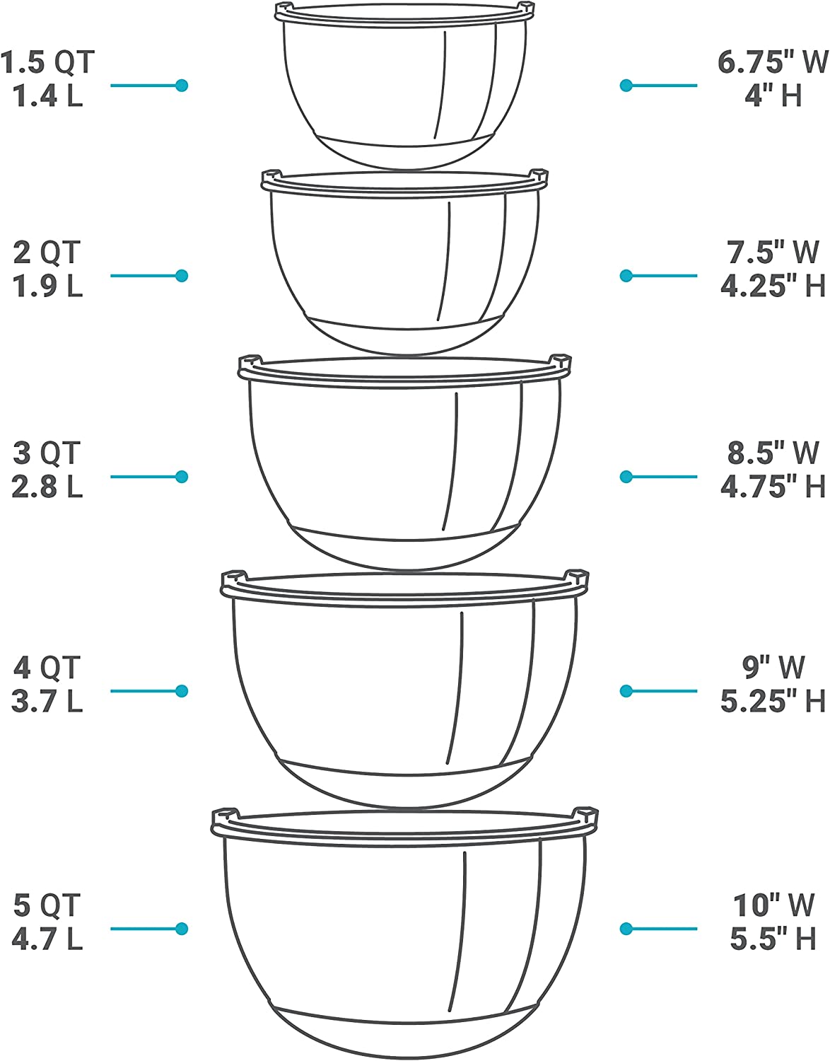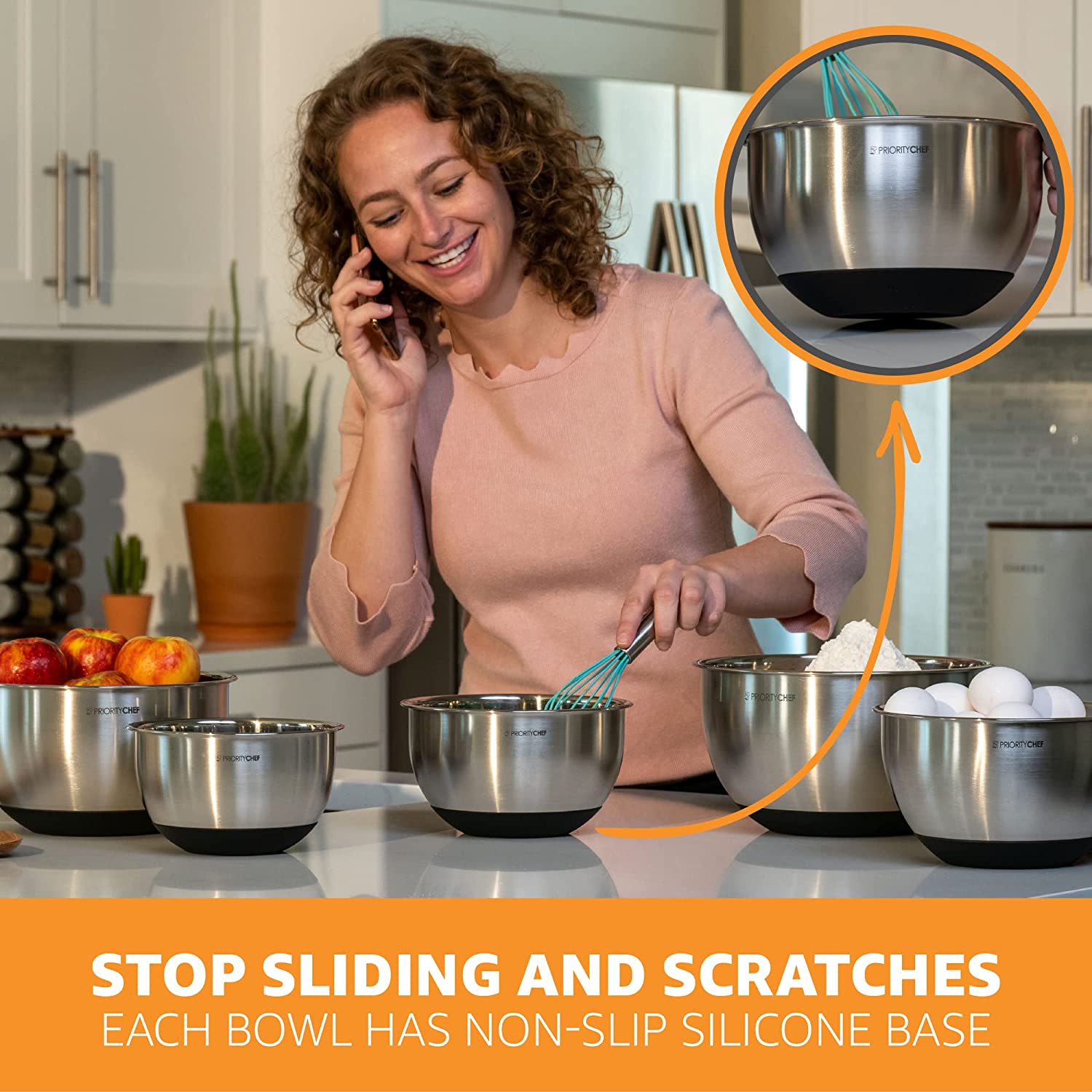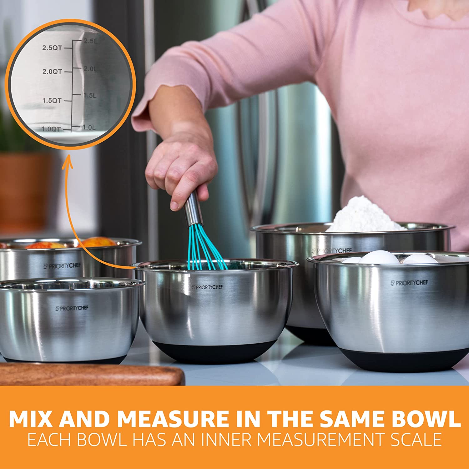 Priority Chef Premium Mixing Bowls With Lids Set. Thicker Stainless Steel Mixing Bowl Set. Large Prep Metal Bowls with Lids. Nesting Bowls for Kitchen. 1.5/2/3/4/5 Qrt. Black