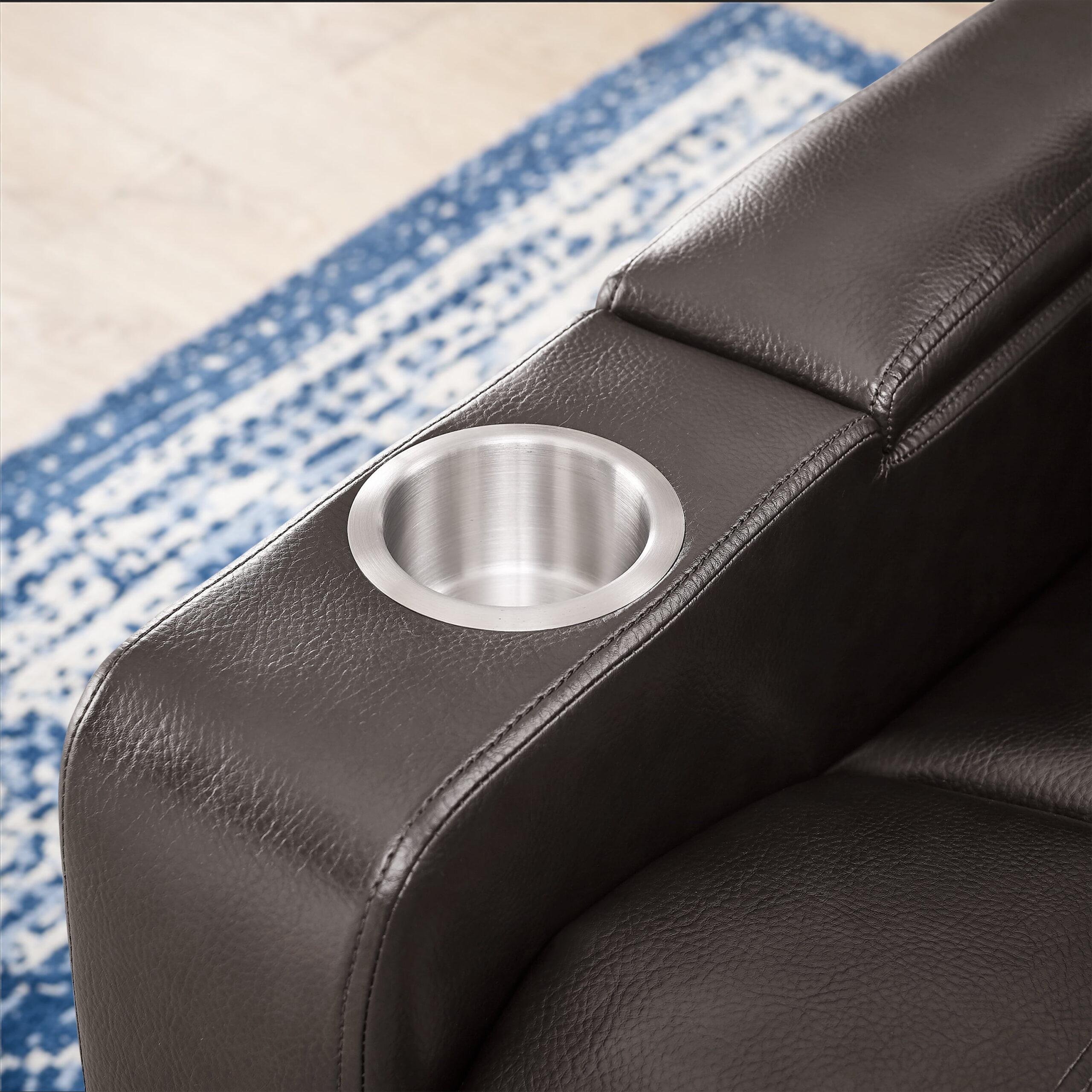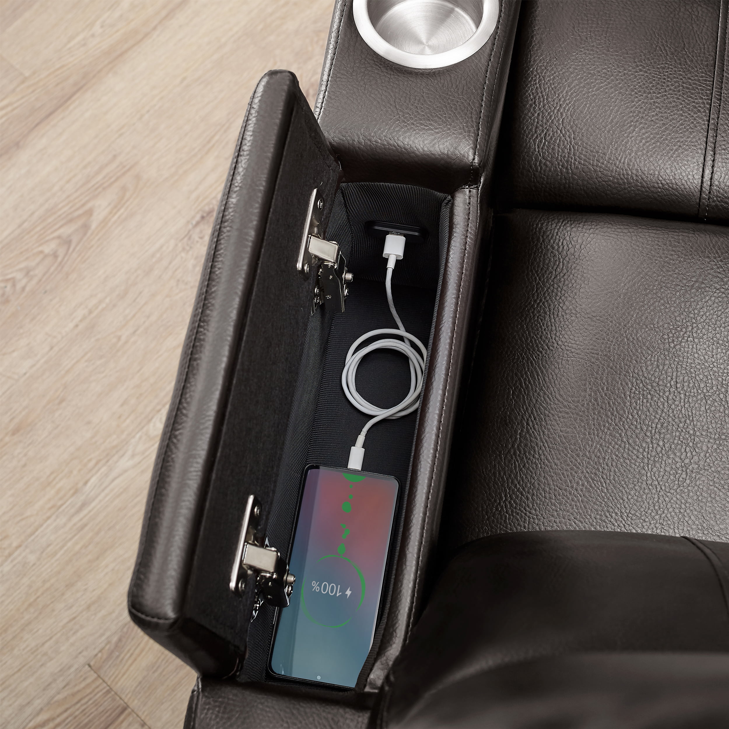 Mainstays Home Theater Recliner with USB Charging Ports. Brown Faux Leather