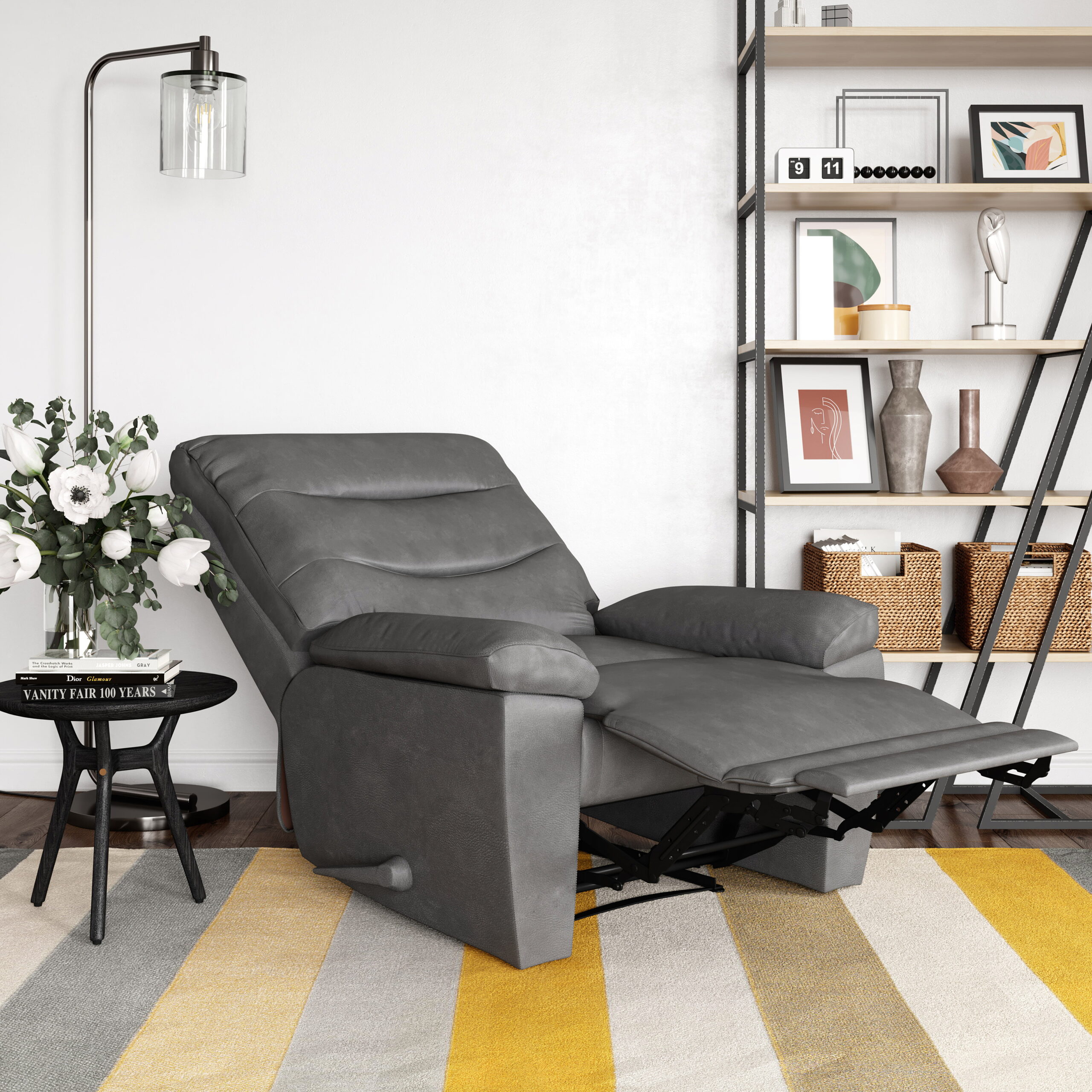 Relax-a-Lounger Lincoln Manual Oversized Recliner. Gray Faux Leather
