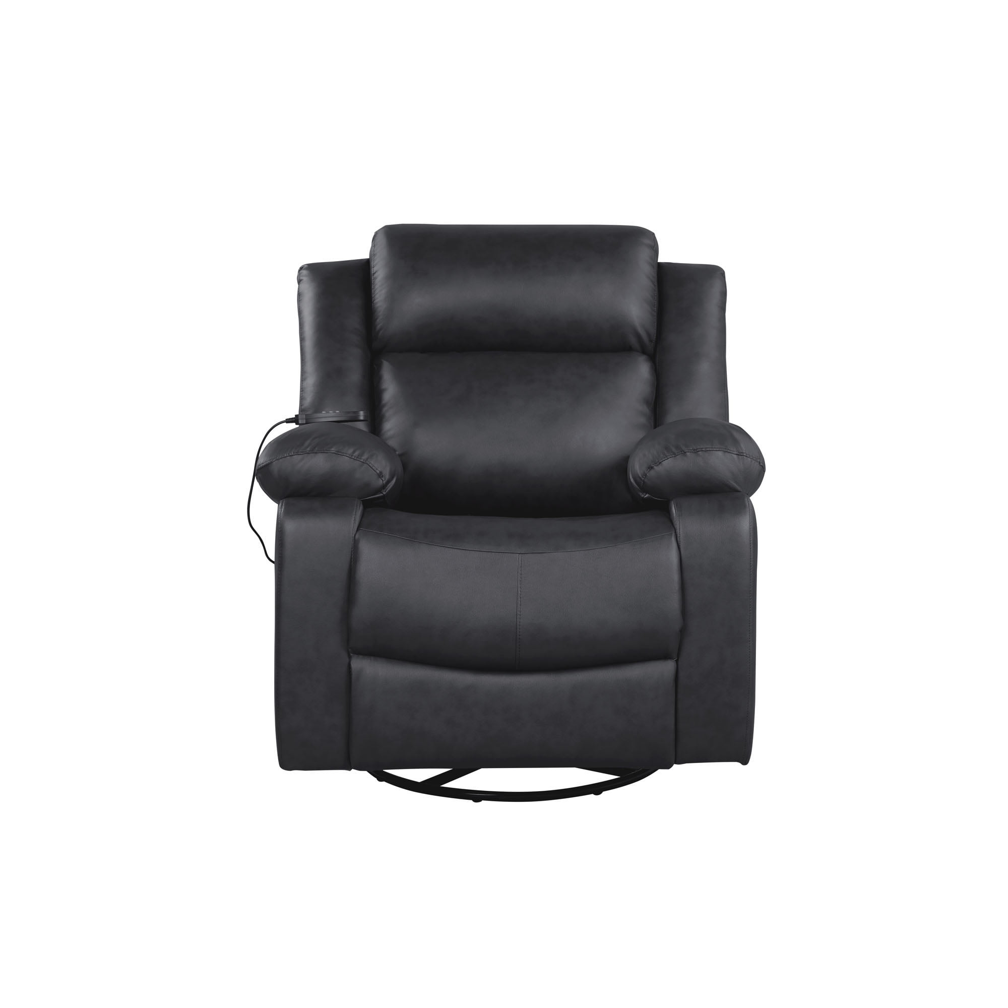 Elm & Oak Maxima Standard Manual Swivel Recliner with Massage and Heat. Black Faux Leather