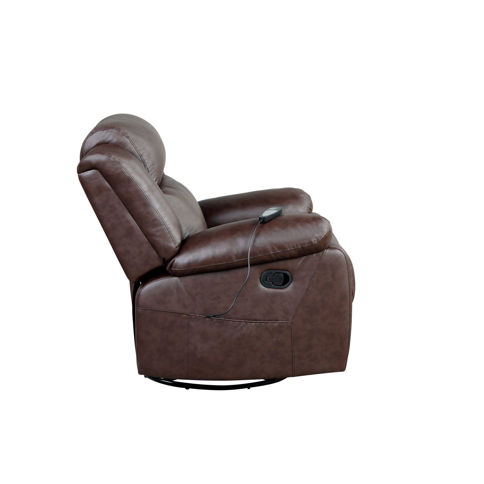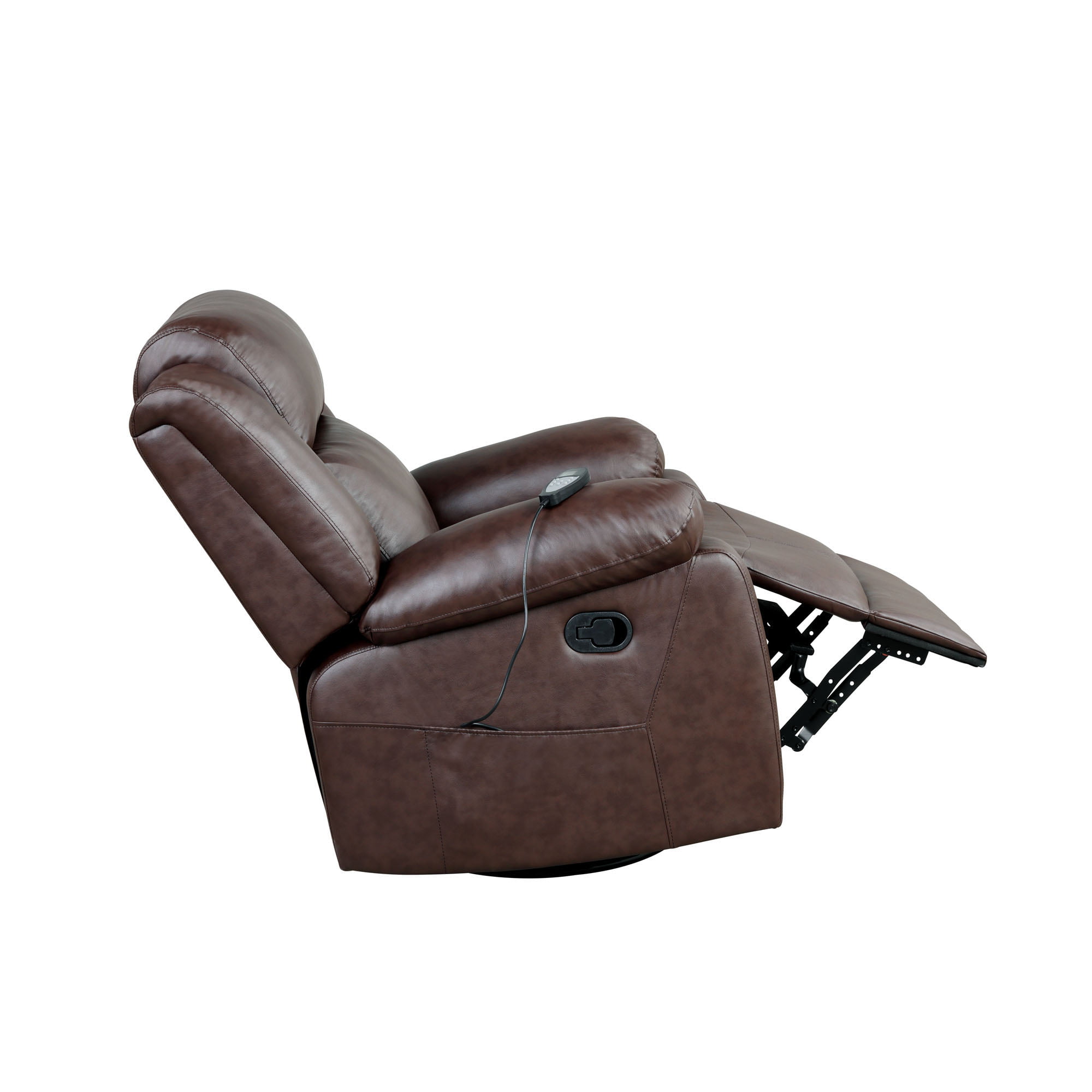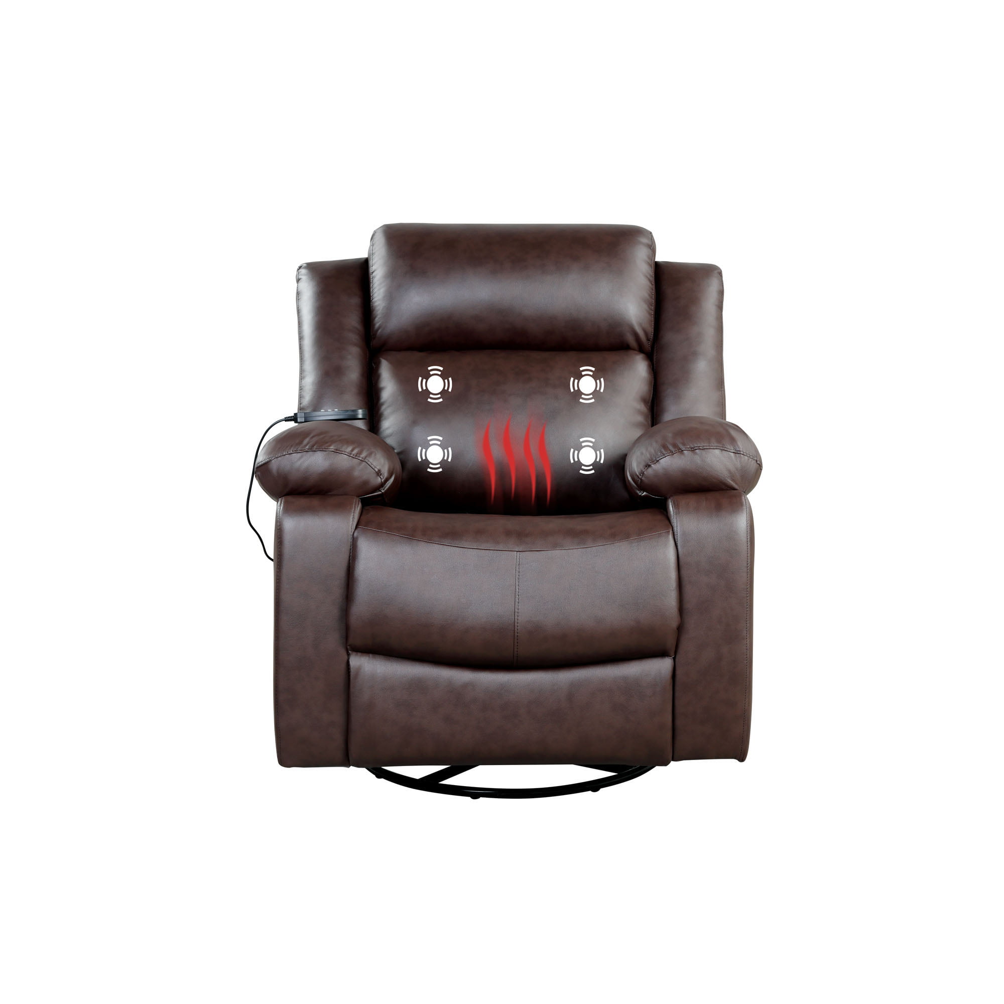 Elm & Oak Maxima Standard Manual Swivel Recliner with Massage and Heat. Brown Faux Leather