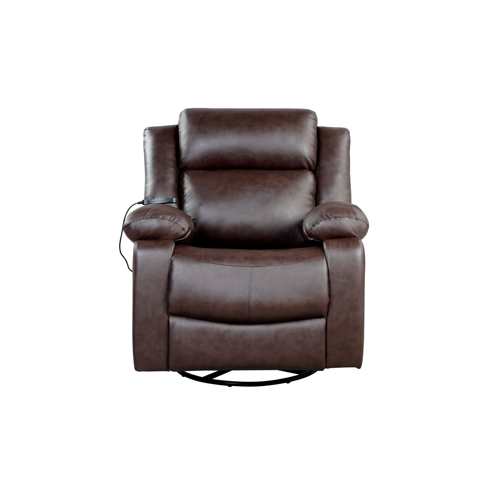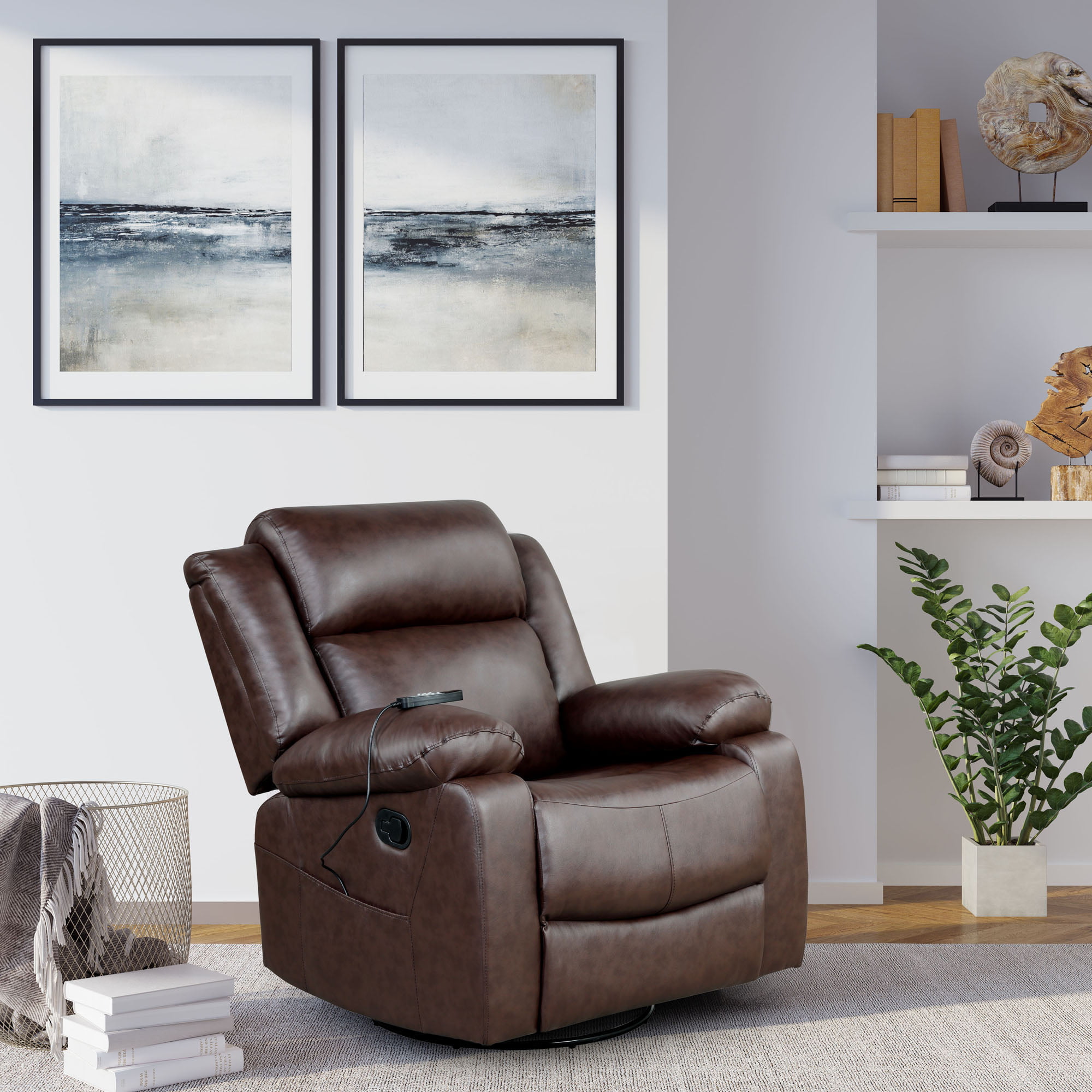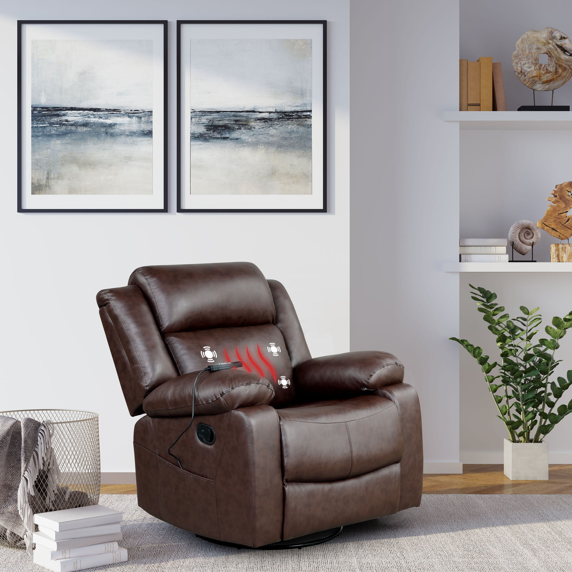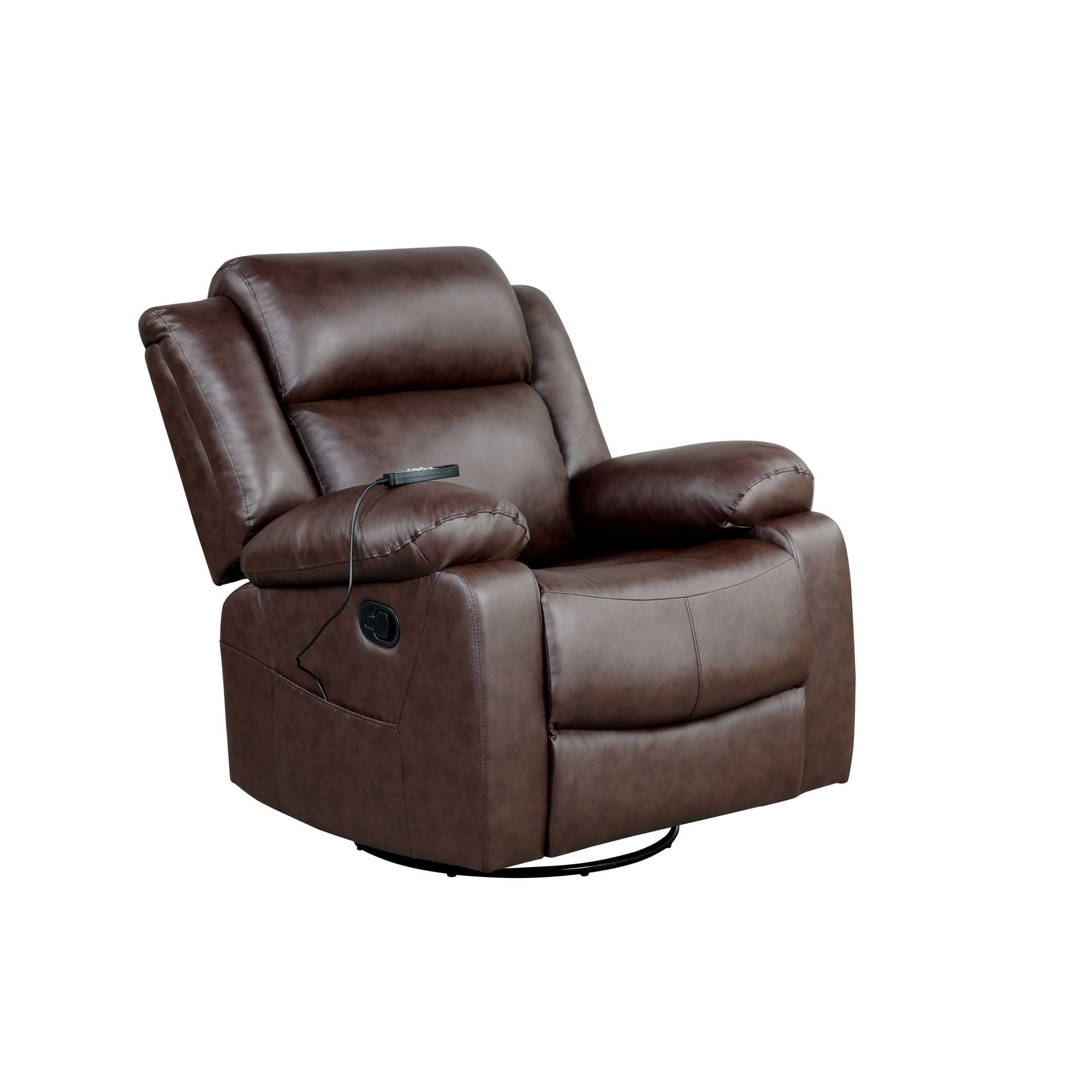 Elm & Oak Maxima Standard Manual Swivel Recliner with Massage and Heat. Brown Faux Leather