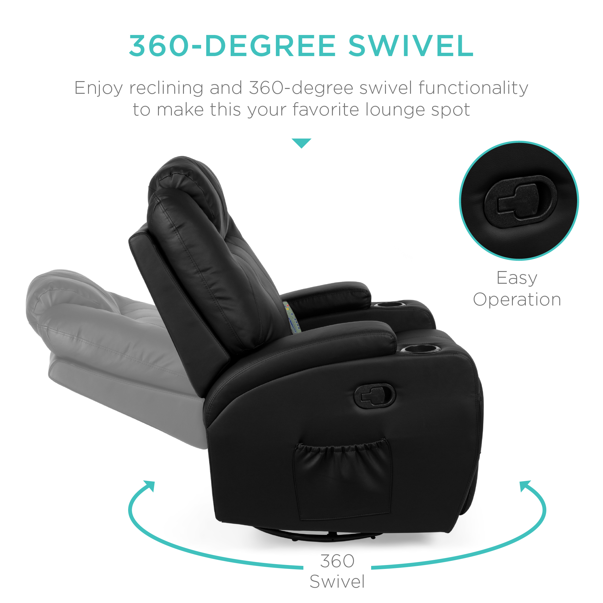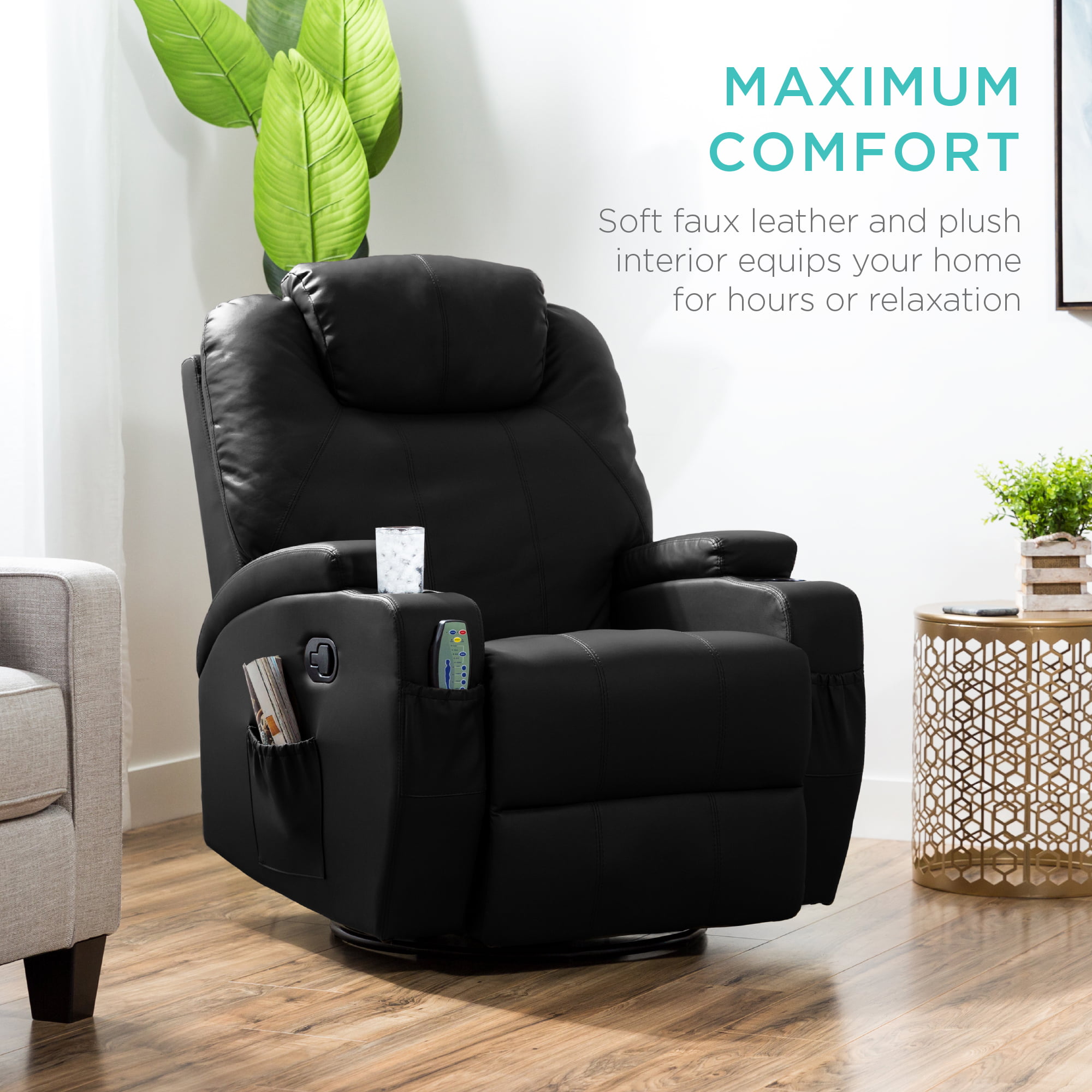 Best Choice Products Executive Swivel Glider Massage Recliner Chair w/ Remote Control. 5 Modes. 2 Cup Holders - Black