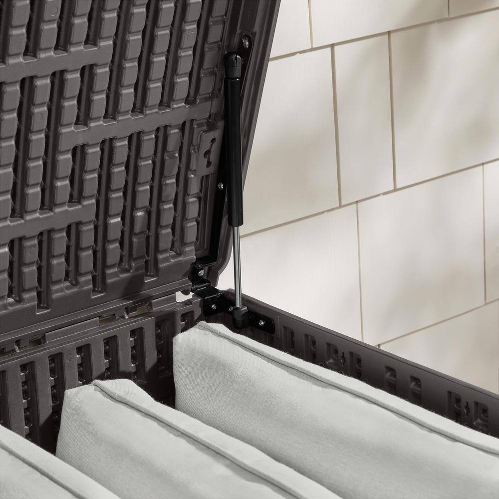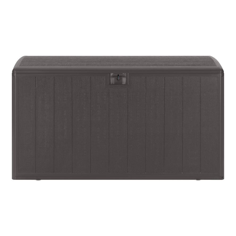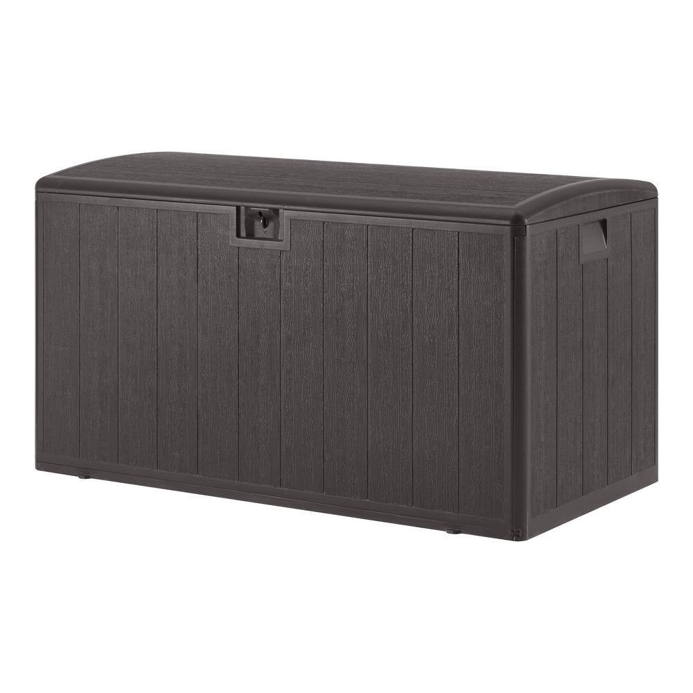 Hampton Bay HBDB130WLJ-GS 130 Gal. Brown Resin Wood Look Outdoor Storage Deck Box with Lockable Lid