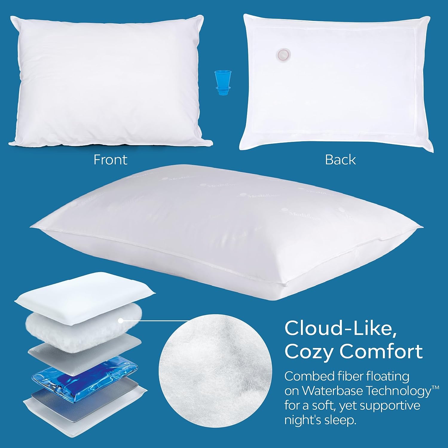 Mediflow Fiber Water Pillow - Adjustable Pillow for Neck Pain Relief. Pillow for Side. Back. and Stomach Sleepers. The Original Inventor of The Water Pillow (2 Pillows. 2 Pillow Protectors)