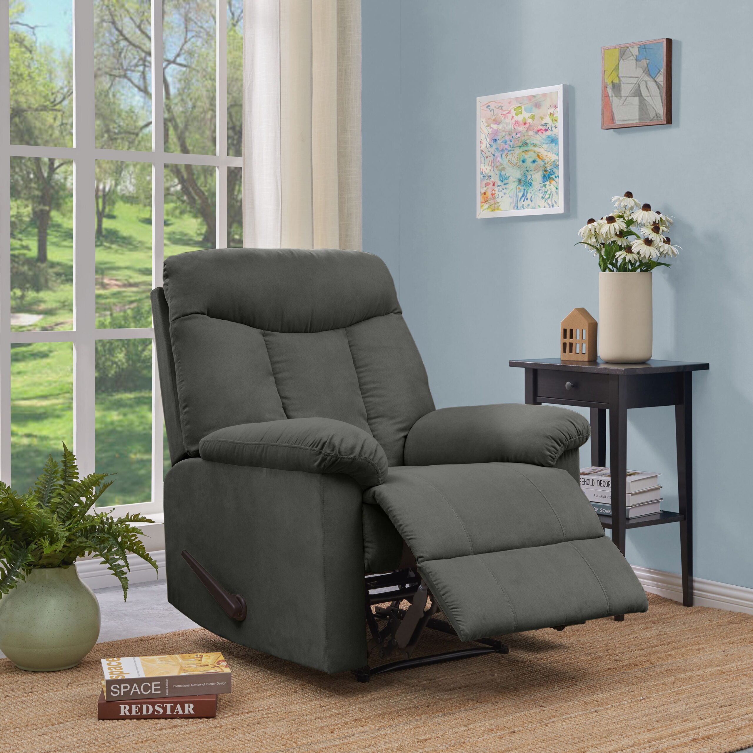 Homesvale Montero Microfiber Wall Hugger Recliner Chair. Gray