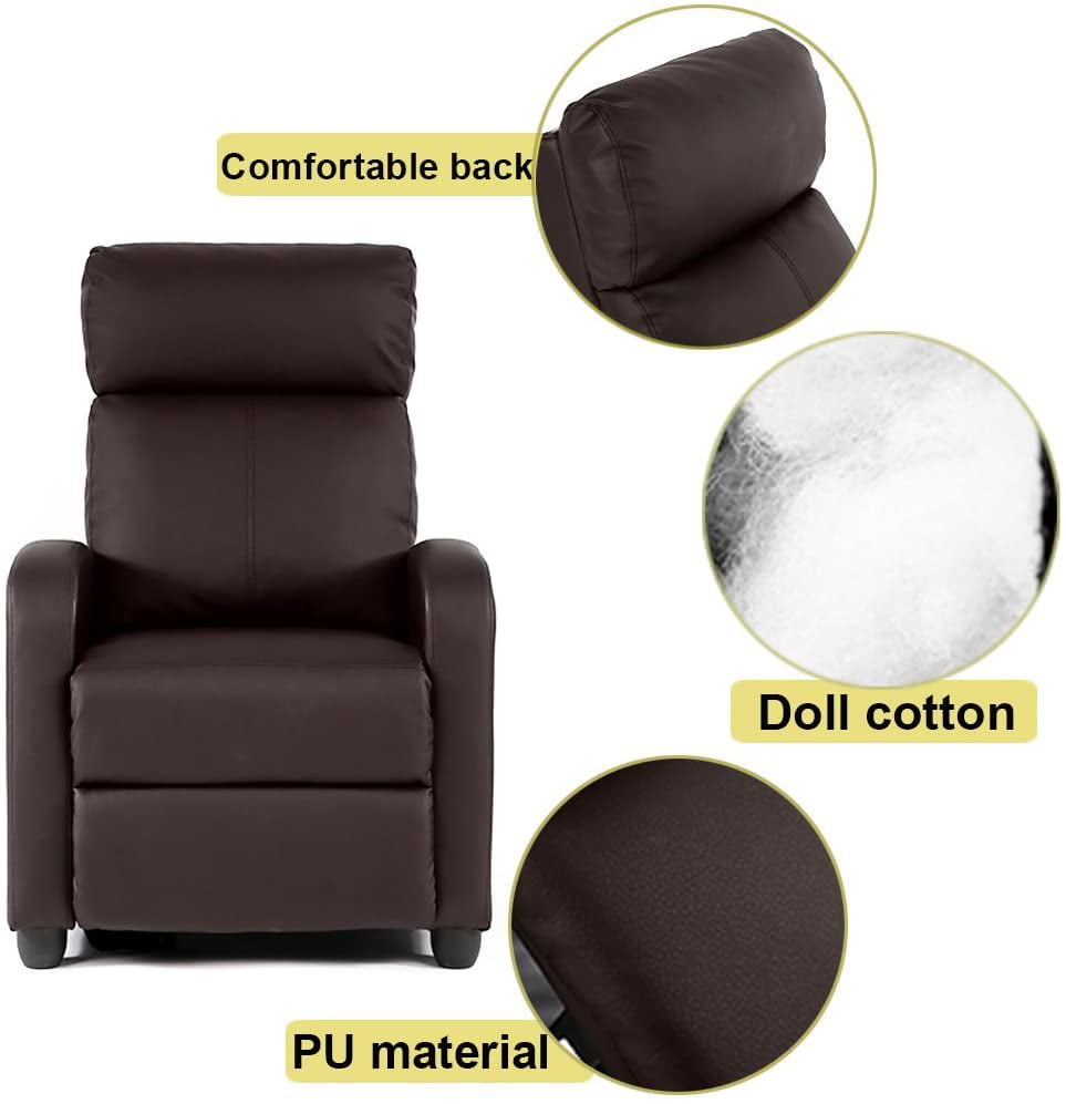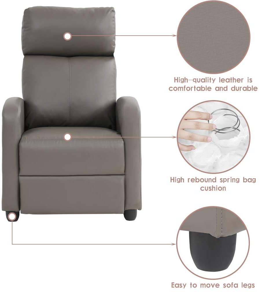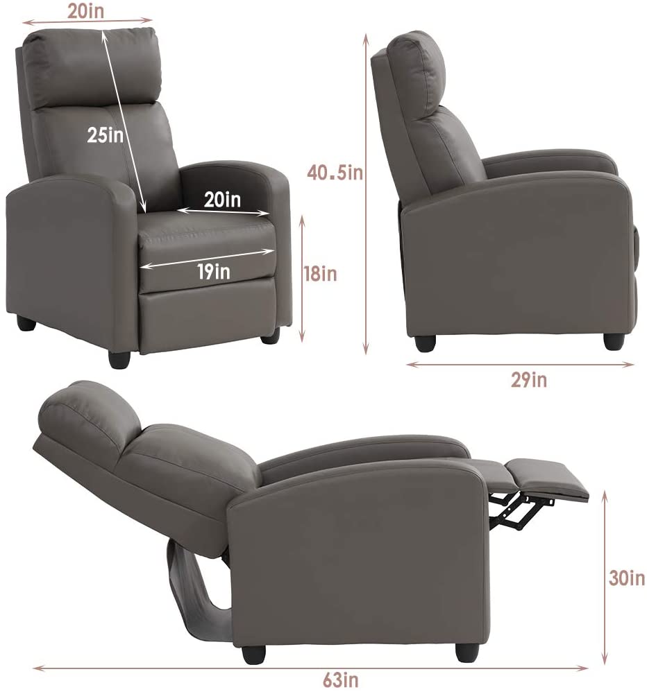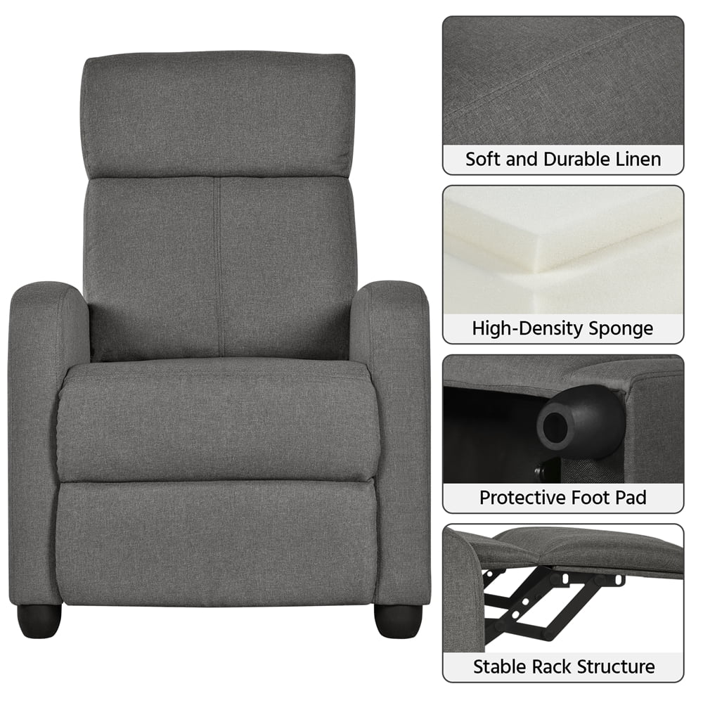 Easyfashion Fabric Push Back Theater Recliner Chair with Footrest. Gray