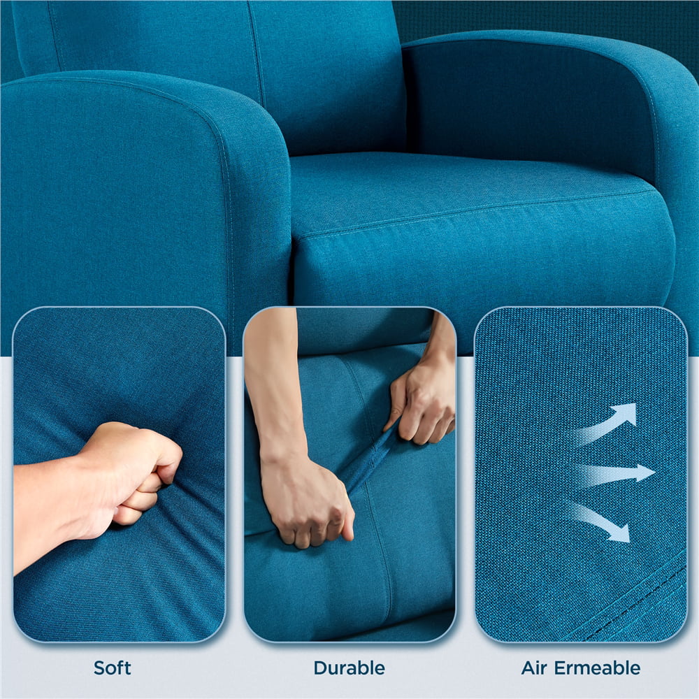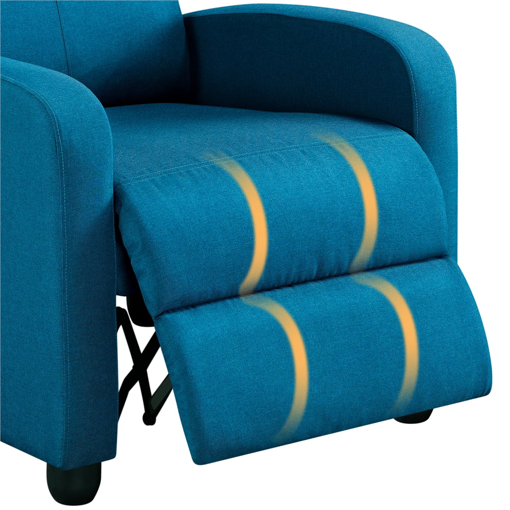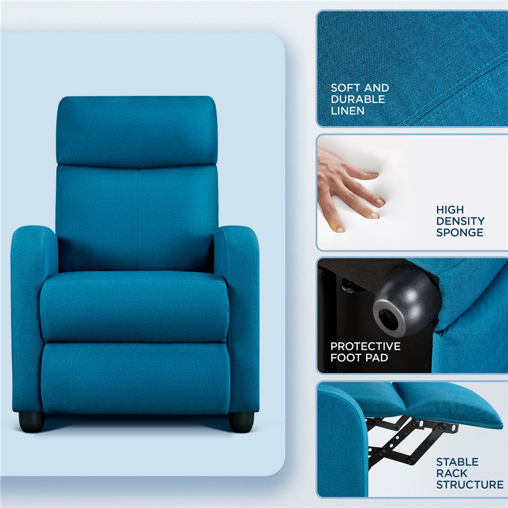 Easyfashion Fabric Push Back Theater Recliner Chair with Footrest. Blue