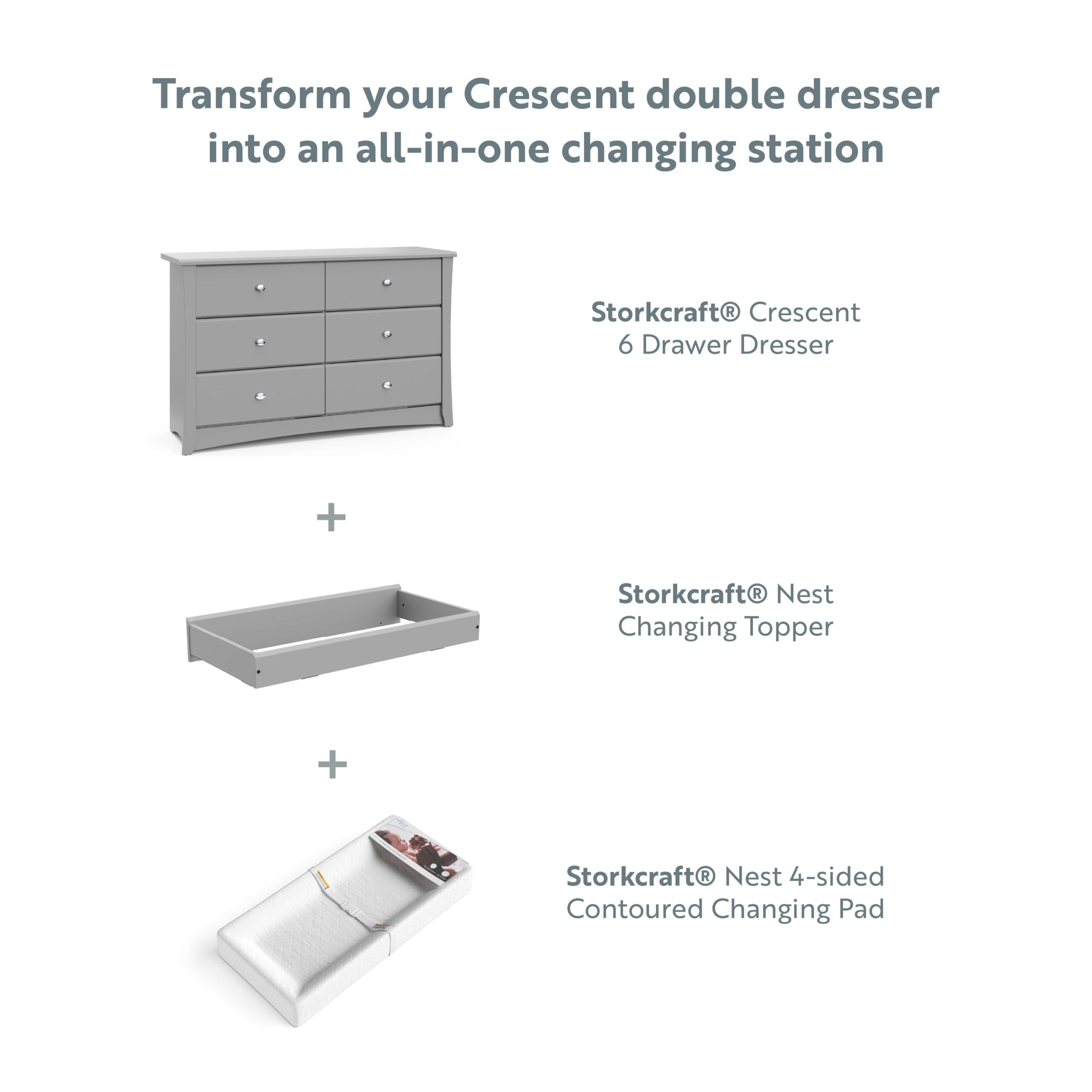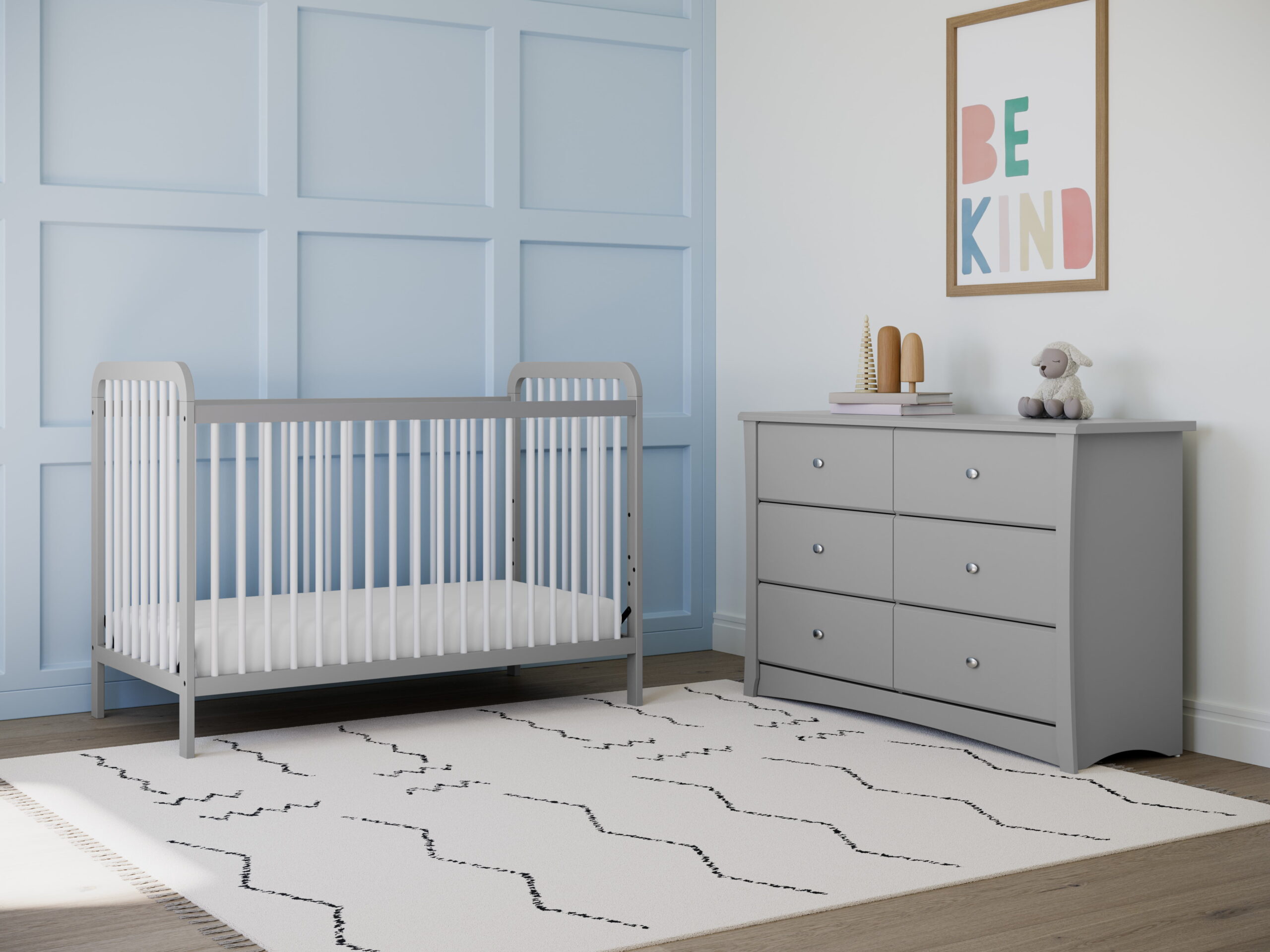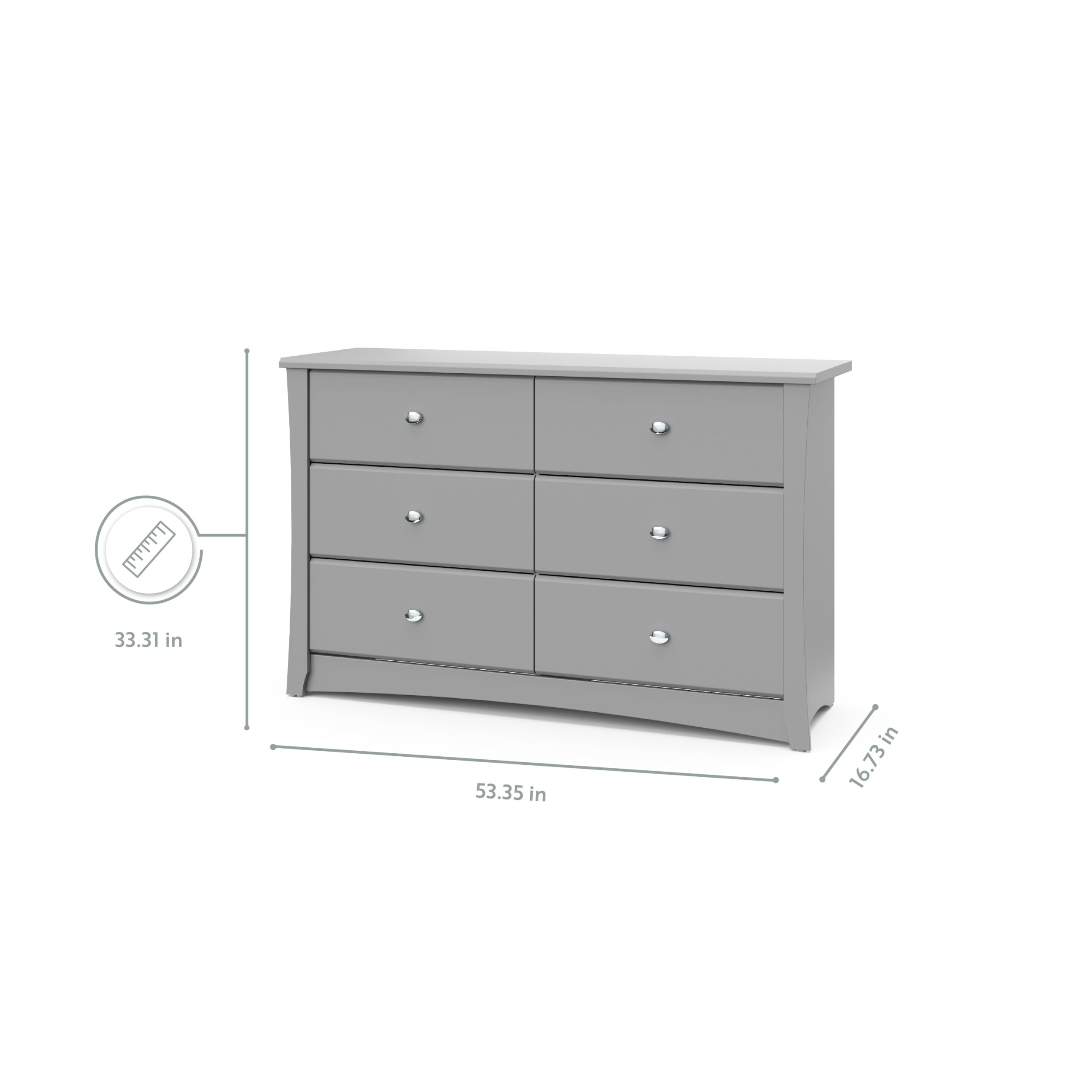 Storkcraft Crescent 6 Drawer Modern Double Dresser Pebble Gray