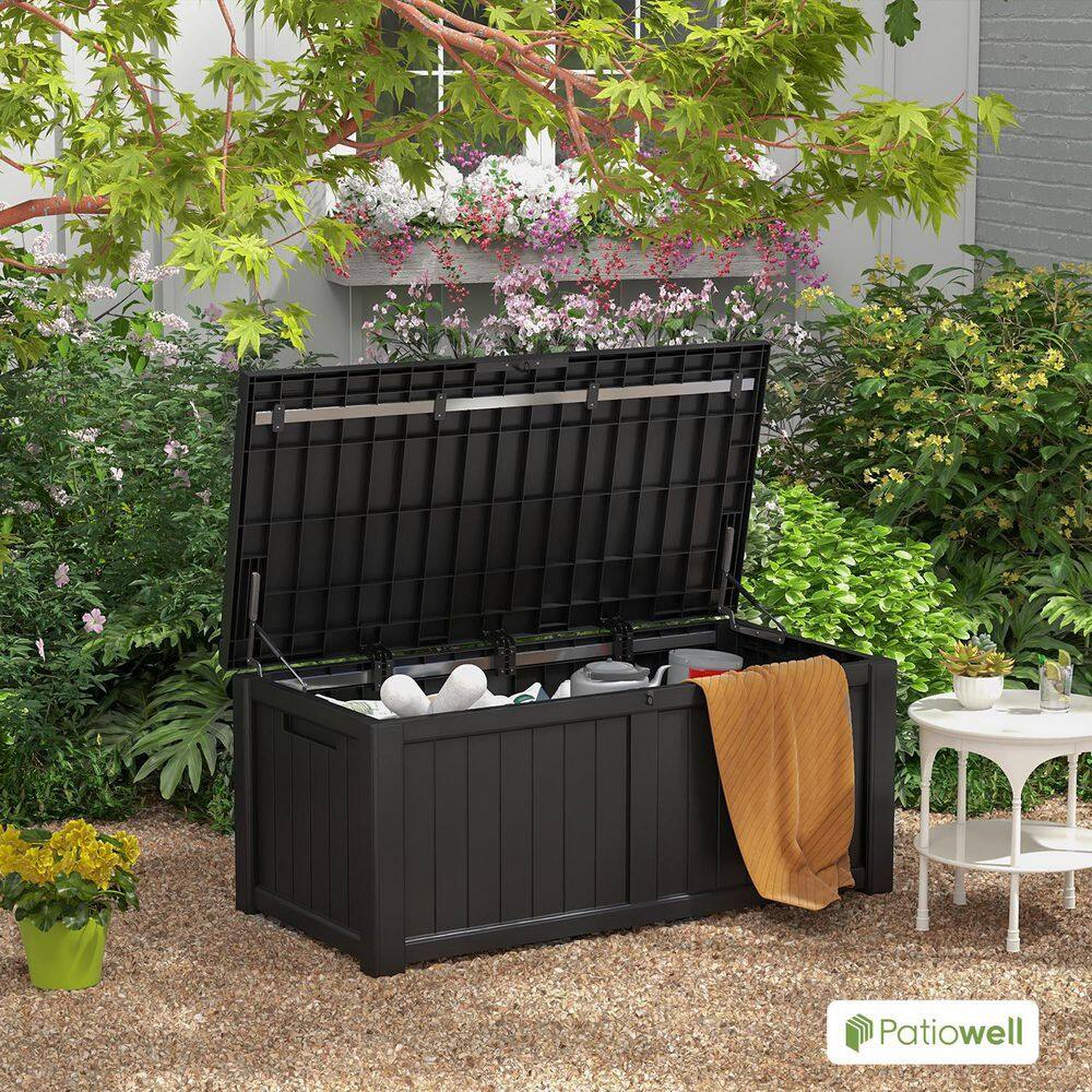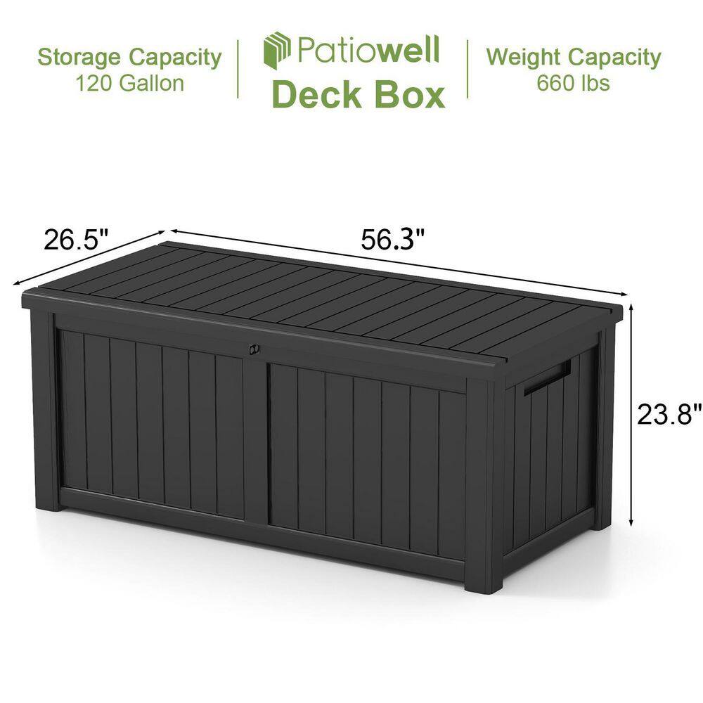 Patiowell PASB120W0 120 Gal. Outdoor Storage Plastic Resin Deck Box Large Patio Storage Container in Black