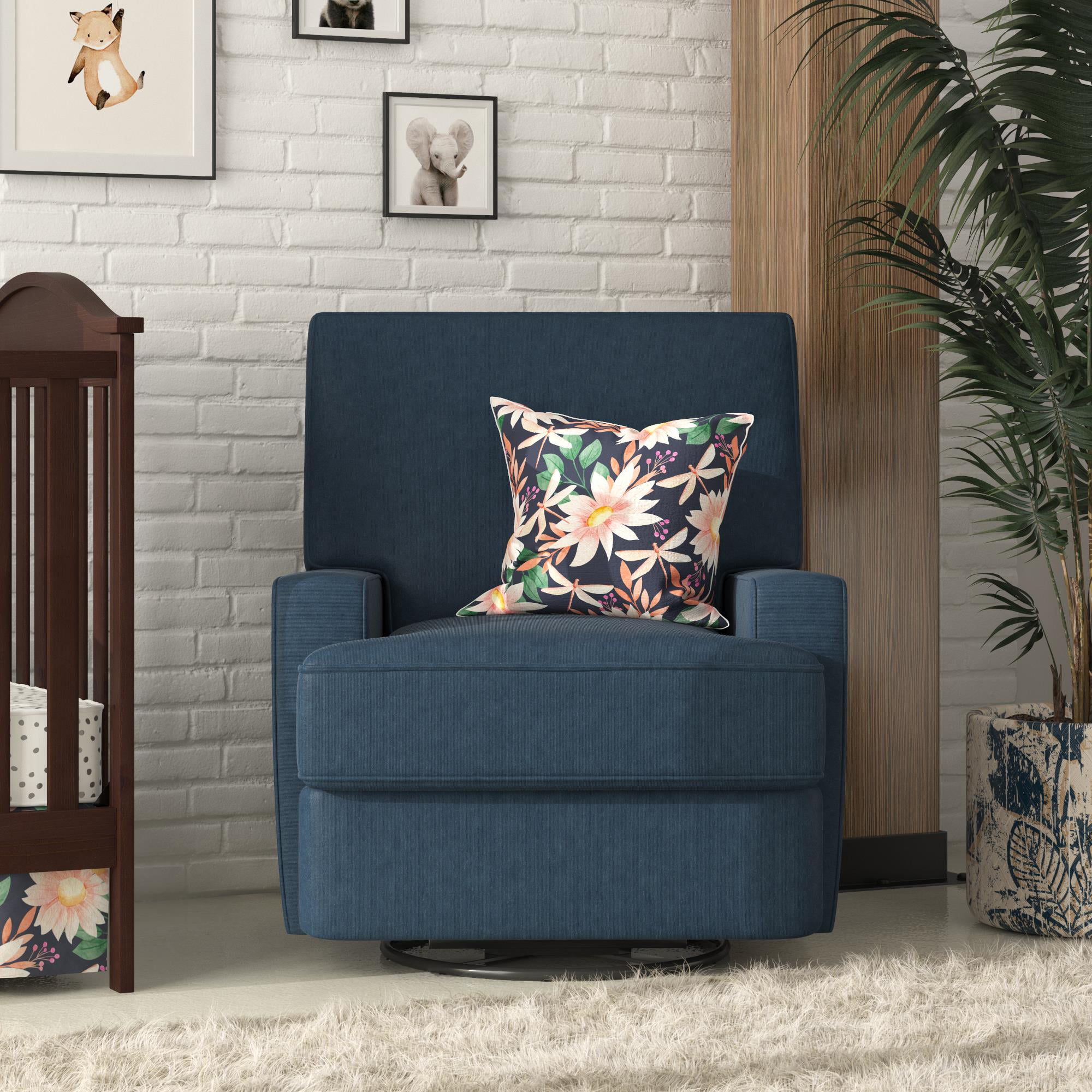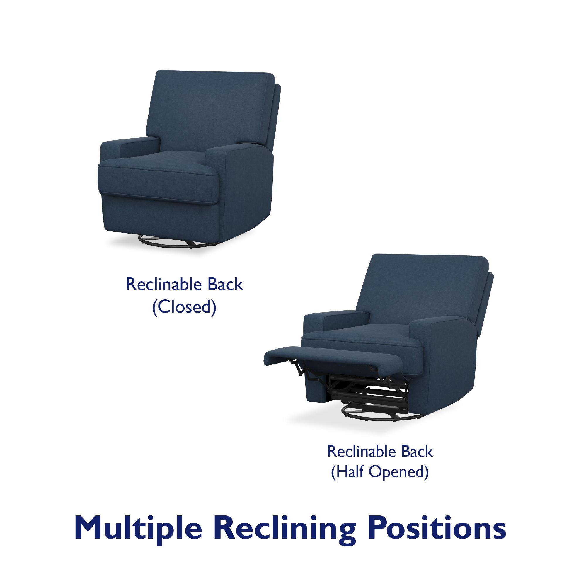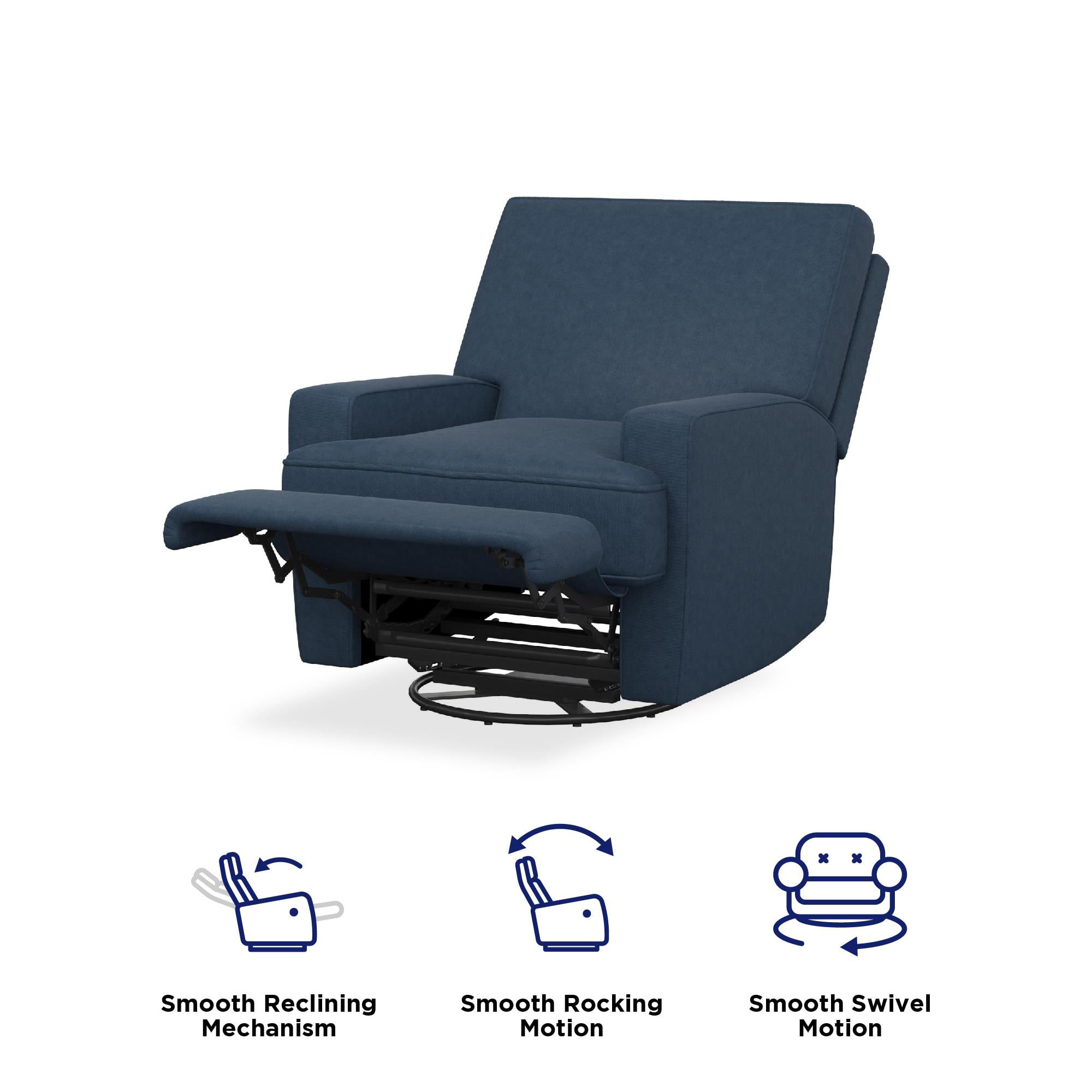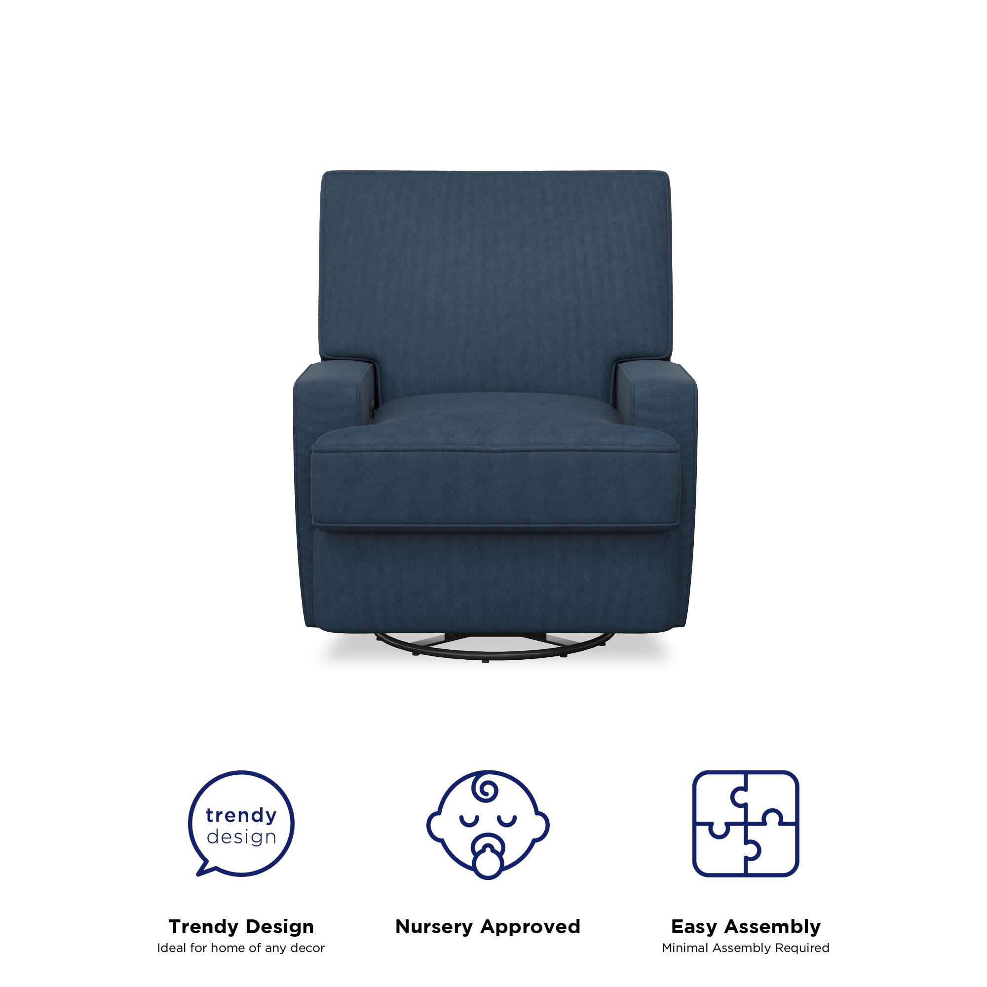 Baby Relax Rylan Swivel Glider Recliner Chair. Coil Seating. Dark Blue