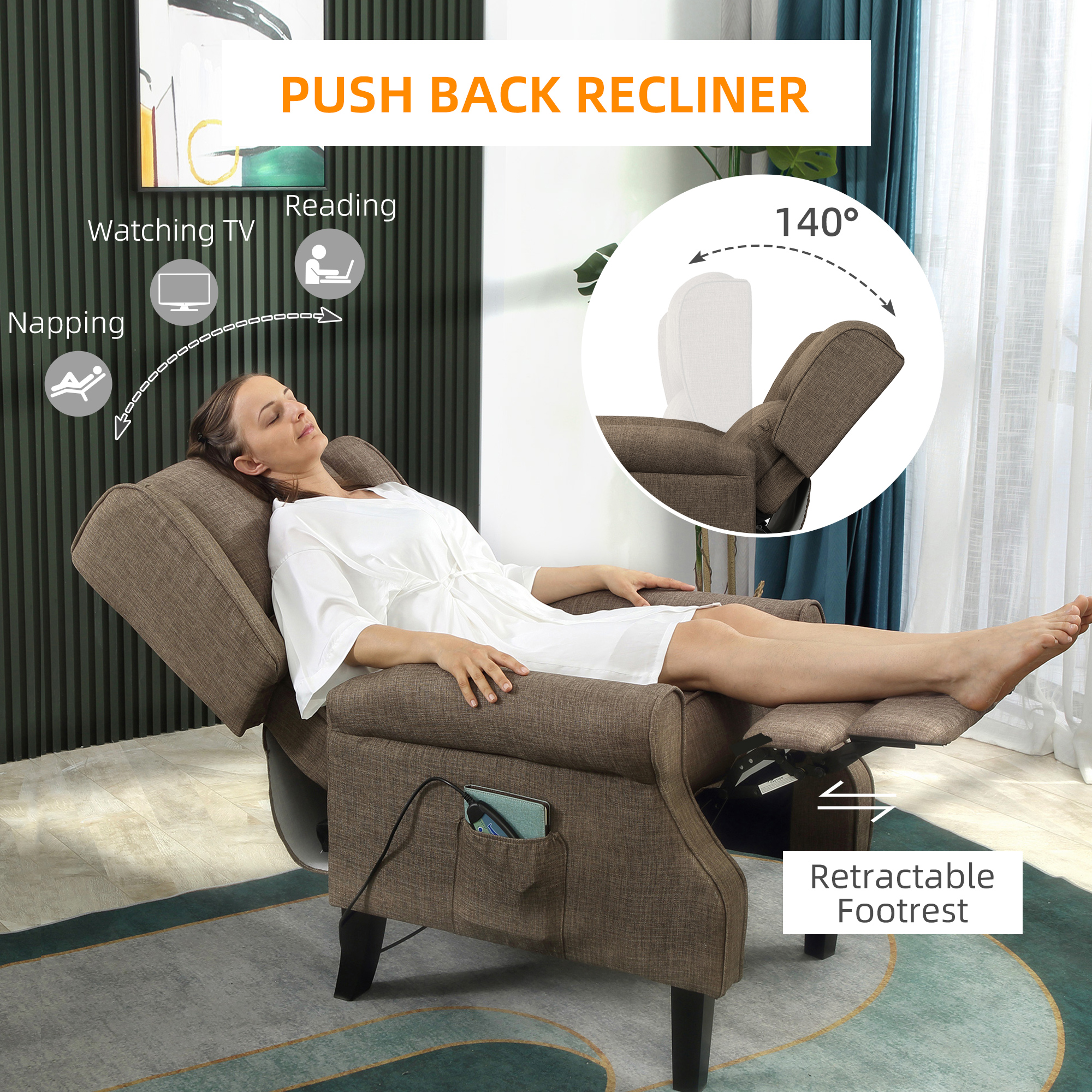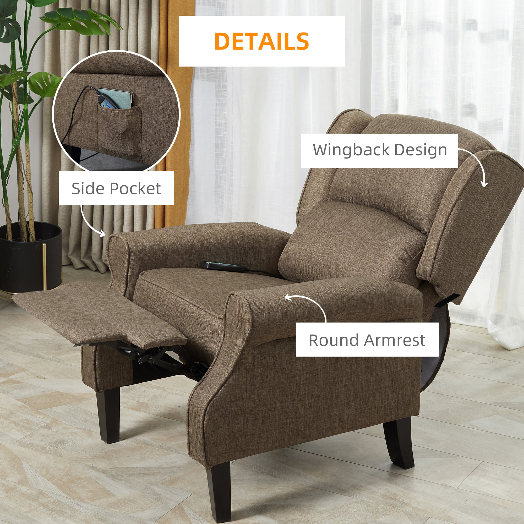 Relaxing Fabric Heated Massage Chair Vibrating Recliner Sofa With Remote Control