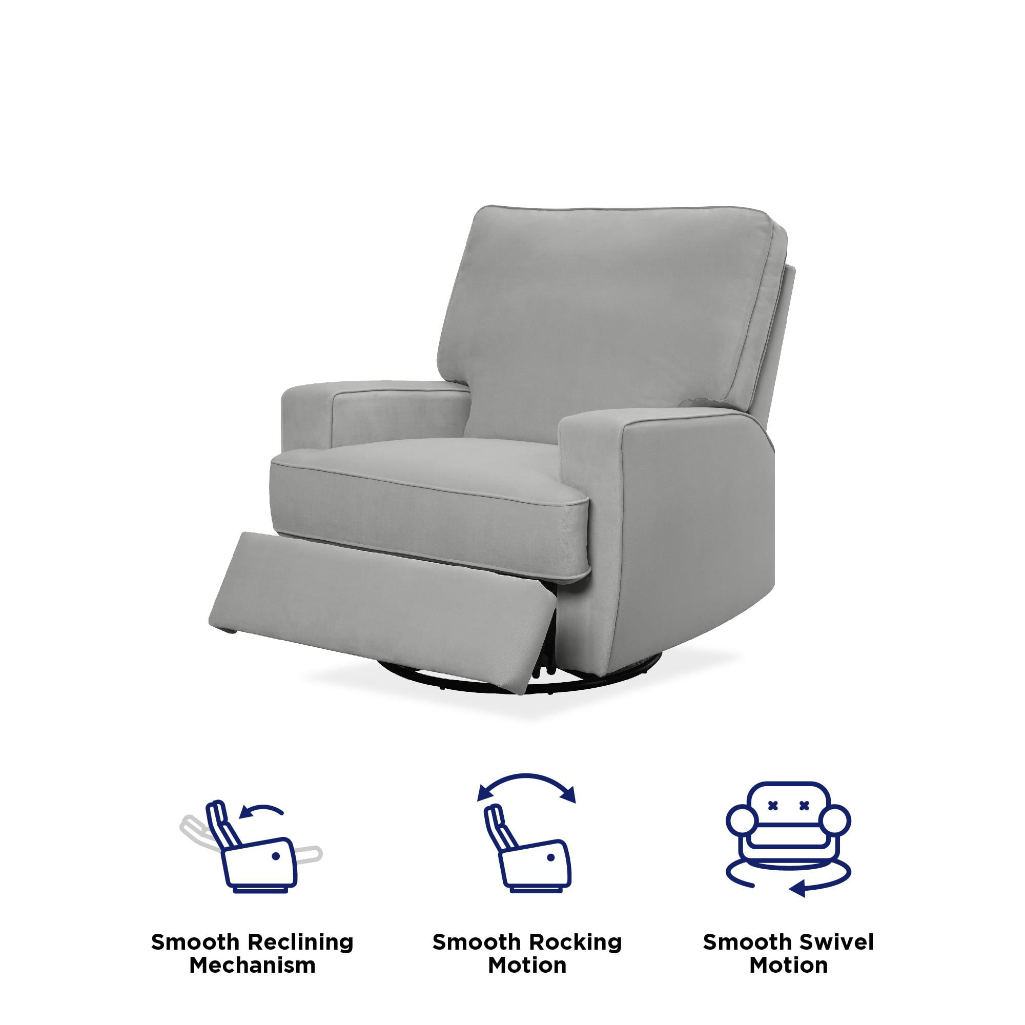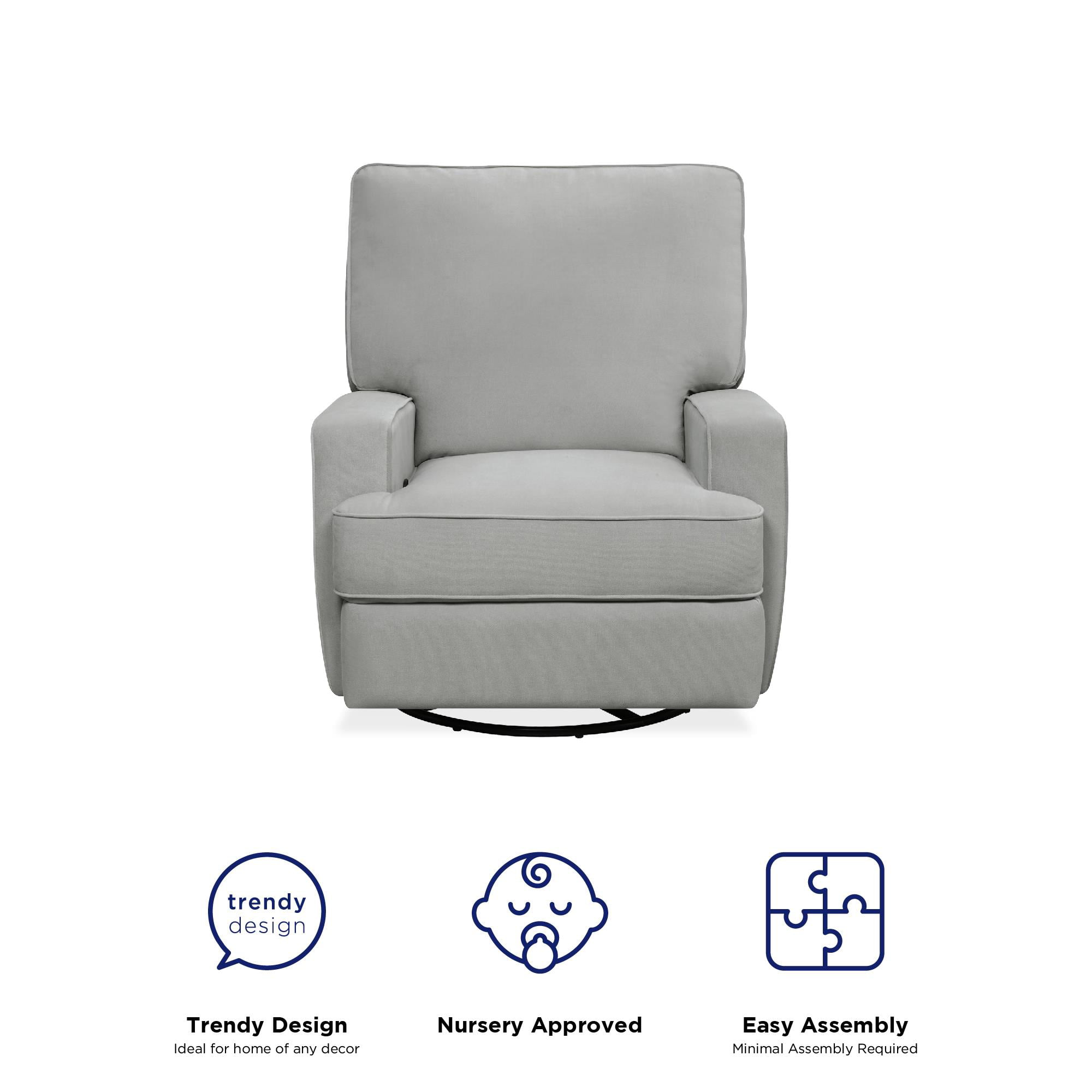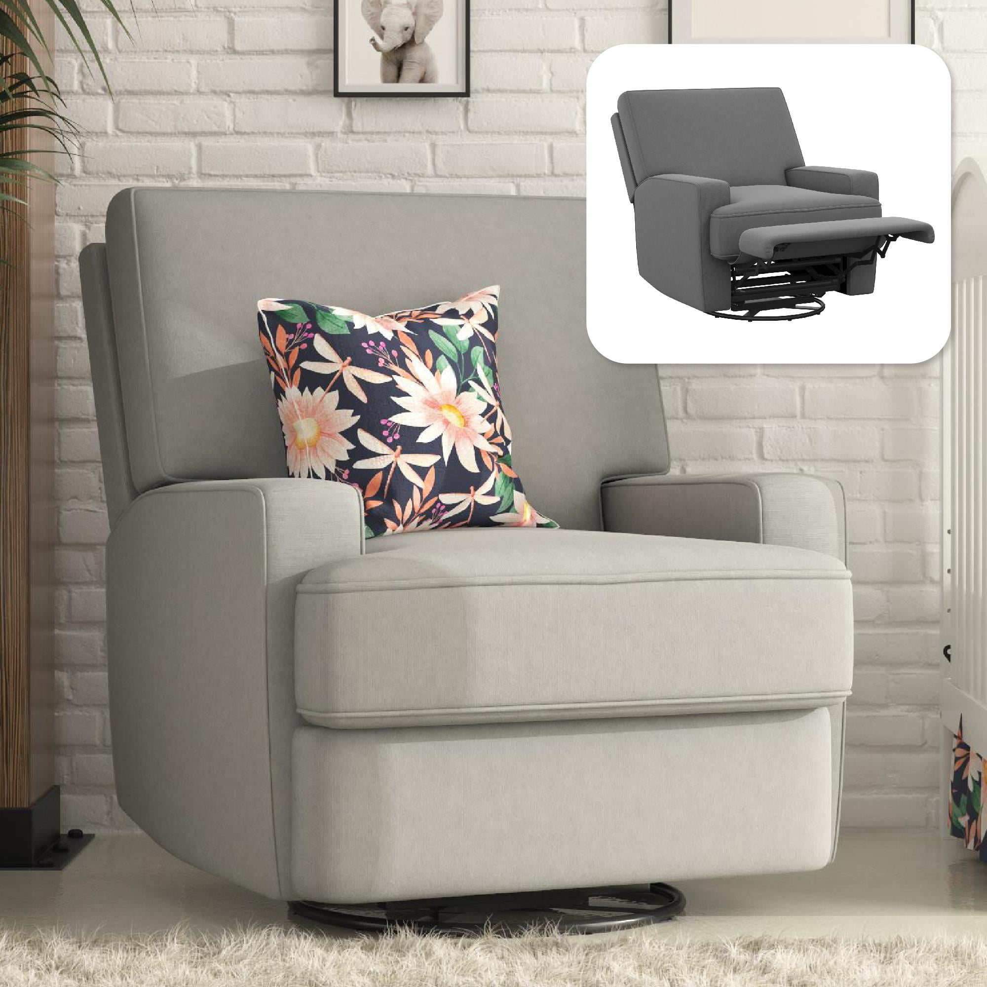 Baby Relax Rylan Swivel Glider Recliner Chair. Coil Seating. Gray