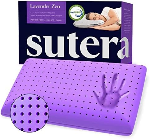 Sutera - Cooling Lavender Zen Memory Foam Pillow for Sleeping - Essential Lavender Oil Infused. Cooling Pillow with Neck. Shoulder and Back Support - Relaxing for Side. Back. Stomach Sleepers