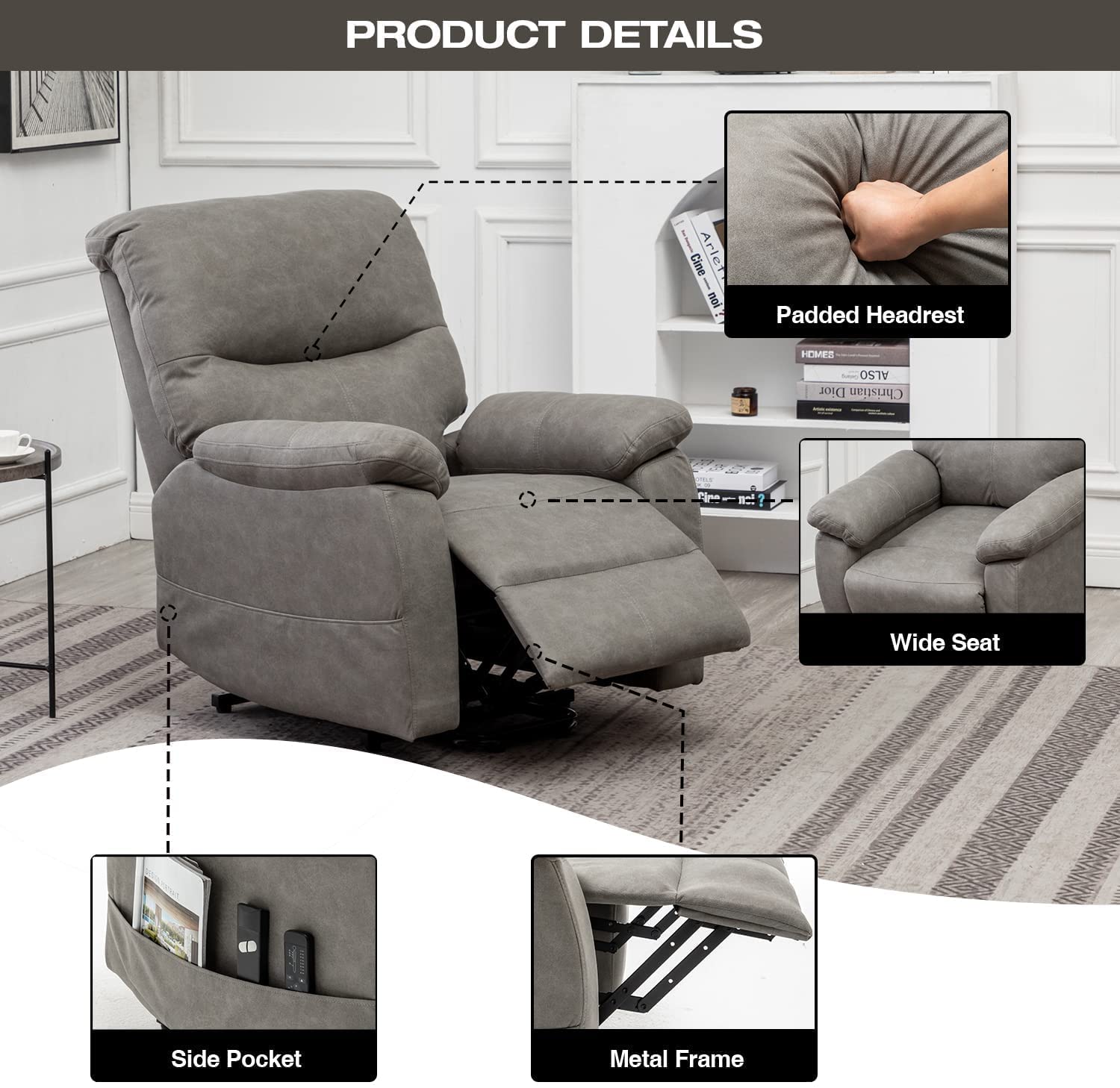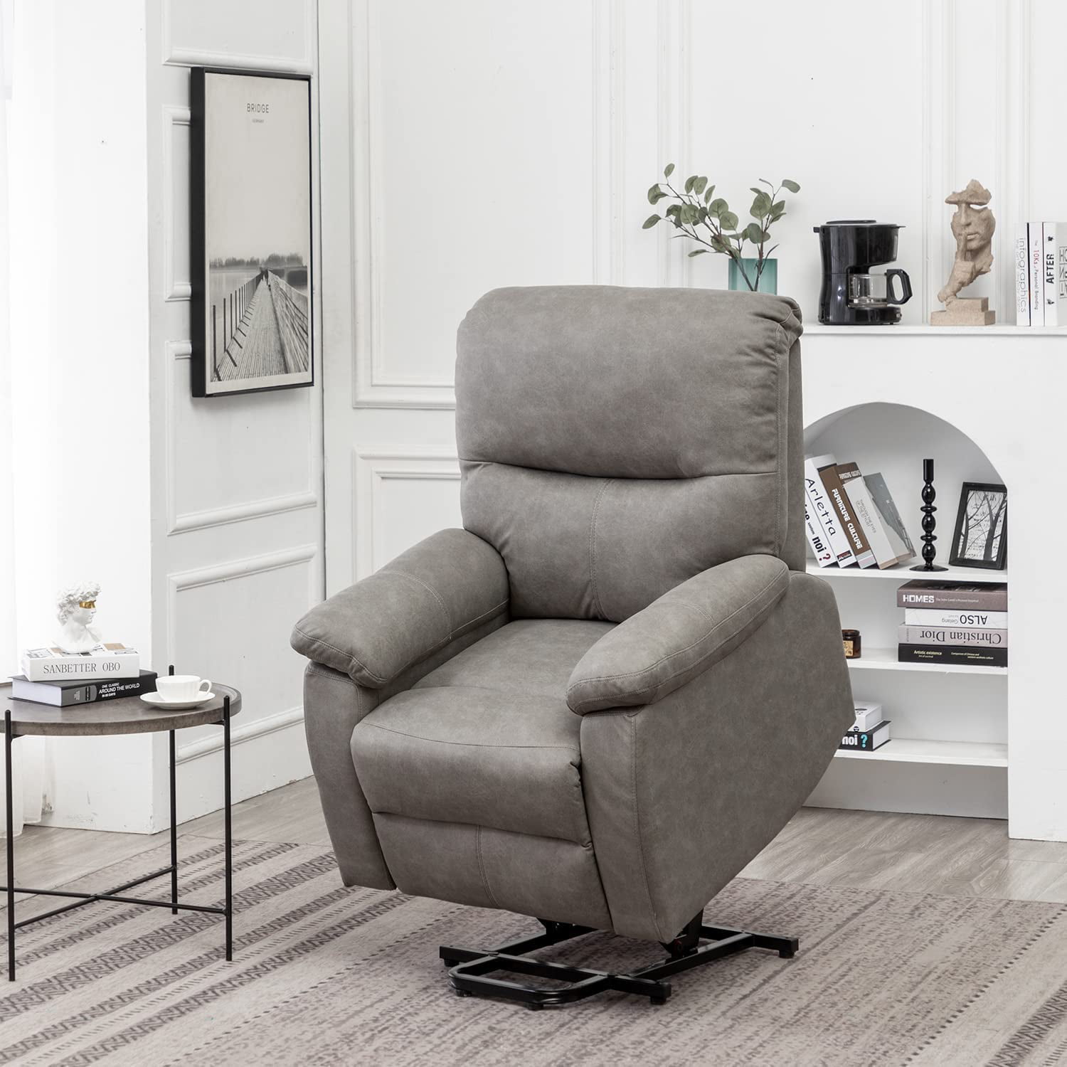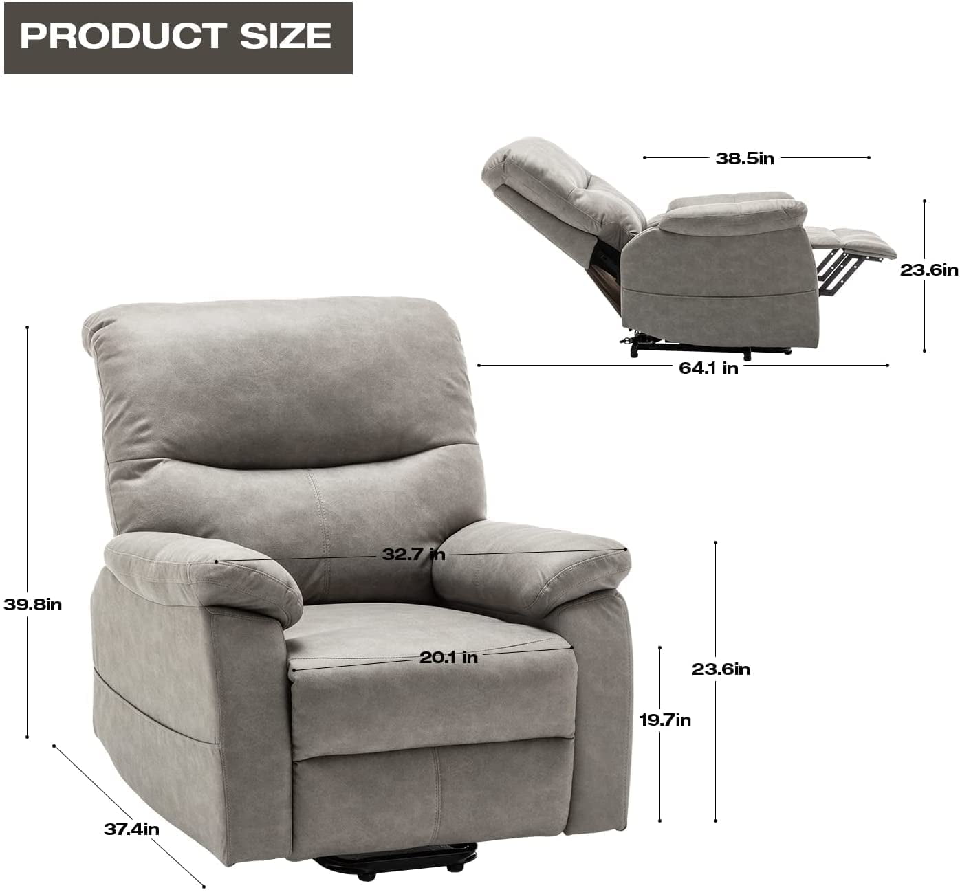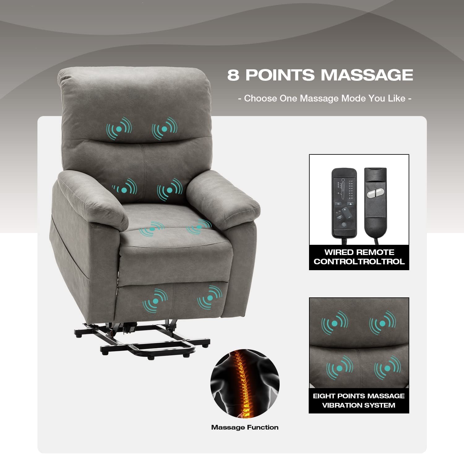 Erommy Power Lift Recliner Chair. Fabric Recliners with Vibration Massage and Heat. Electric Recliner Sofa for Elderly. Grey