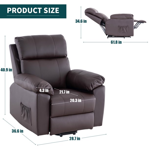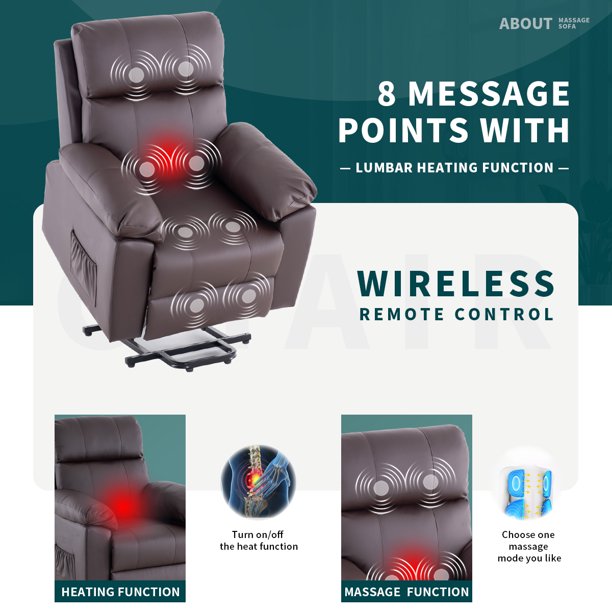 Erommy Power Lift Recliner Chair. PU Leather Recliners with Massage and Heat. Electric Recliner Chair for Elderly.Brown