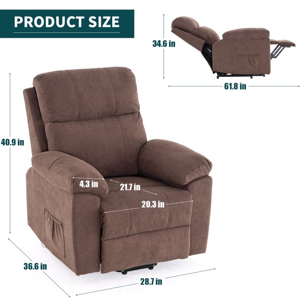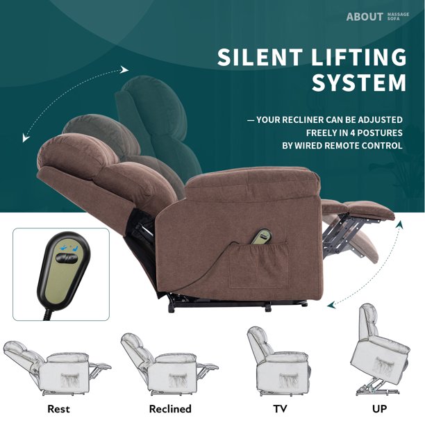 Erommy Massage Recliner Chair. Linen Fabric Power Lift Chair Electric Recliner Chair .Brown