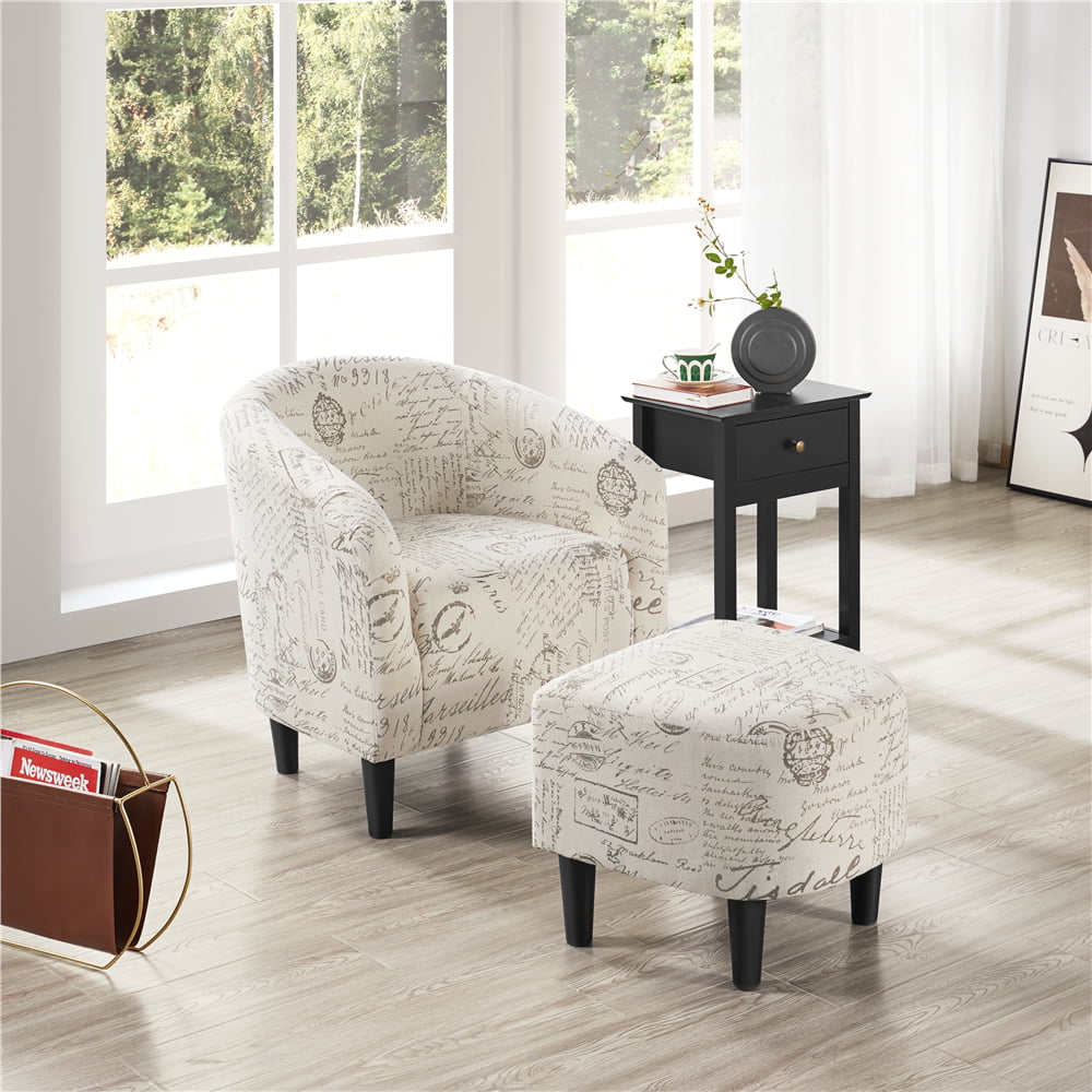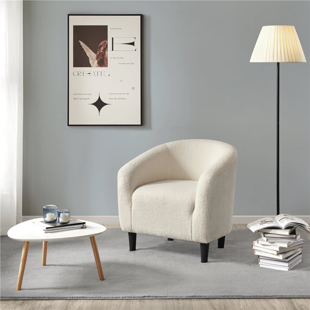 Topeakmart 2pcs Boucle Club Chair Accent Barrel Chair Upholstered Arm Chair. Ivory