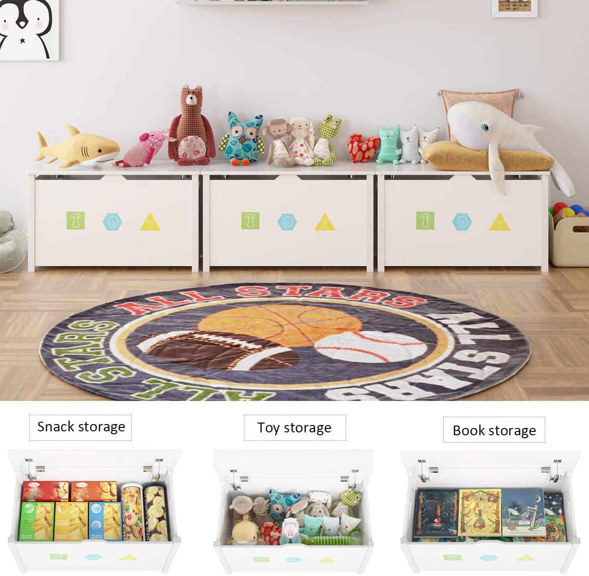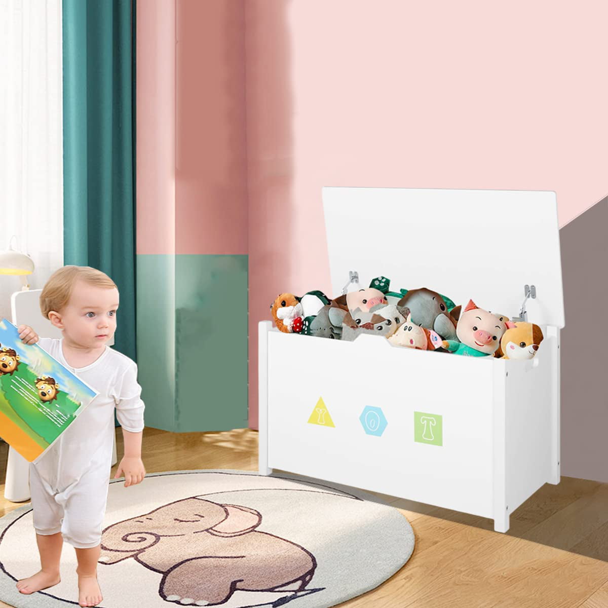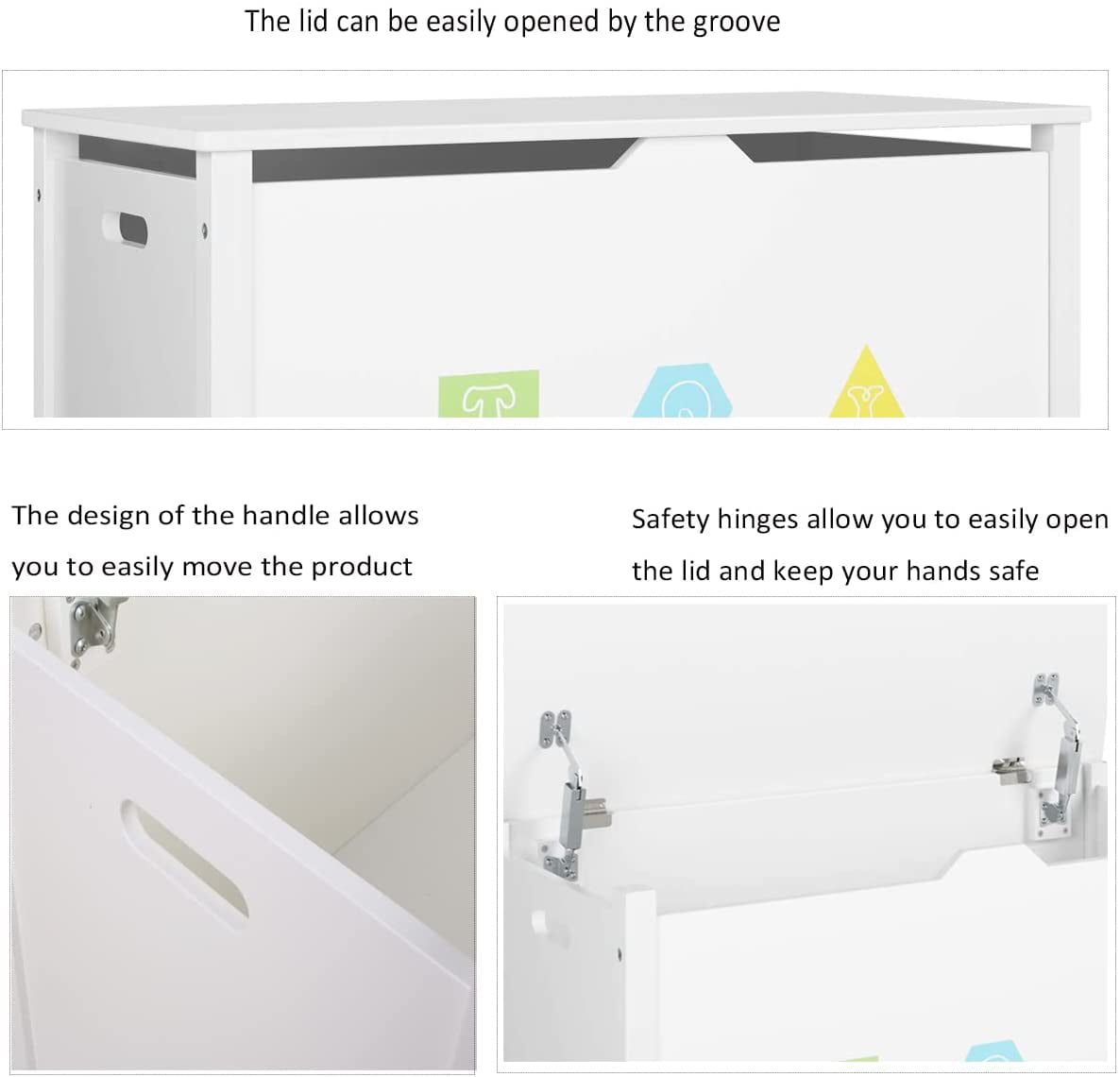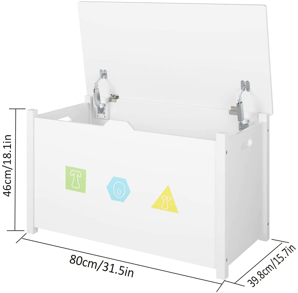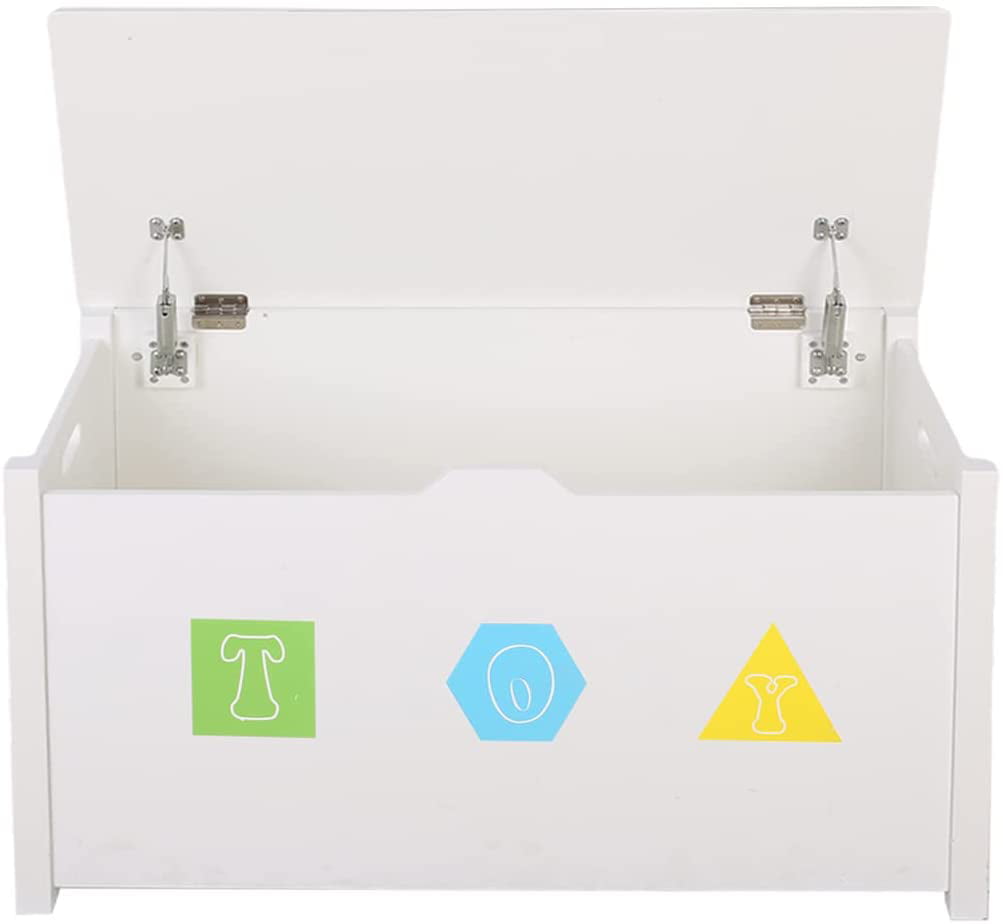 Homfa Kids- Cubby Bookcase. Children-s Wood Toy Chest with Flip-Top Lid and Safety Hinges for Nursery Playroom. White Finish