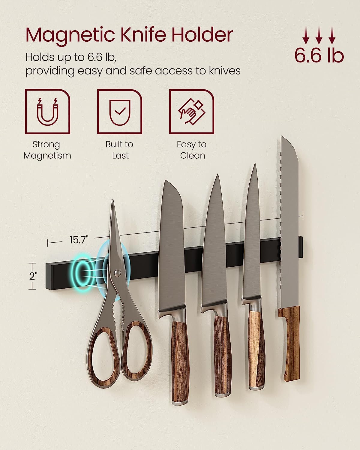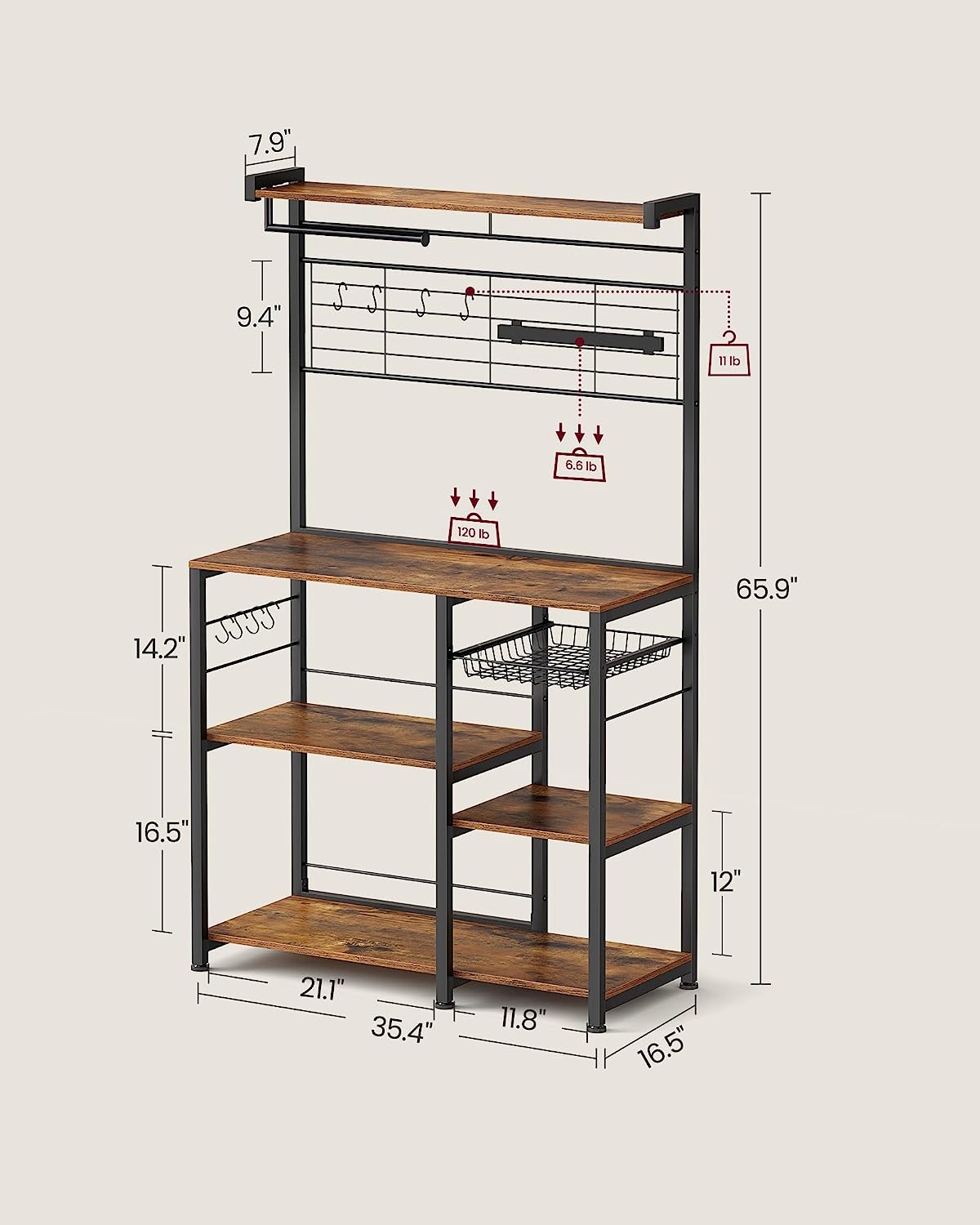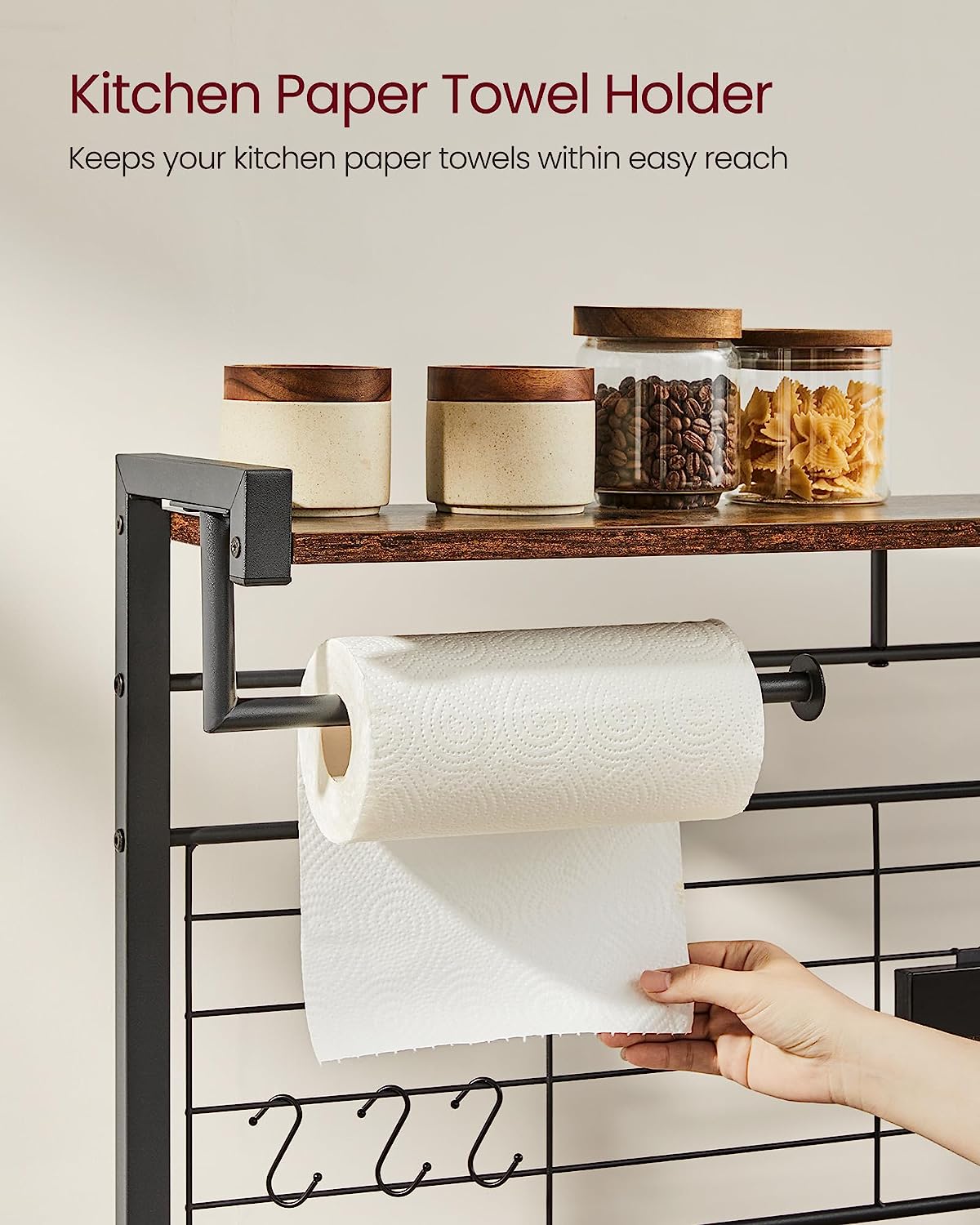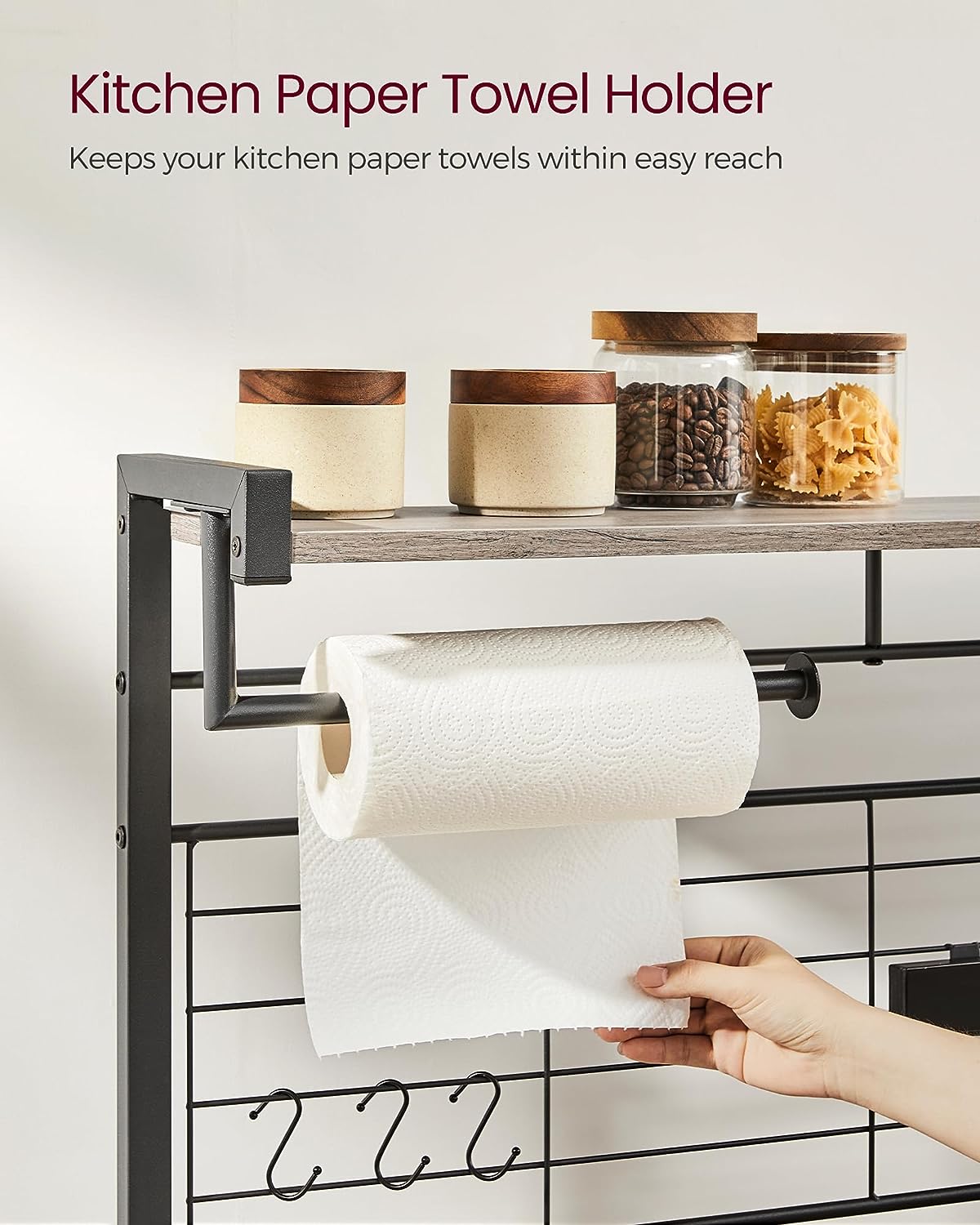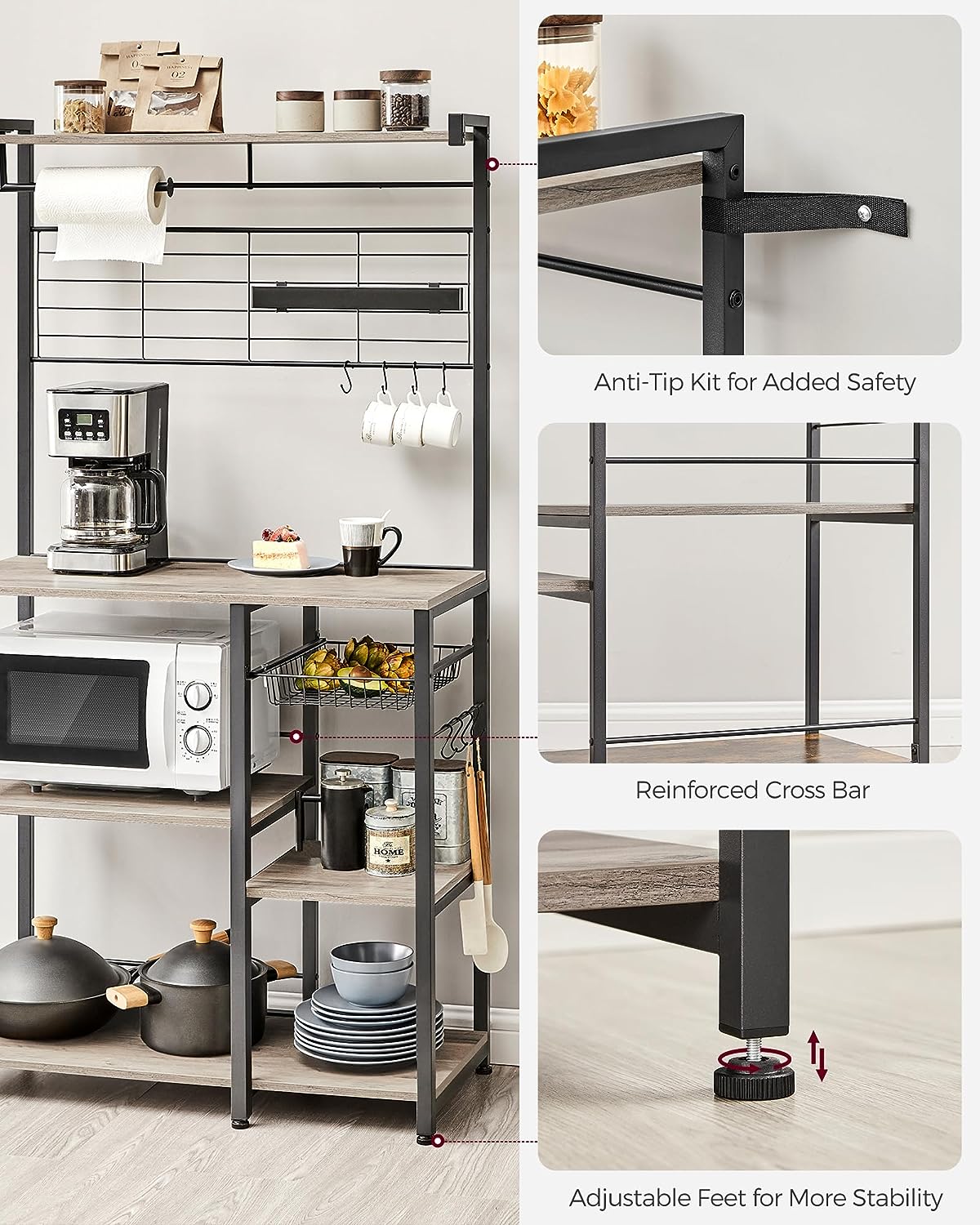 VASAGLE Bakers Rack with Magnetic Knife Holder. Paper Holder. Wire Basket. 8 Hooks. Organizers and Storage. Baker-s Rack with Wire Basket. Greige and Black UKKS026B02