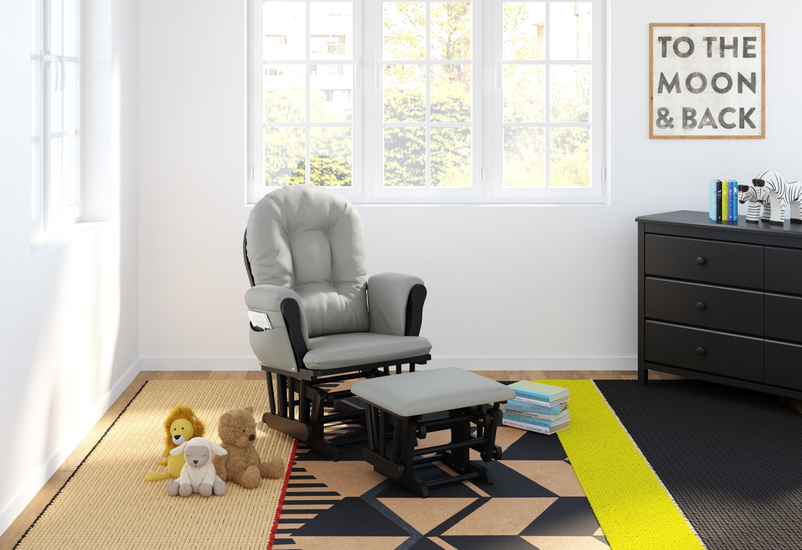Storkcraft Hoop Nursery Glider and Ottoman. Black with Light Gray