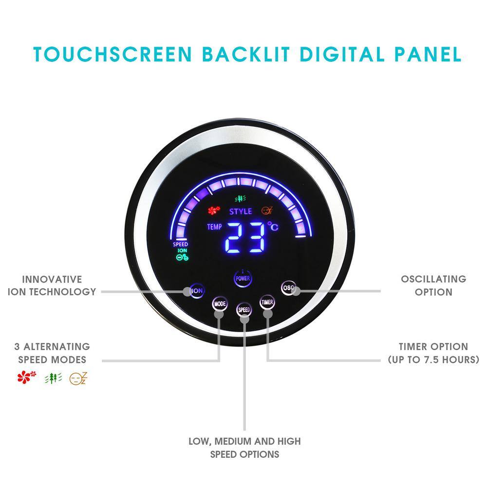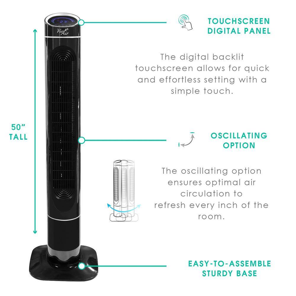 Vie Air 985103835M 50 in. Luxury Digital 3 Speed High Velocity Tower Fan with Fresh Air Ionizer and Remote Control in Black
