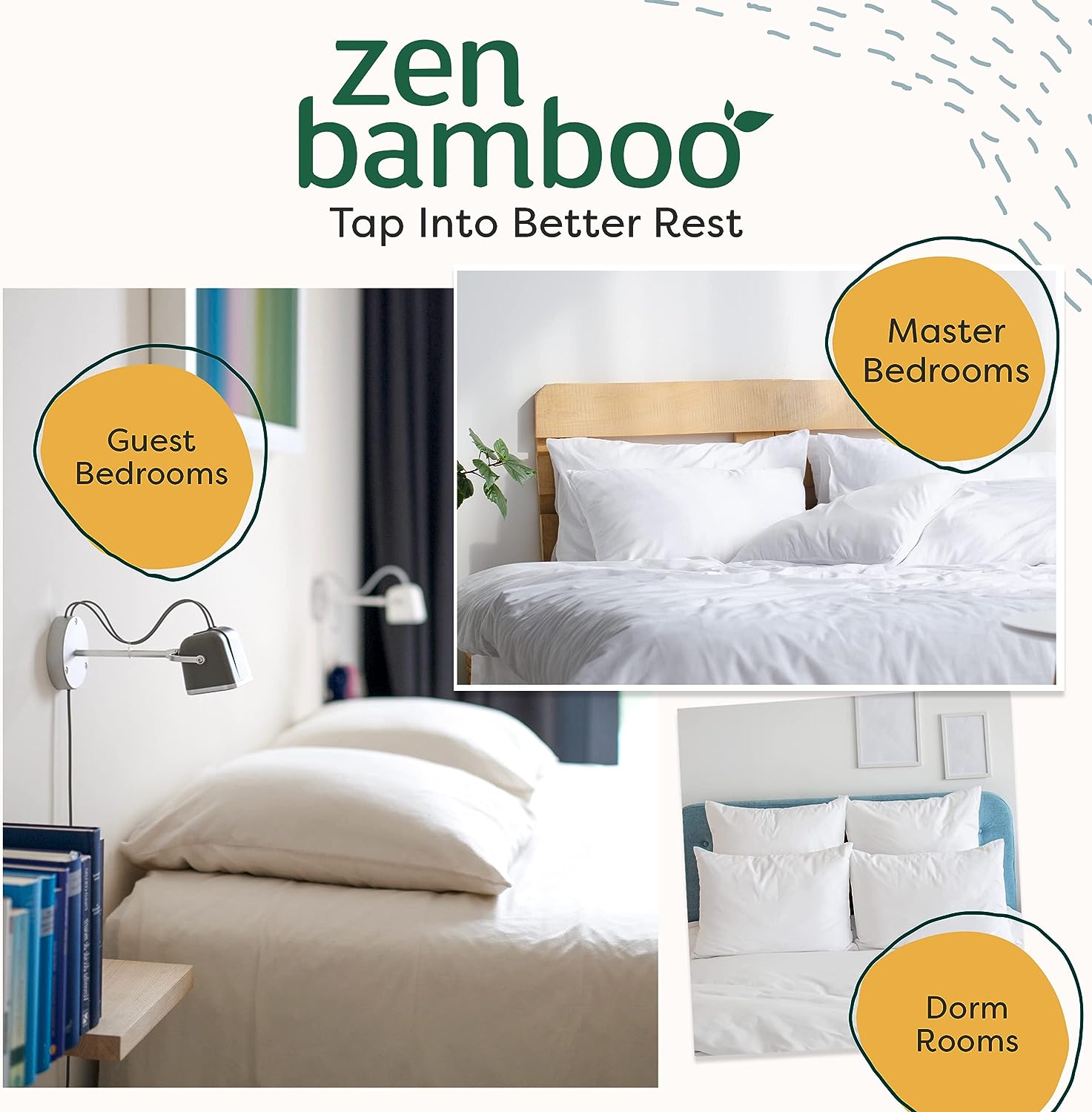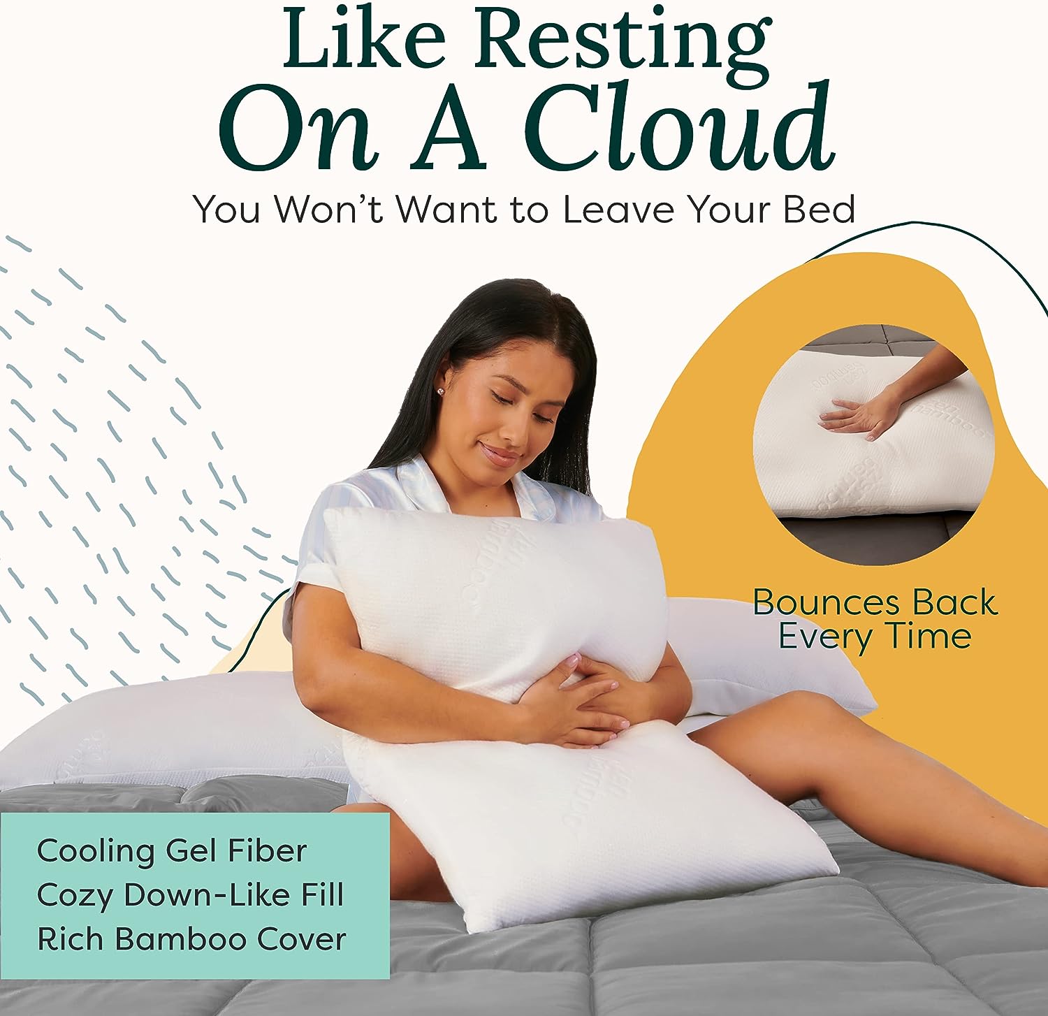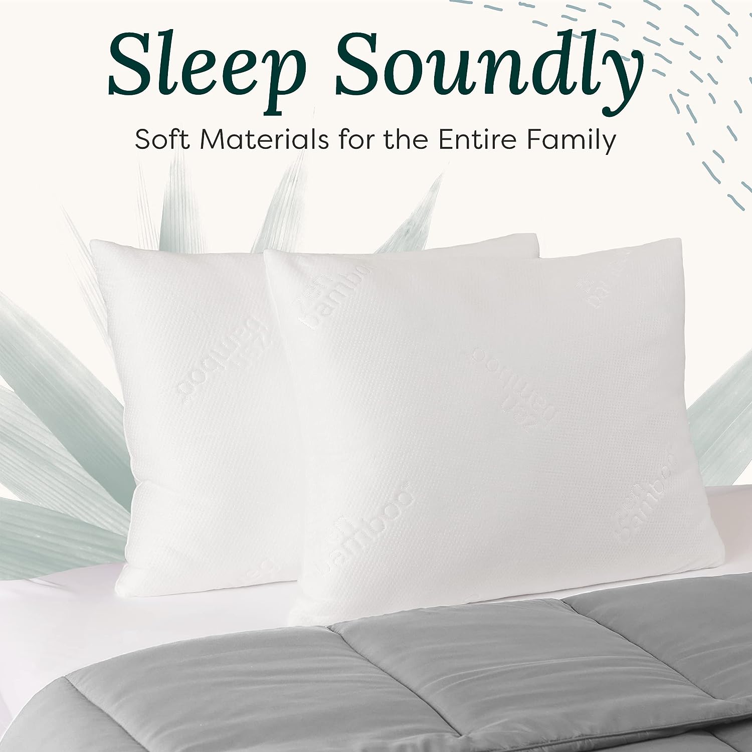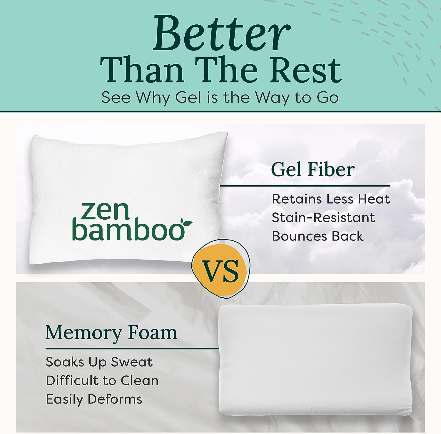 Zen Bamboo Cooling Pillows for Sleeping - Premium Allergy-Friendly Bed Pillow Cool & Breathable Bamboo Cover - Reduces Neck Pain - Queen Size Set of 2