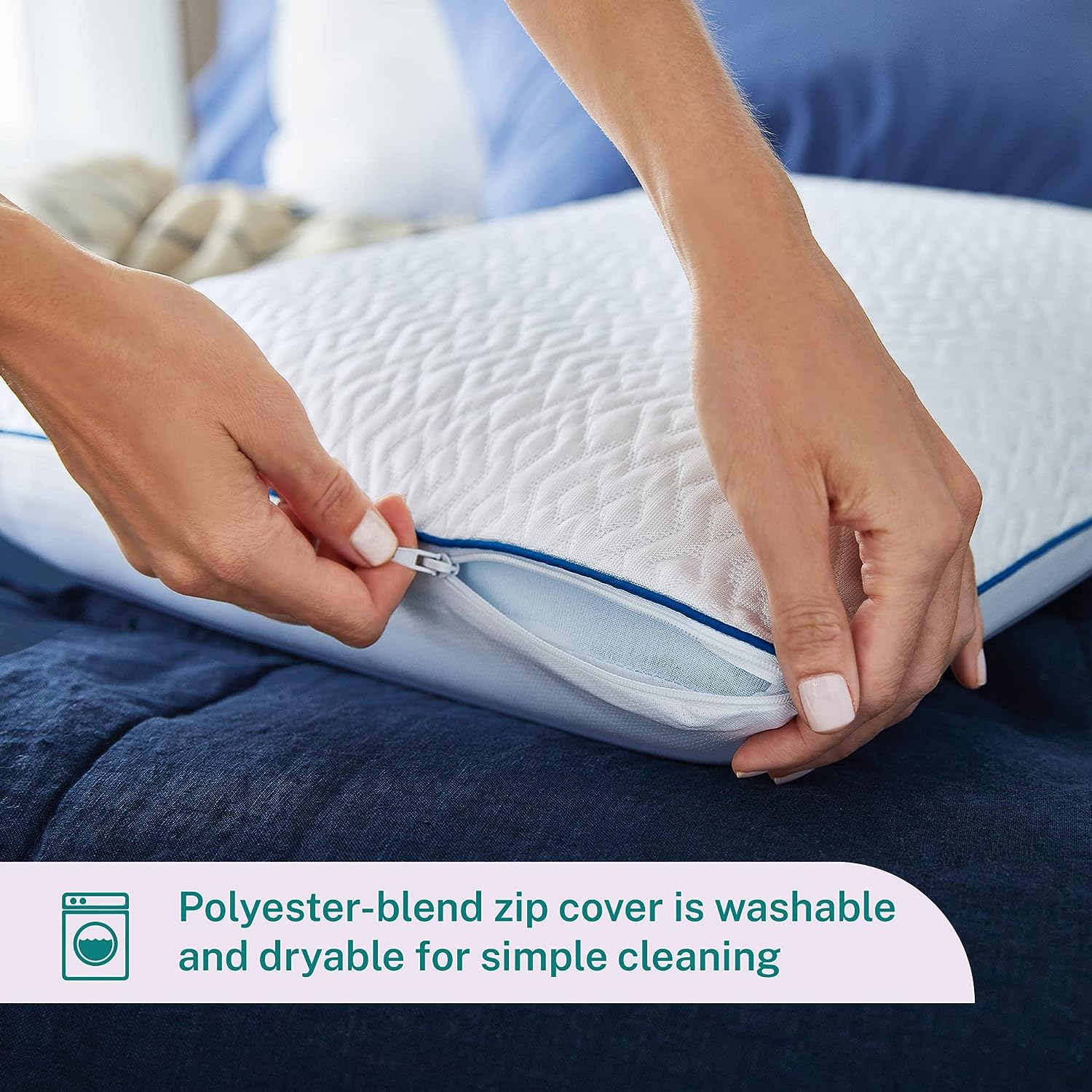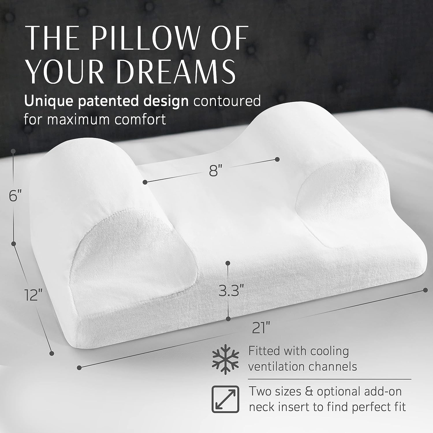 Sleep Innovations Forever Cool Gel Memory Foam Pillow (Set of 2). Standard Size. Cool Touch Cover and Cooling Gel Memory Foam Core. Side. Stomach. and Back Sleepers. Medium Support