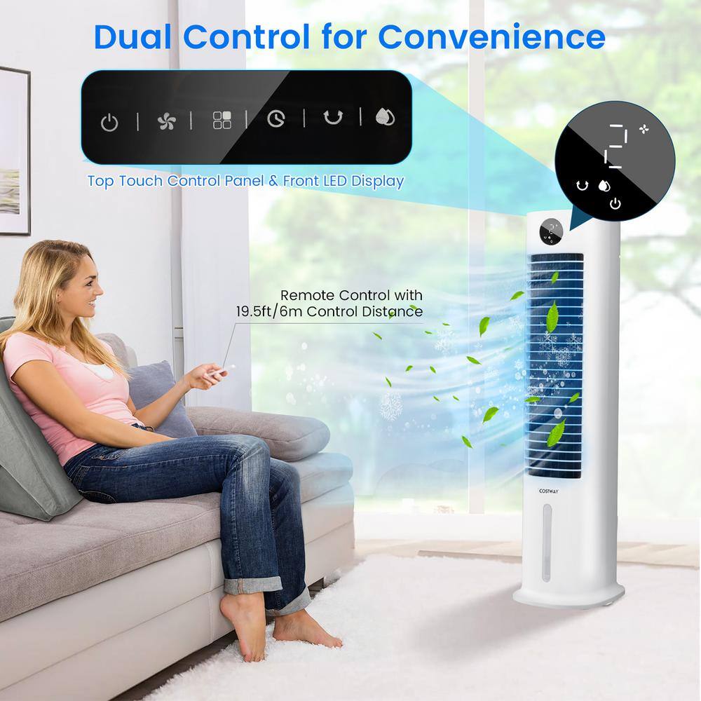 Costway ES10164US-WH 42 in. Oscillating Portable Air Cooler 3- in-1 Cooling Tower Fan with 9H Timer Remote