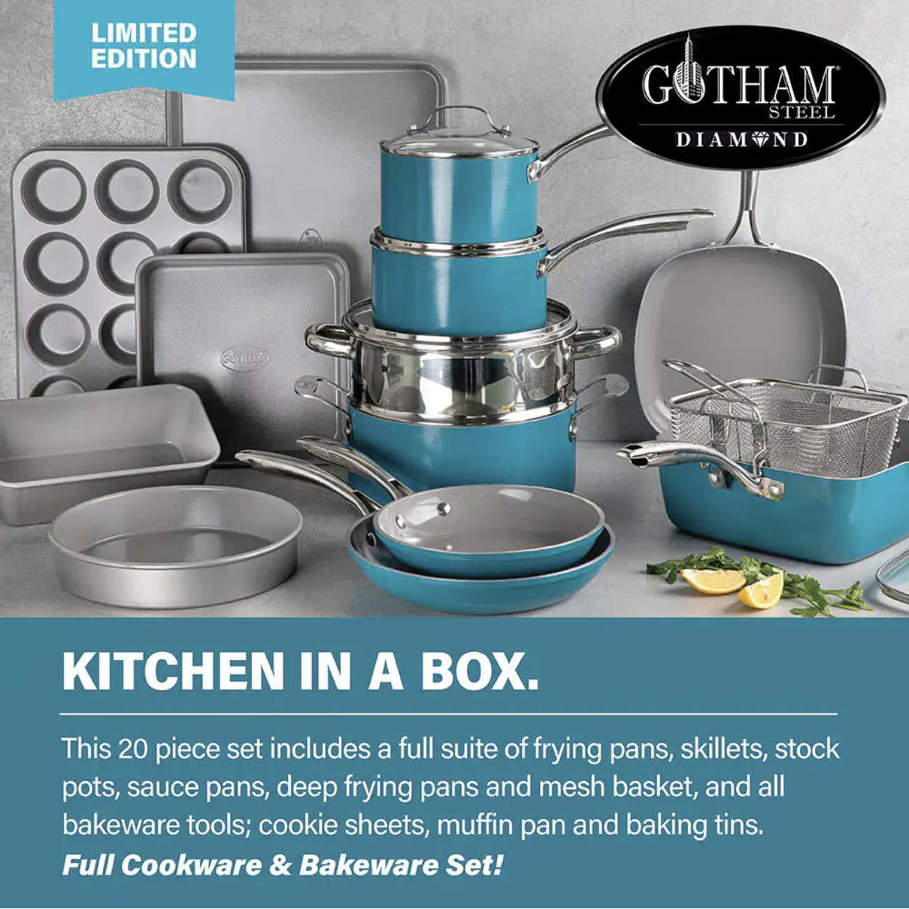 Gotham Steel 20-Piece Aluminum Ti-Ceramic Nonstick Cookware and Bakeware Set in Aqua Blue